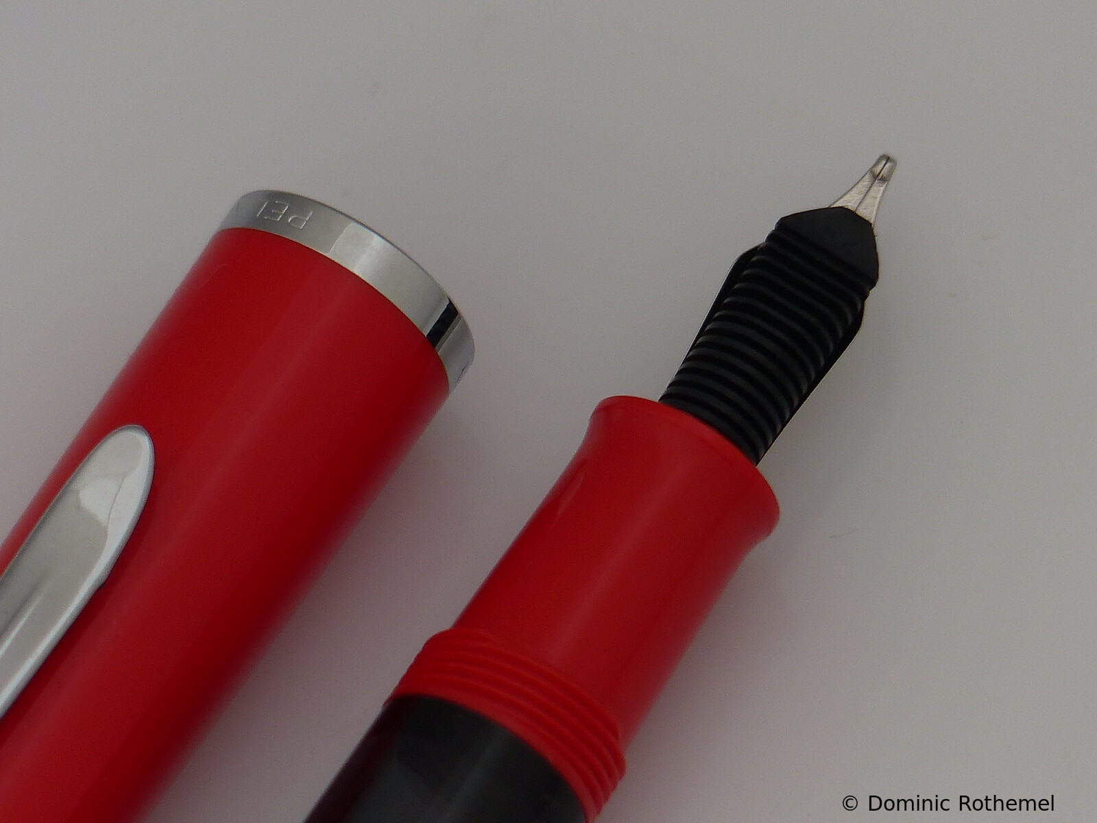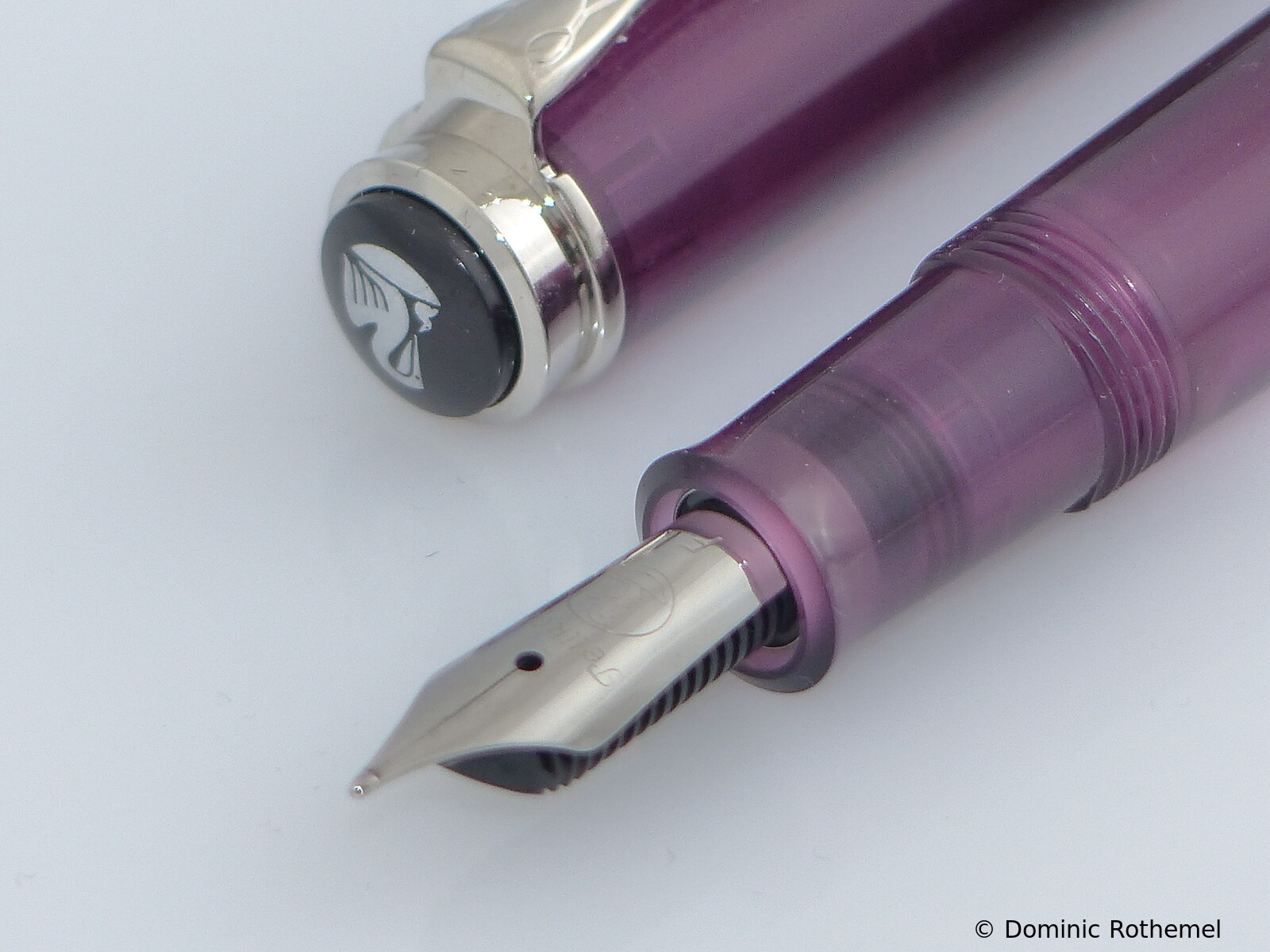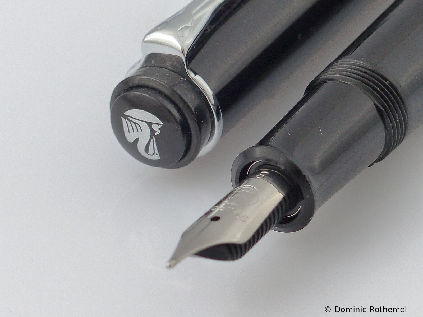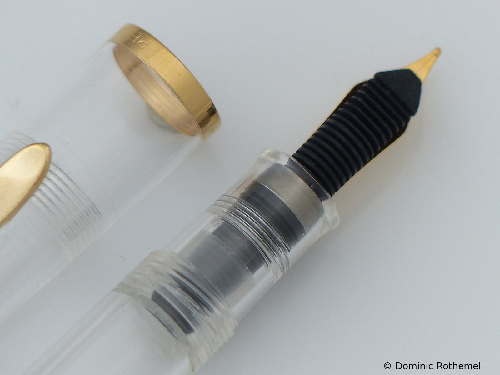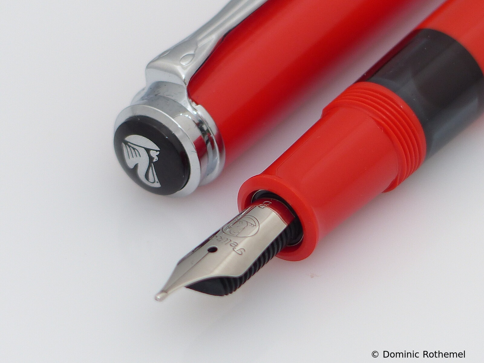 These cap inserts are identical to those of the M400 series, which are decorated with the logo and are held by a golden crown (clip ring). Since the M481 is the cheap version of the M400, he got the insignificant cap (the blind cap) instead of the golden crown, the logo disappeared. Later on, the M200 had the Pelikan logo on the cap. Initially it was screwed, later glued.