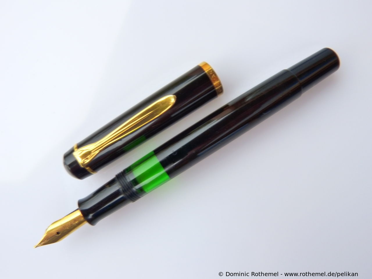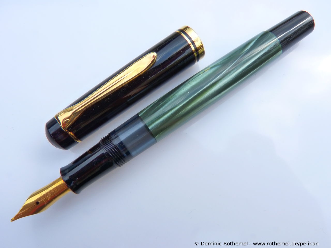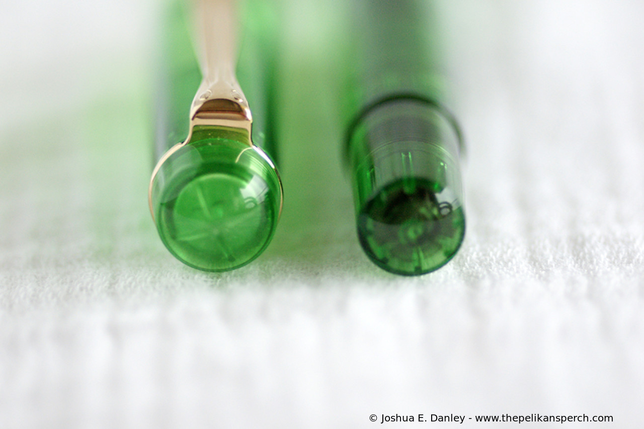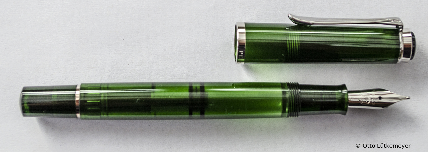Except for the nib identical with M250 (Old Style) Green transparent, several sources suggest that the fountain pen was delivered from the factory with both steel nib and with gold nib.