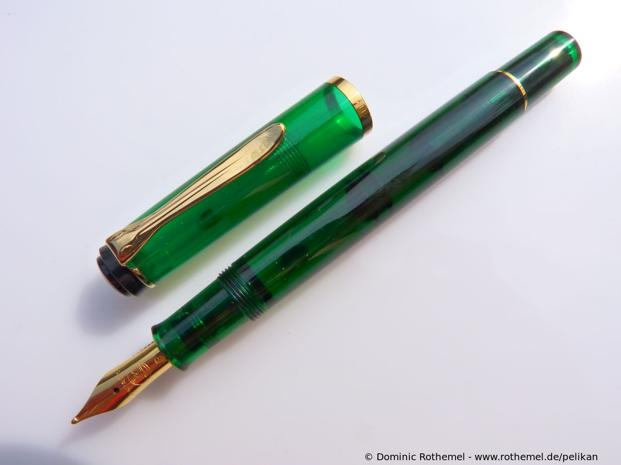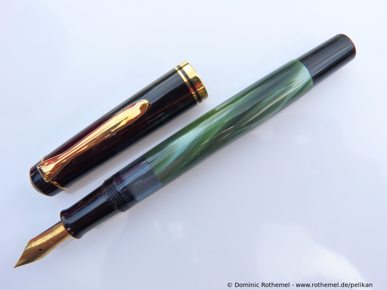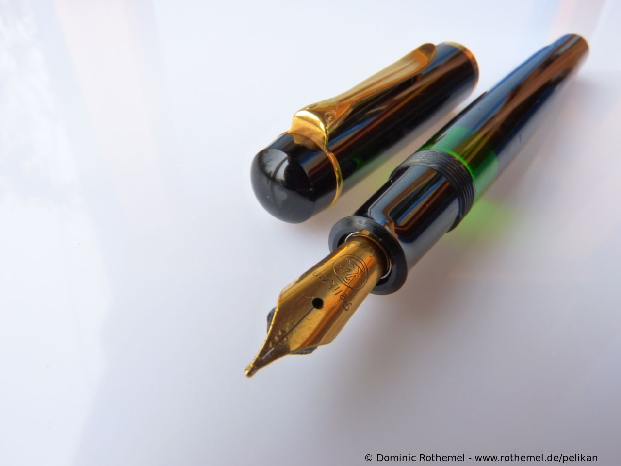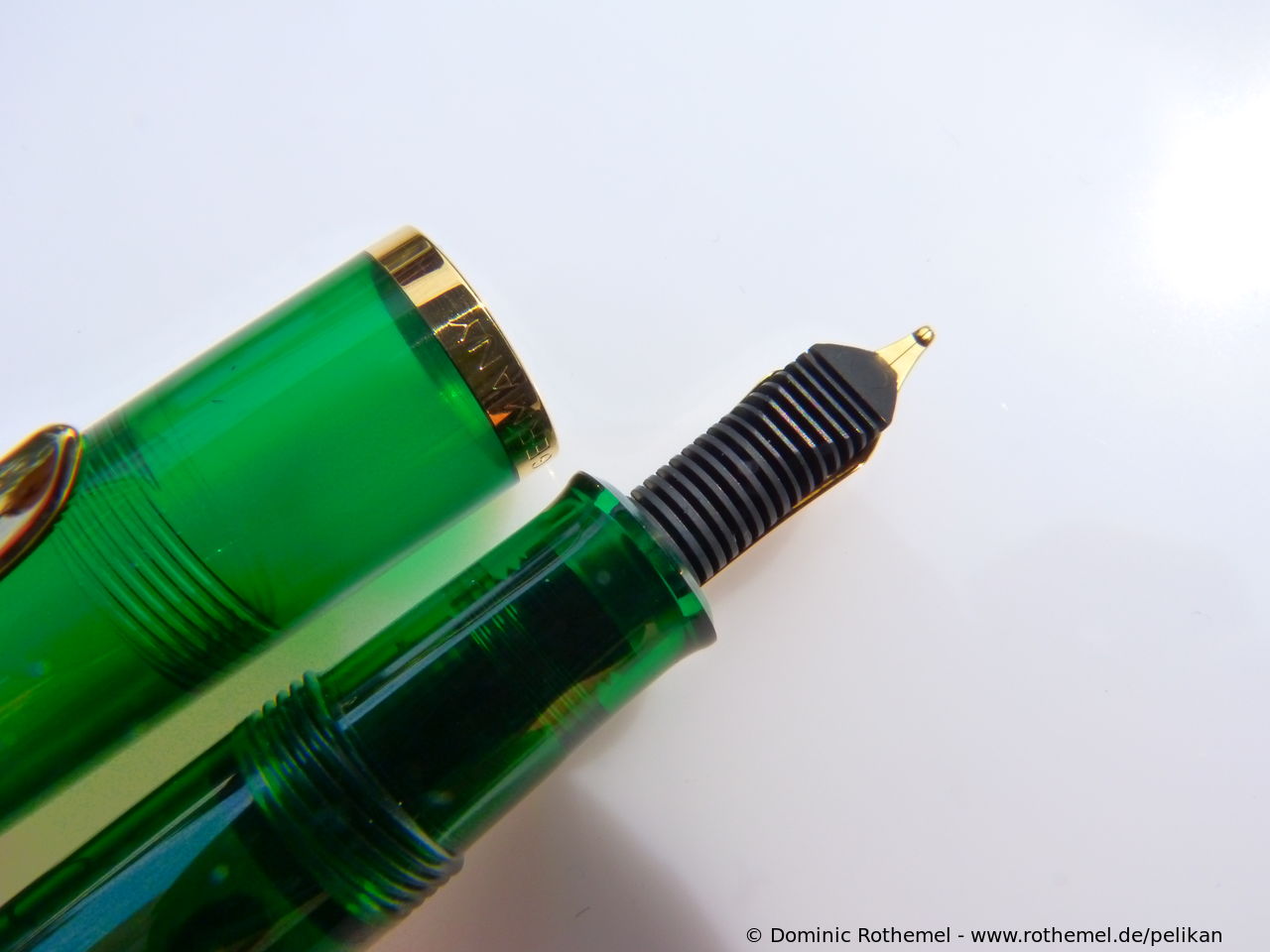 Except for the nib identical with M250 (Old Style) Green transparent, several sources suggest that the fountain pen was delivered from the factory with both steel nib and with gold nib.