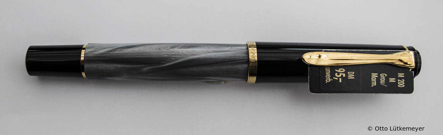 The model M200 was introduced in 1985. The size of the fountain pen is identical to the M400, which was also produced since 1985. A redesign took place in 1997, so the models prior to 1997 are referred as 'Old Style'. After 1997 the crown cap was changed and a trim ring was added to the filling knob. The M200 model has a steel nib while the M250 has a gold nib.