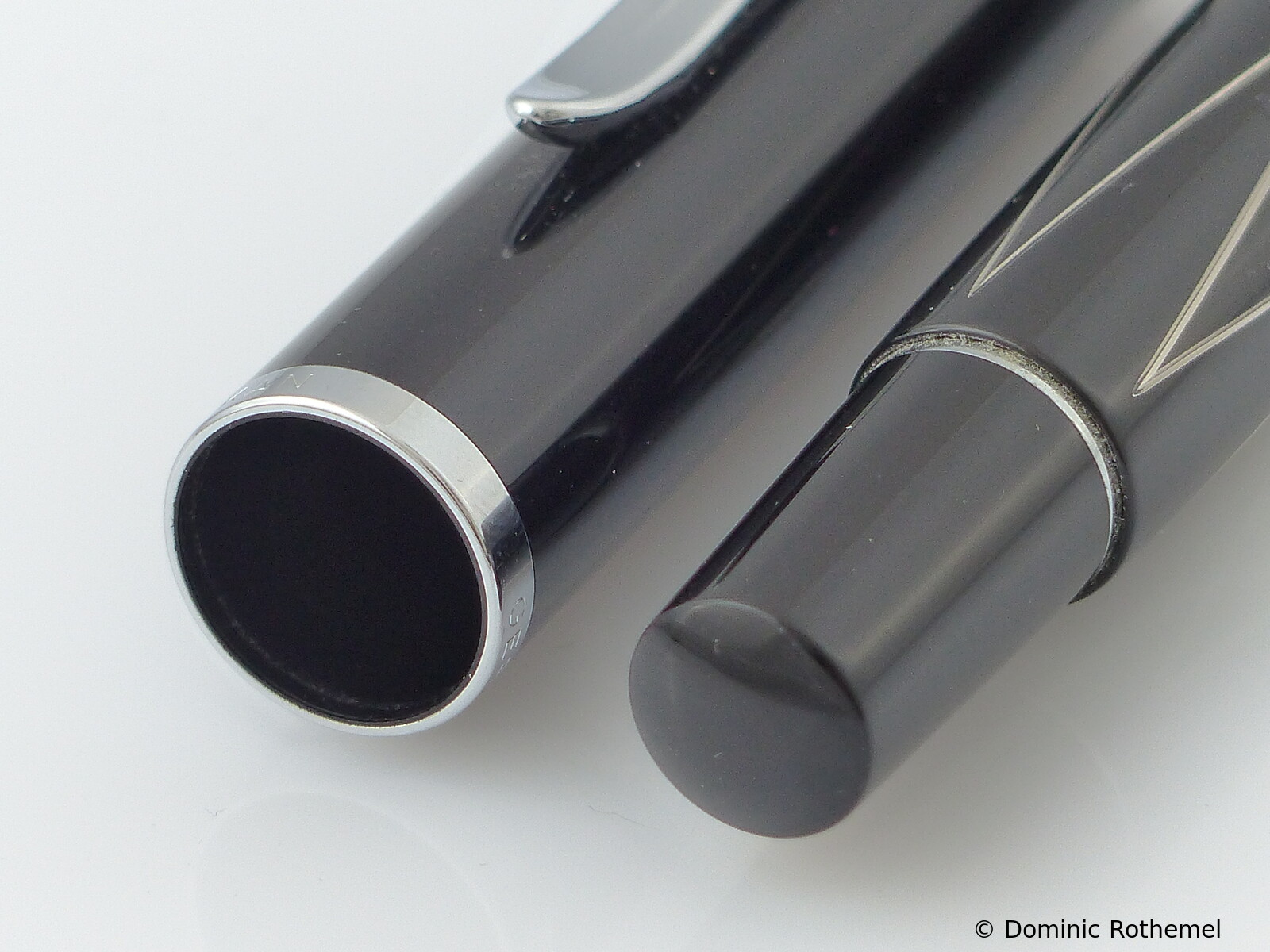 In late variants there is no logo under the blind cap. Just as later models do not have a friction fit nib, but a screw-nib unit.