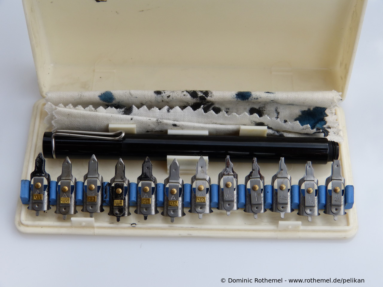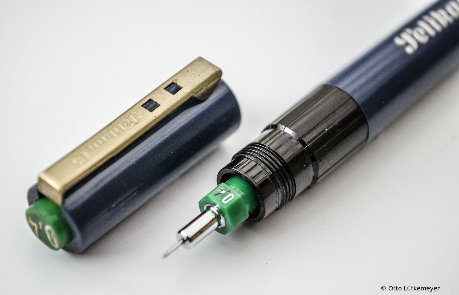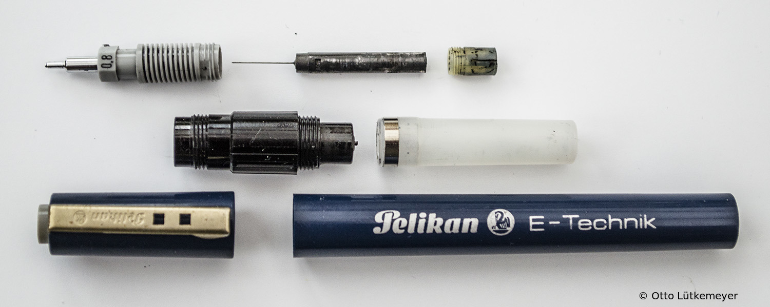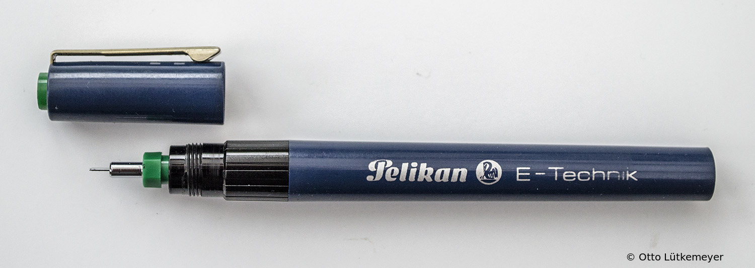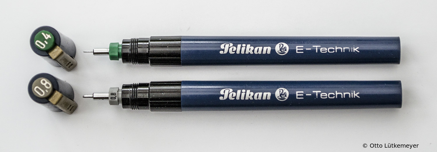 While you had to replace the nozzle at Pelikan technos when the line width should be changed, E-Technik had available technical pens for each line width. The ink filling uses no longer replaceable cartridges, but a transparent plastic tank that can be refilled directly. The nozzles allow a precise drawing and writing in the respective line width.