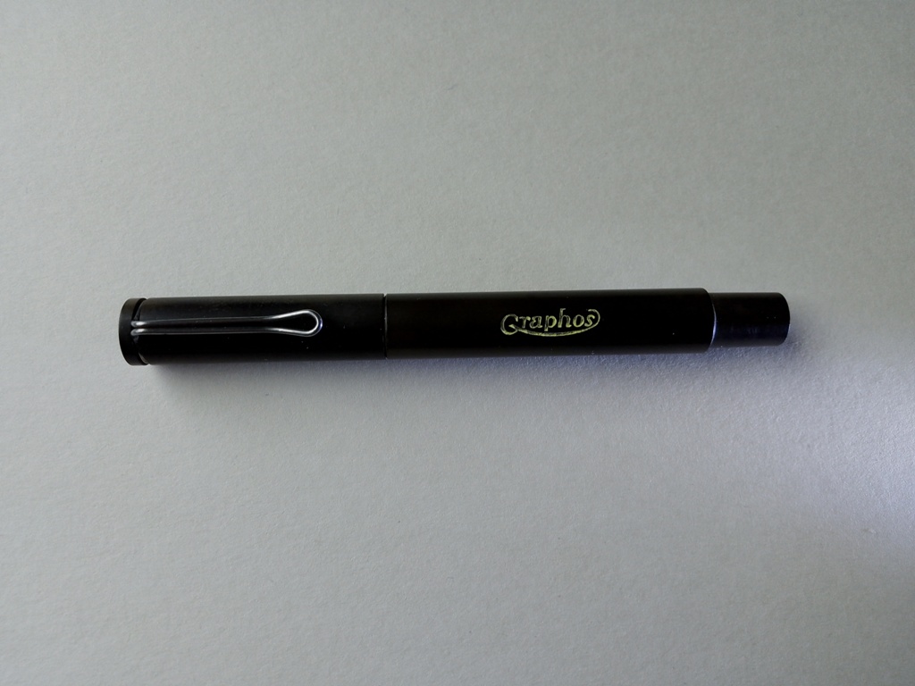 Previously unknown, old Graphos model. Referred to as Graphos “Mystery” by its owner. The cap is pushed on and not screwed on. made of hard rubber or ebonite.