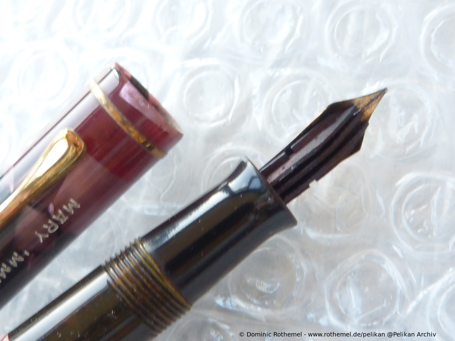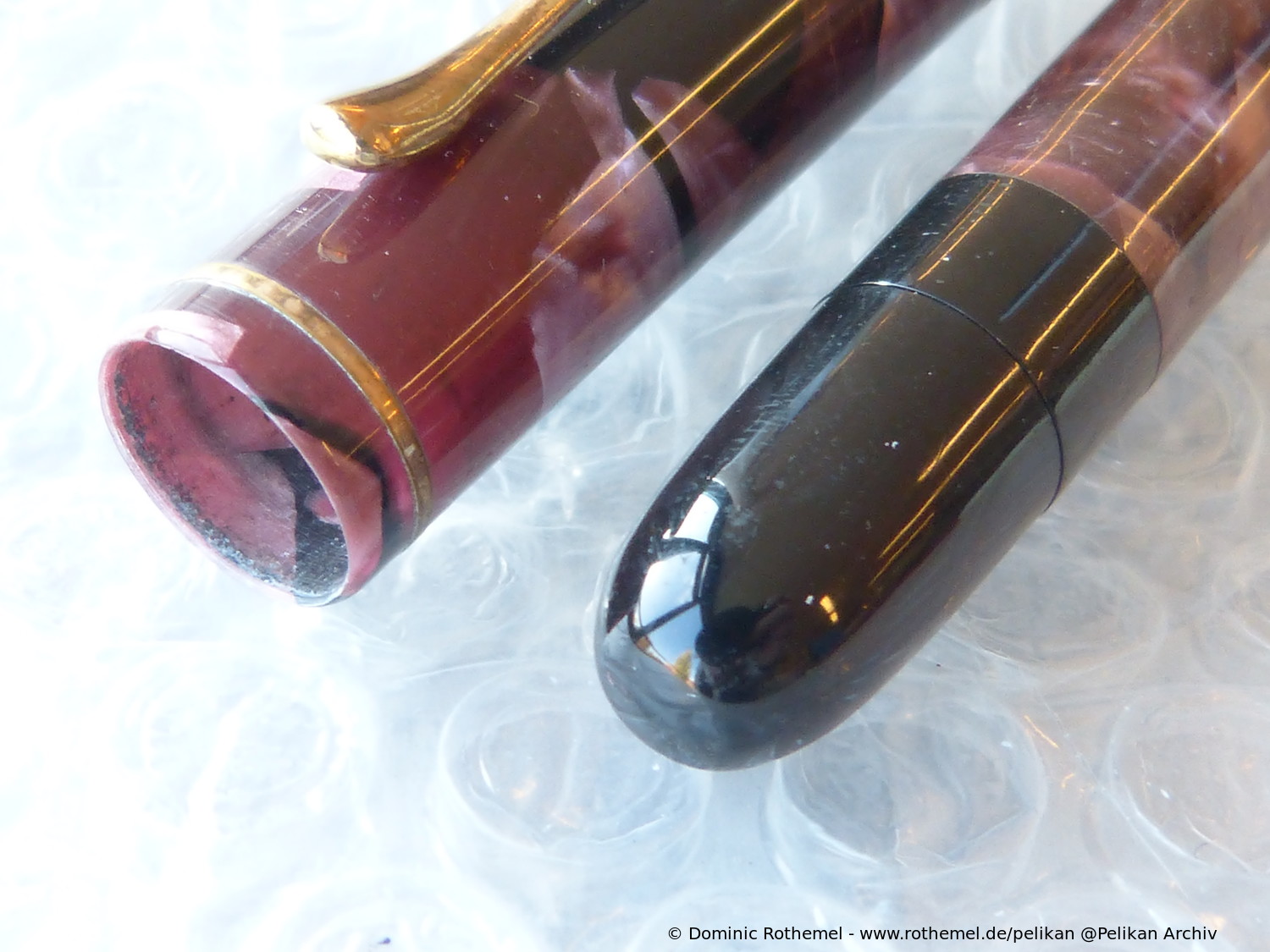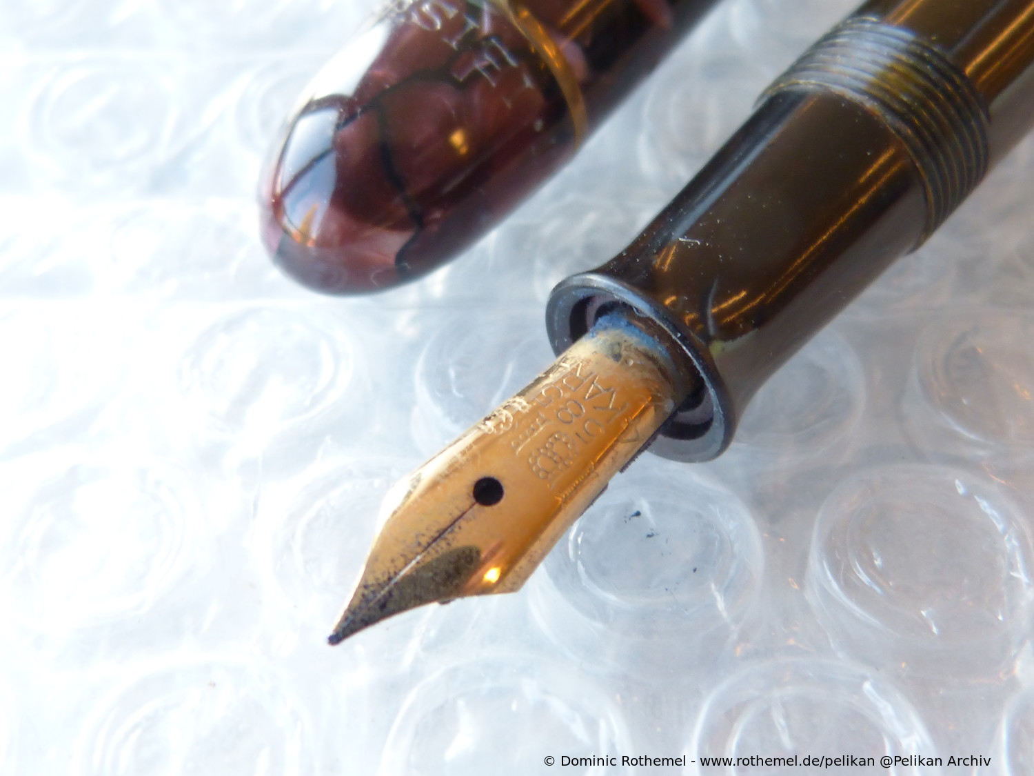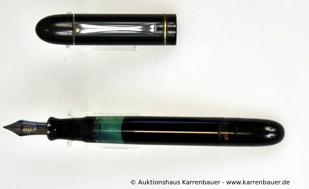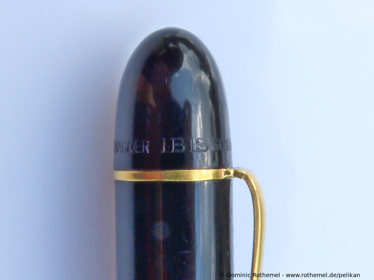 1949 Re-launch of the IBIS 130. For Germany with CN-nib. The new model is made from resin and a little bit longer than the earlier pens. Remaining stocks of ebonite caps are apparently used up, so models with mixed materials can be found.