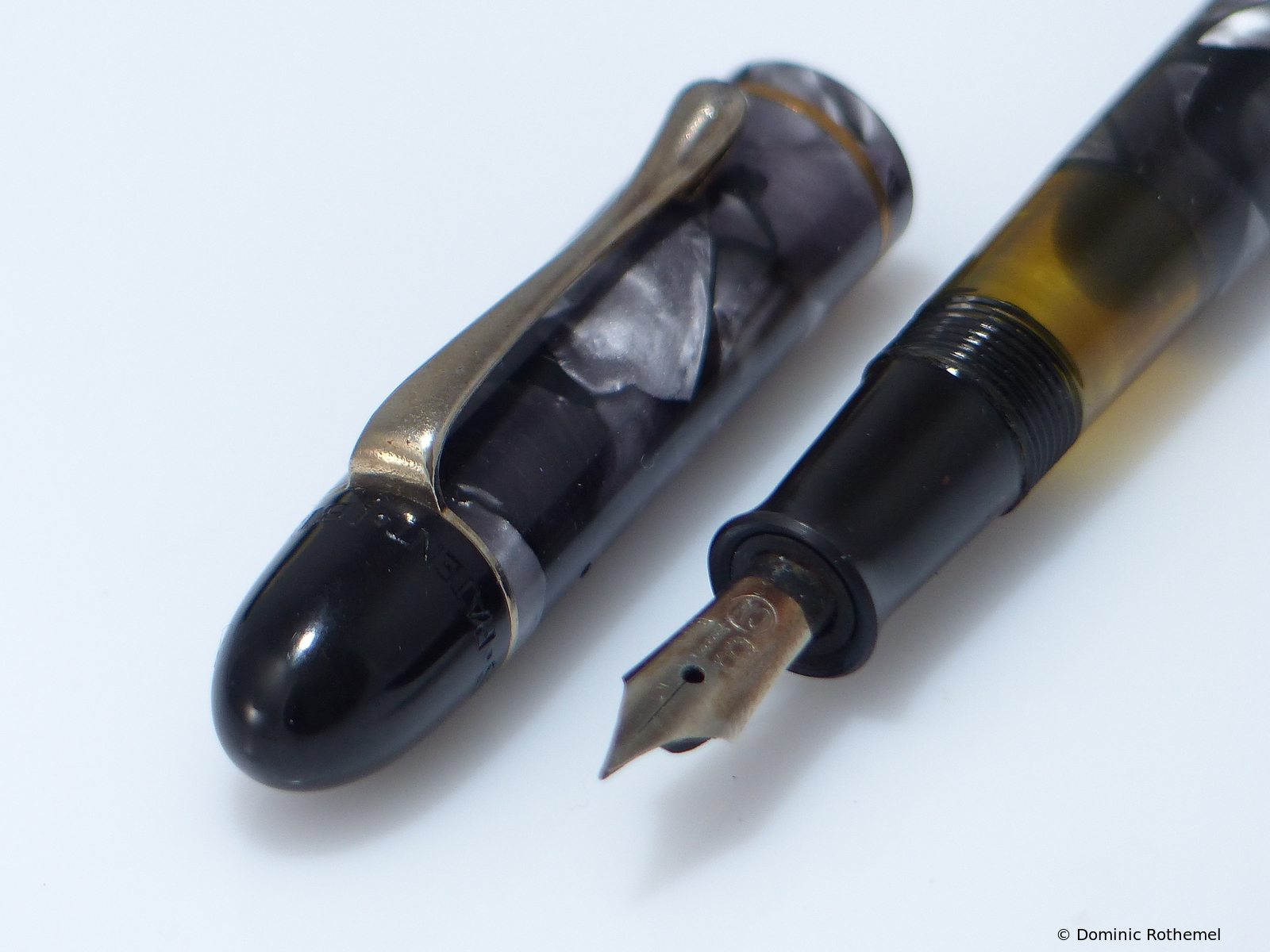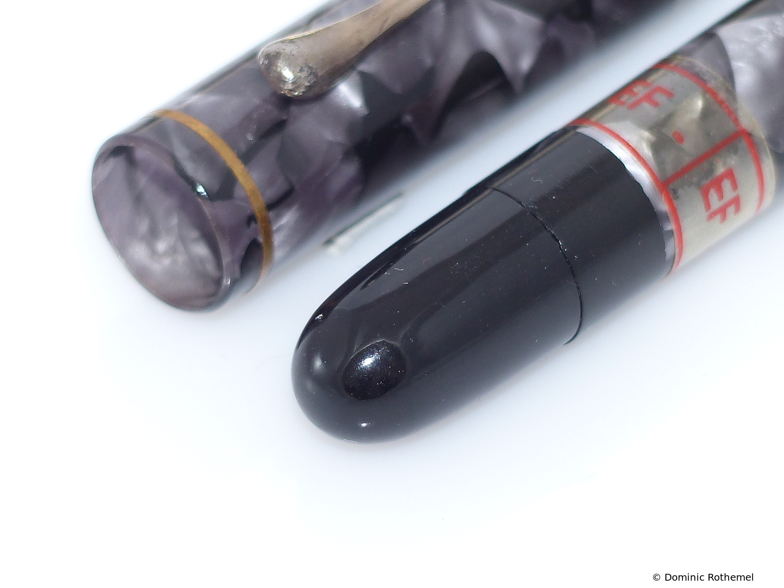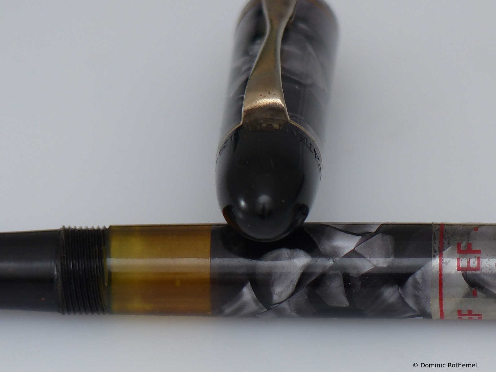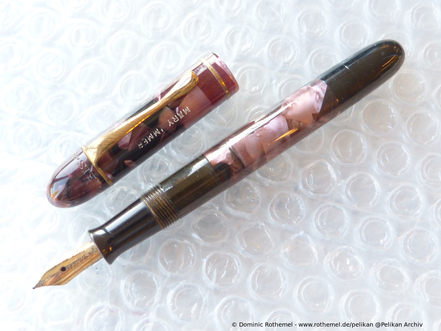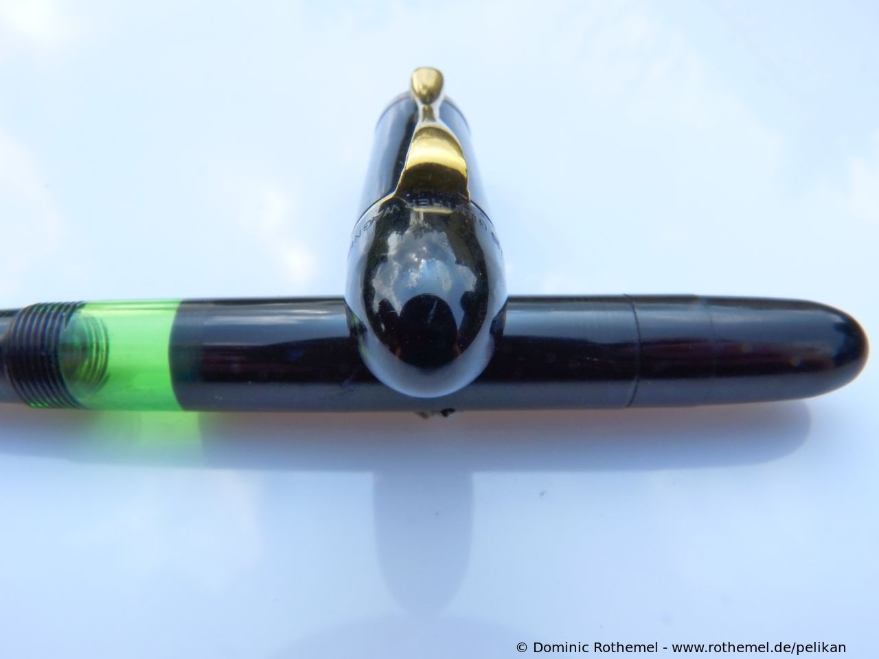 1949 Re-launch of the IBIS 130. For Germany with CN-nib. The new model is made from resin and a little bit longer than the earlier pens. Remaining stocks of ebonite caps are apparently used up, so models with mixed materials can be found.