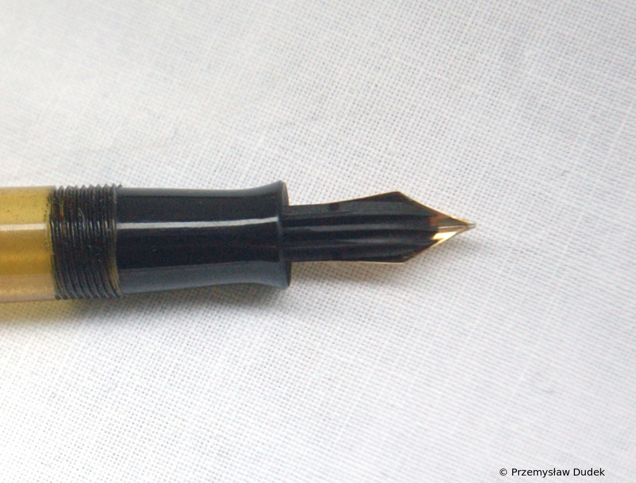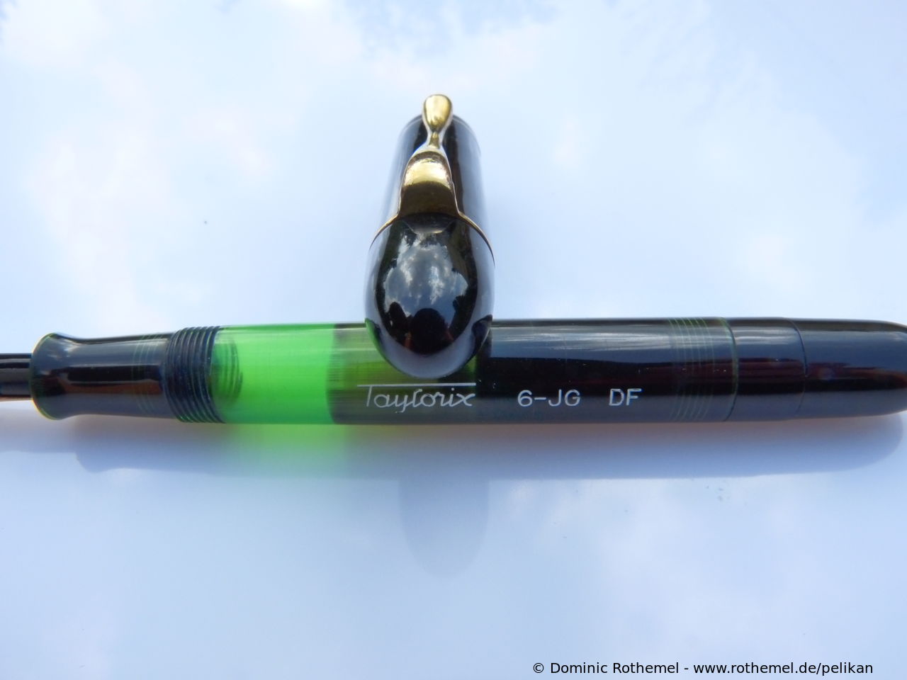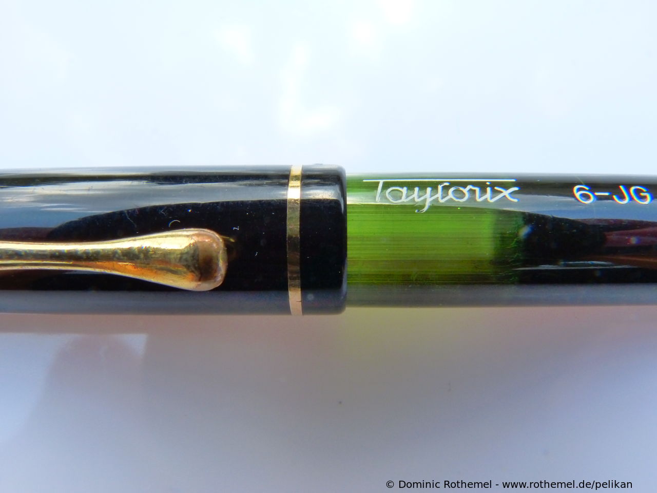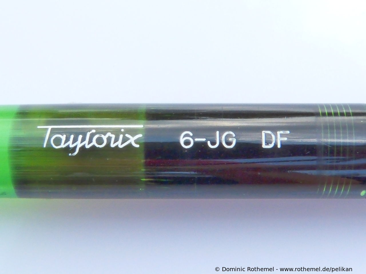 The Taylorix company was founded in 1922 in Stuttgart (Germany) as a distributor foraccounting needs. The Taylorix accounting system was originally developed for hand-write-carbon-copy accounts. Special carbon copy nibs for fountain pens were therefore necessary.Taylorix sold pens from different manufacturers under their own name. The term on the shaft, e.g. 6-G DF can decrypt as follows:
