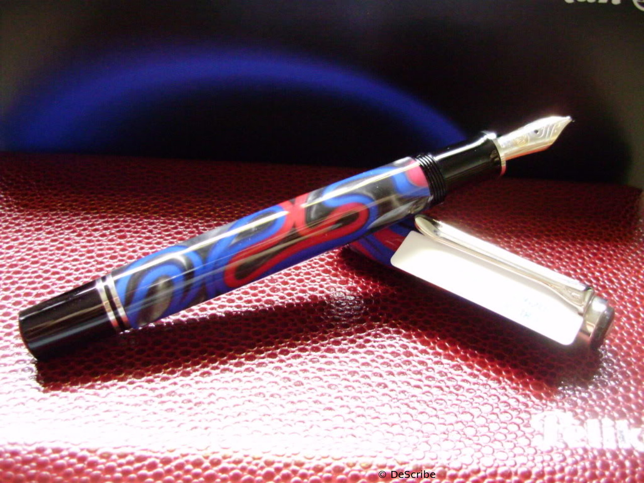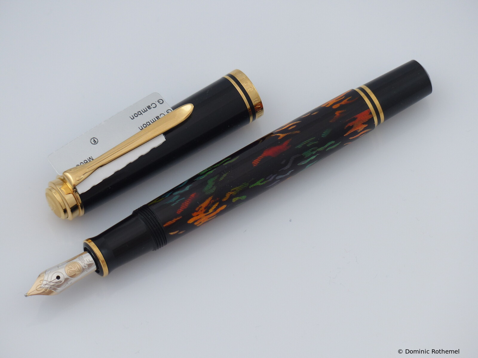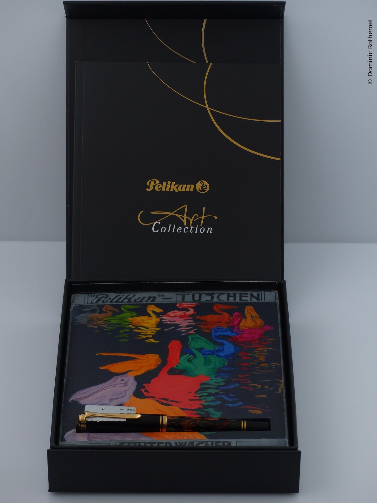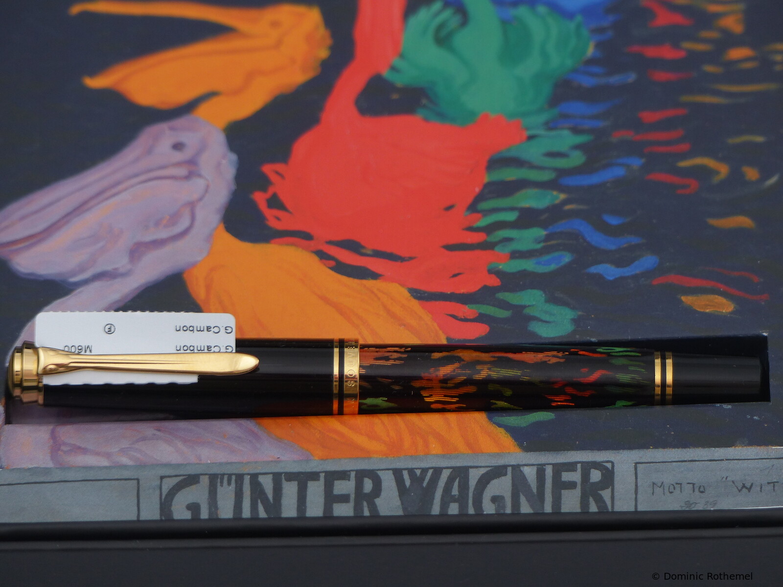 Pelikan introduces a new series, the Art Collection. This series is inspired by the artistically designed advertising posters of the previous century. To start with, the Glauco Cambon is released, the fountain pen is based on the M600 model. For the design of the barrel, an engraved and painted brass barrel is used, which is protected several times with clear varnish.