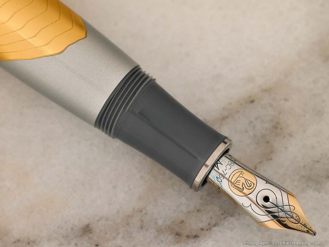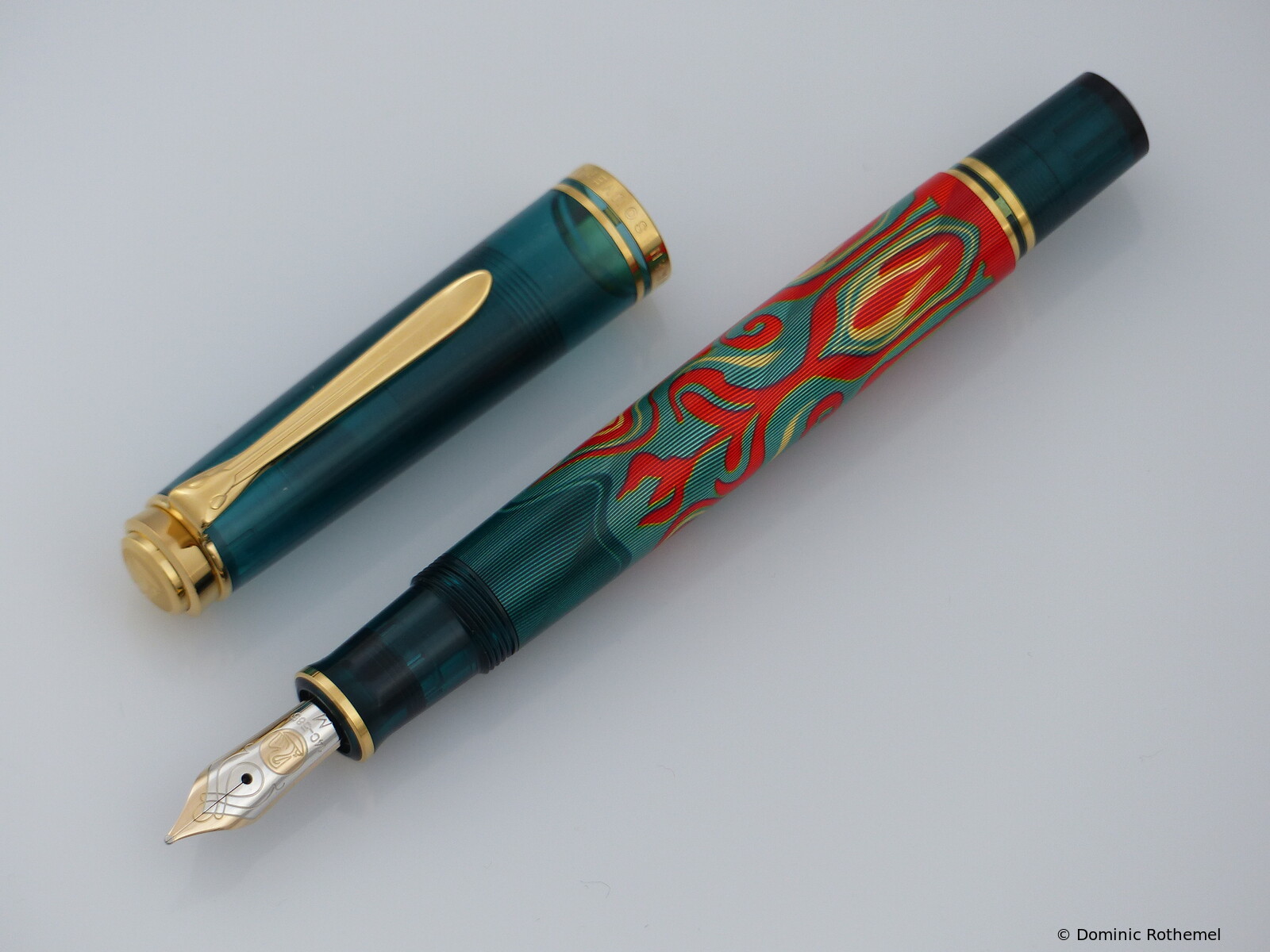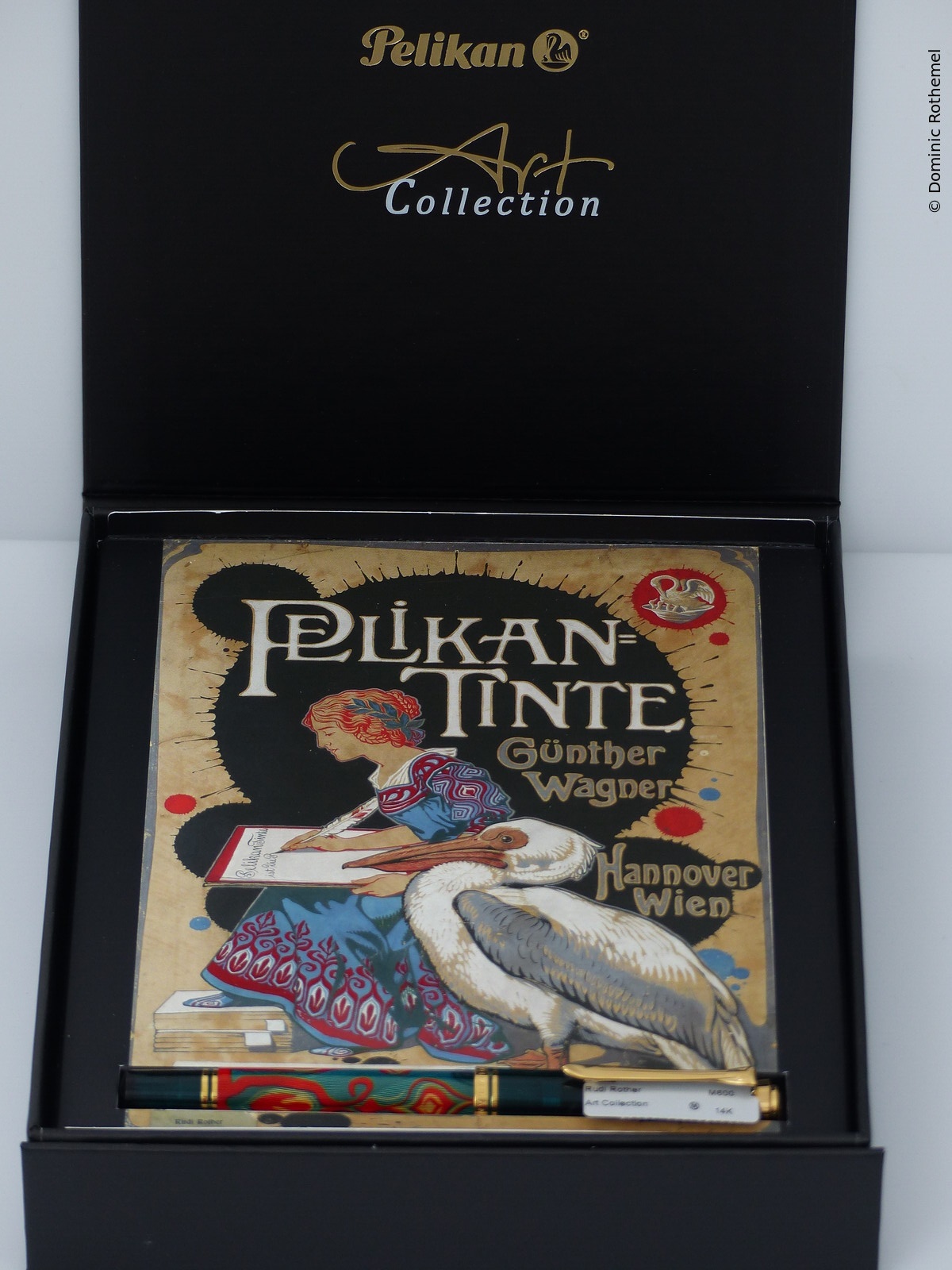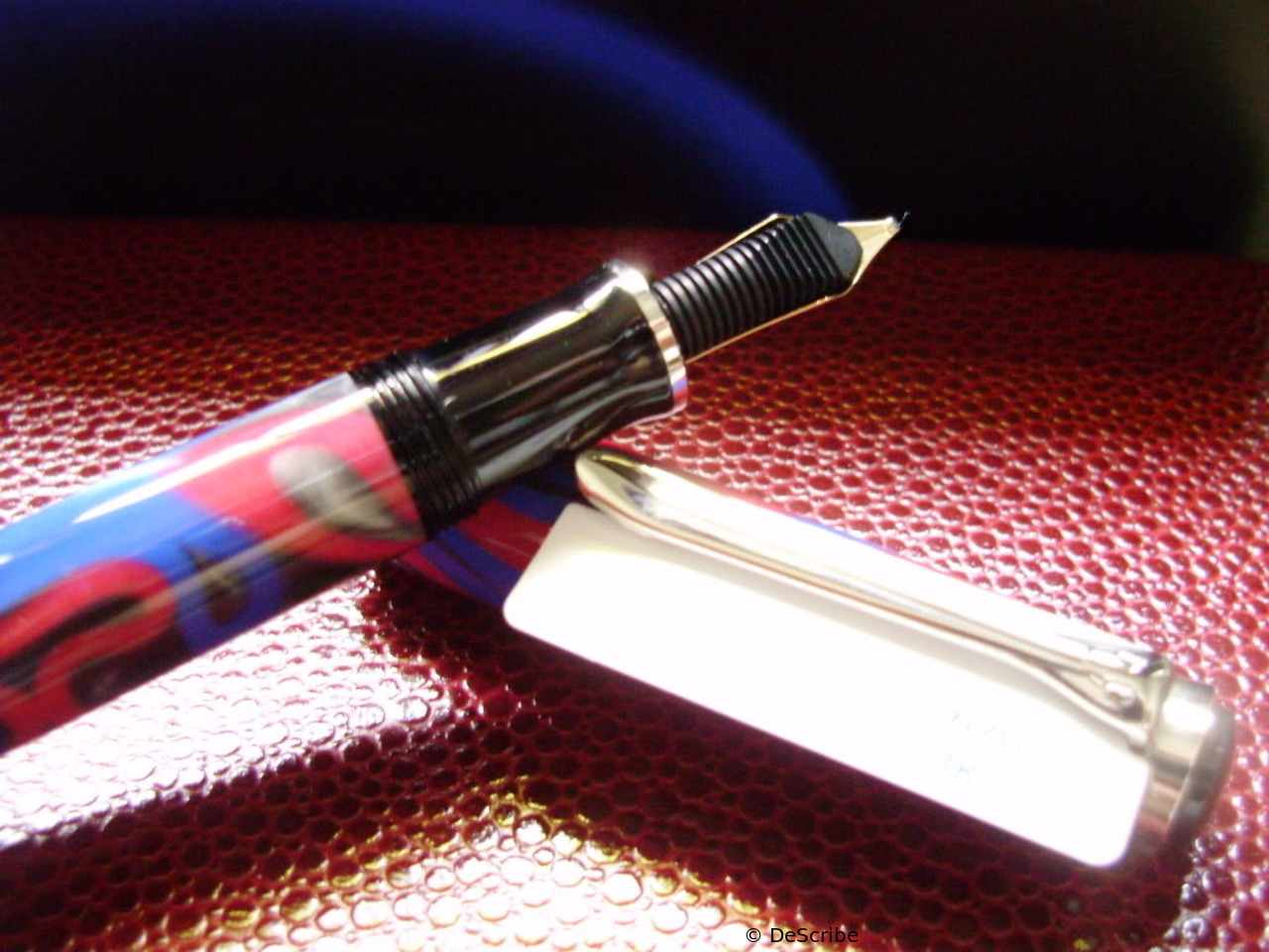 Pelikan introduces a new series, the Art Collection. This series is inspired by the artistically designed advertising posters of the previous century. To start with, the Glauco Cambon is released, the fountain pen is based on the M600 model. For the design of the barrel, an engraved and painted brass barrel is used, which is protected several times with clear varnish.