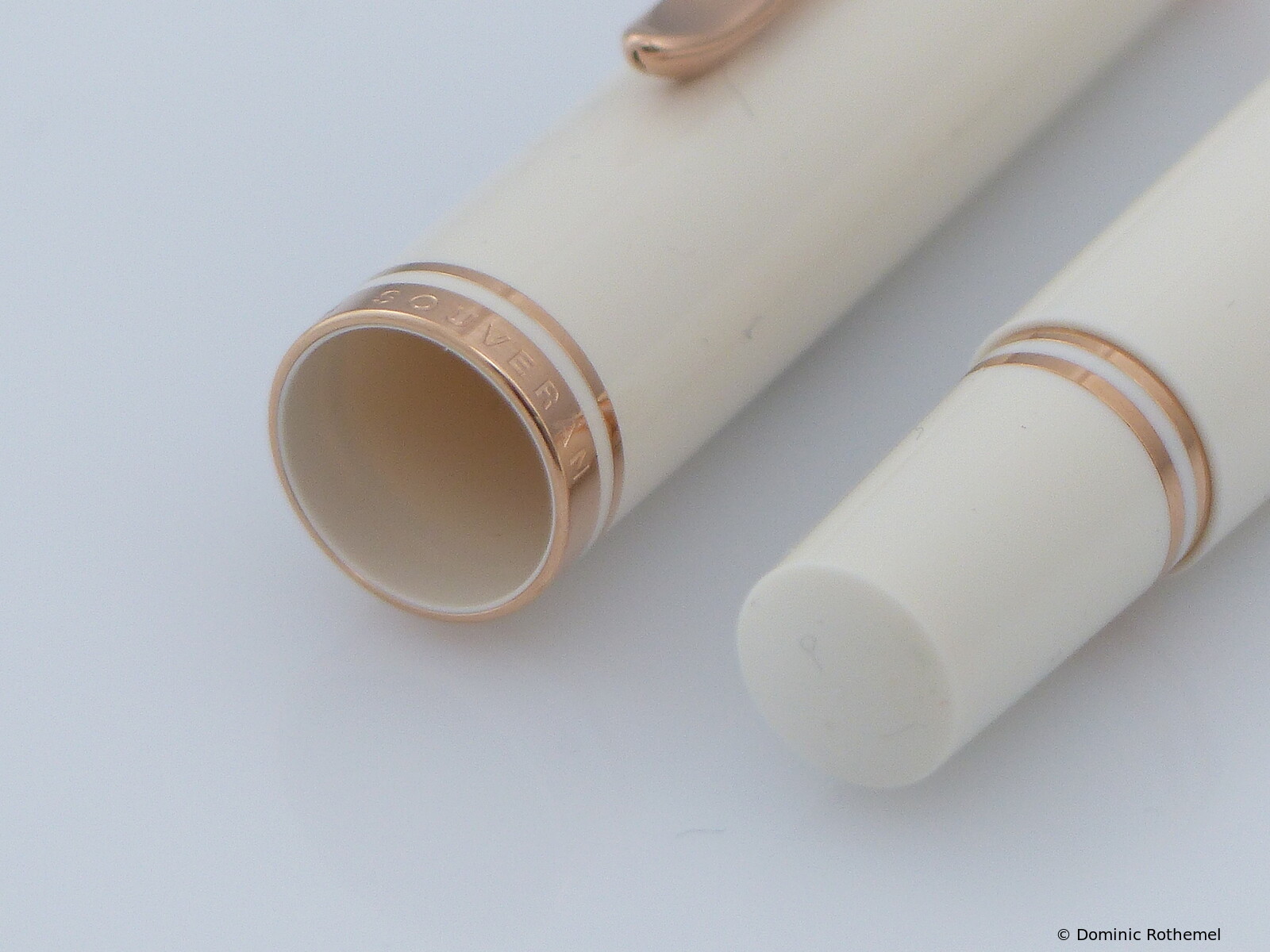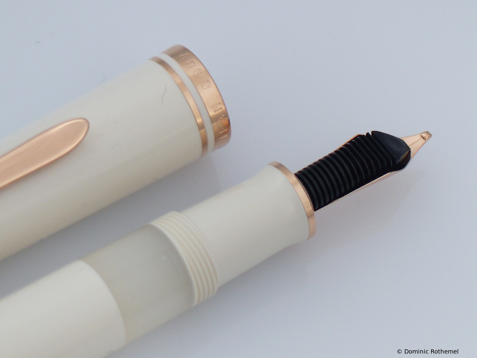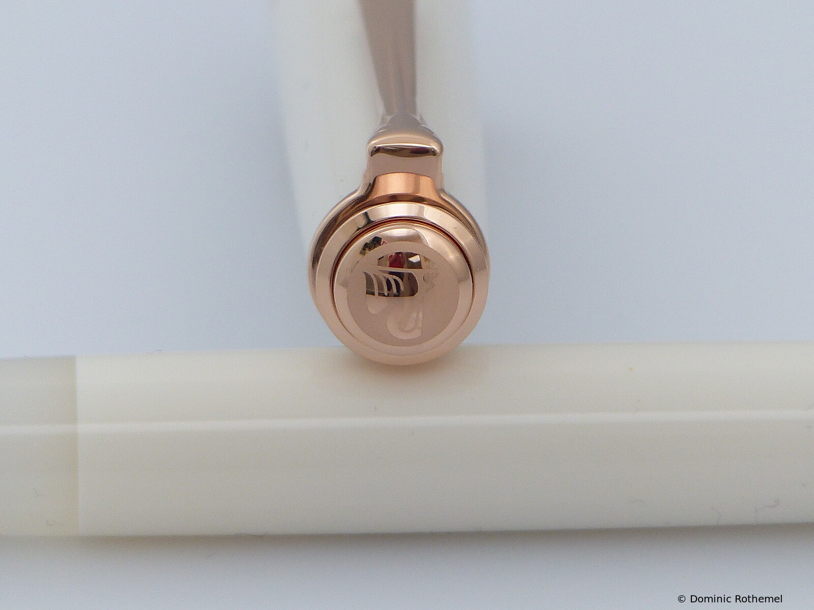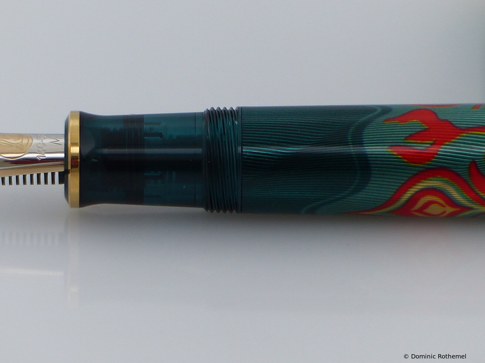 The pen weighs just under 1 oz. The fountain pen is made of guilloché brass and has been lacquered ten times.