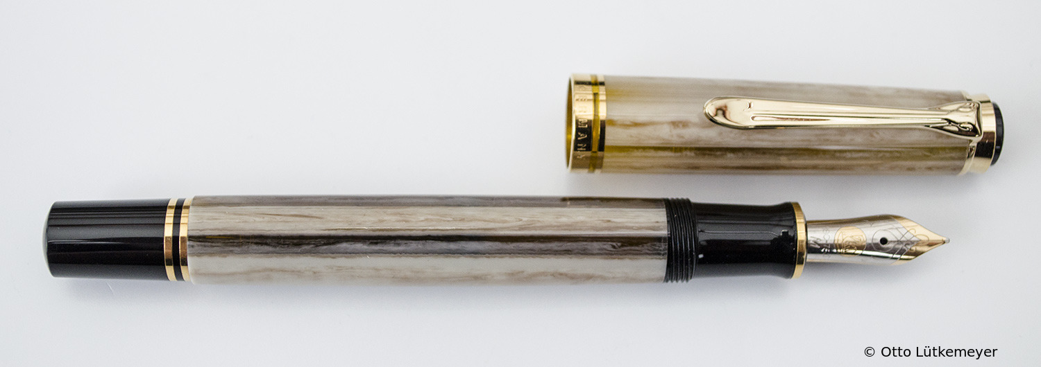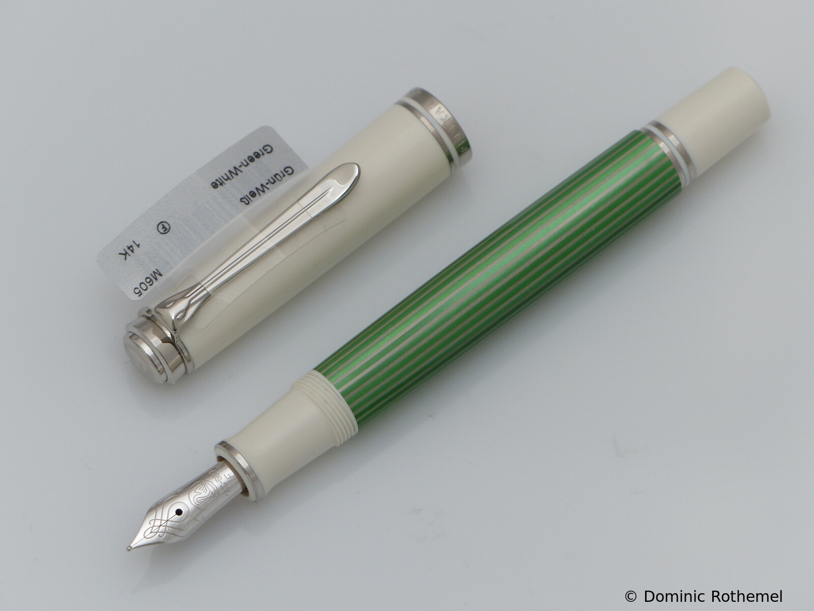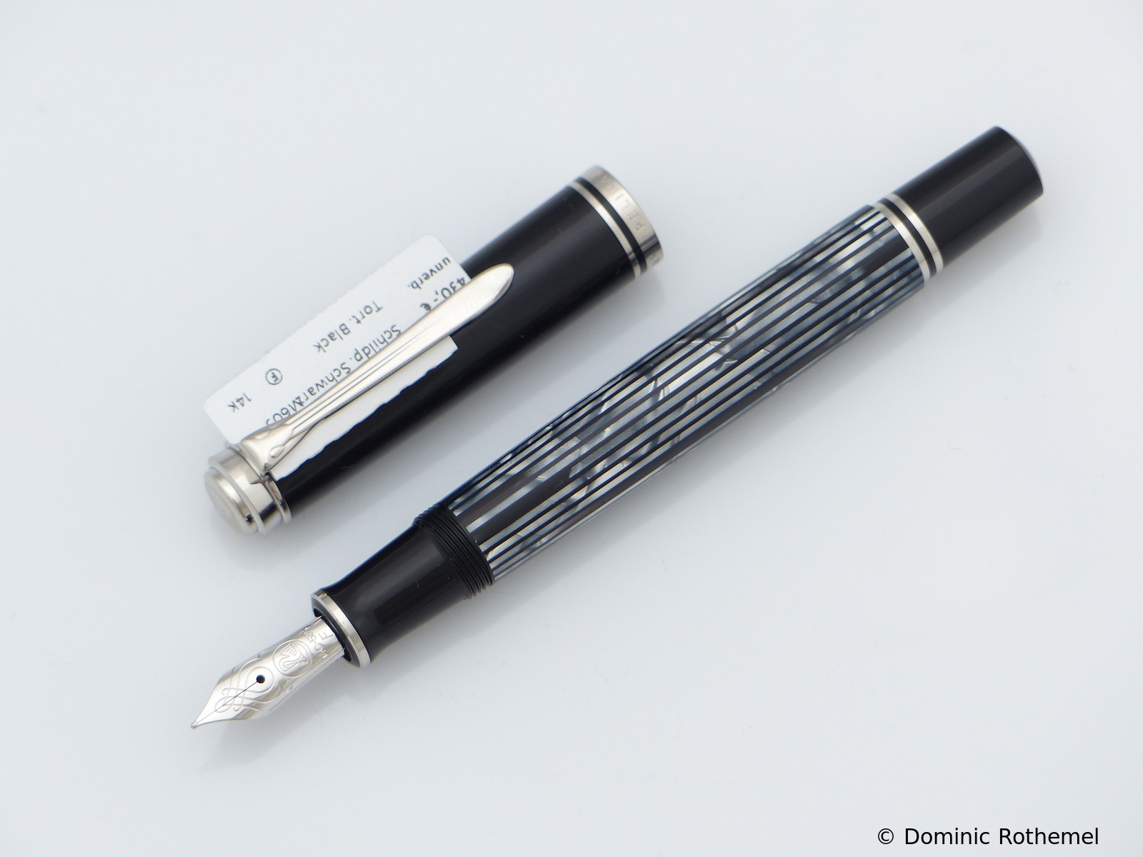 The use of the new model number M670 was introduced in 2024 for an M600 size Soverän with black anodized trims and nib. The model makes you think of the small M100 (old style) “Stormtrooper”.