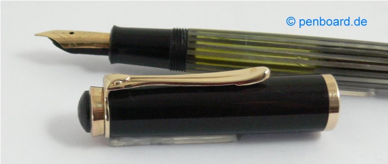 Black-Striped. Cap and filling knob made from 14 ct gold.