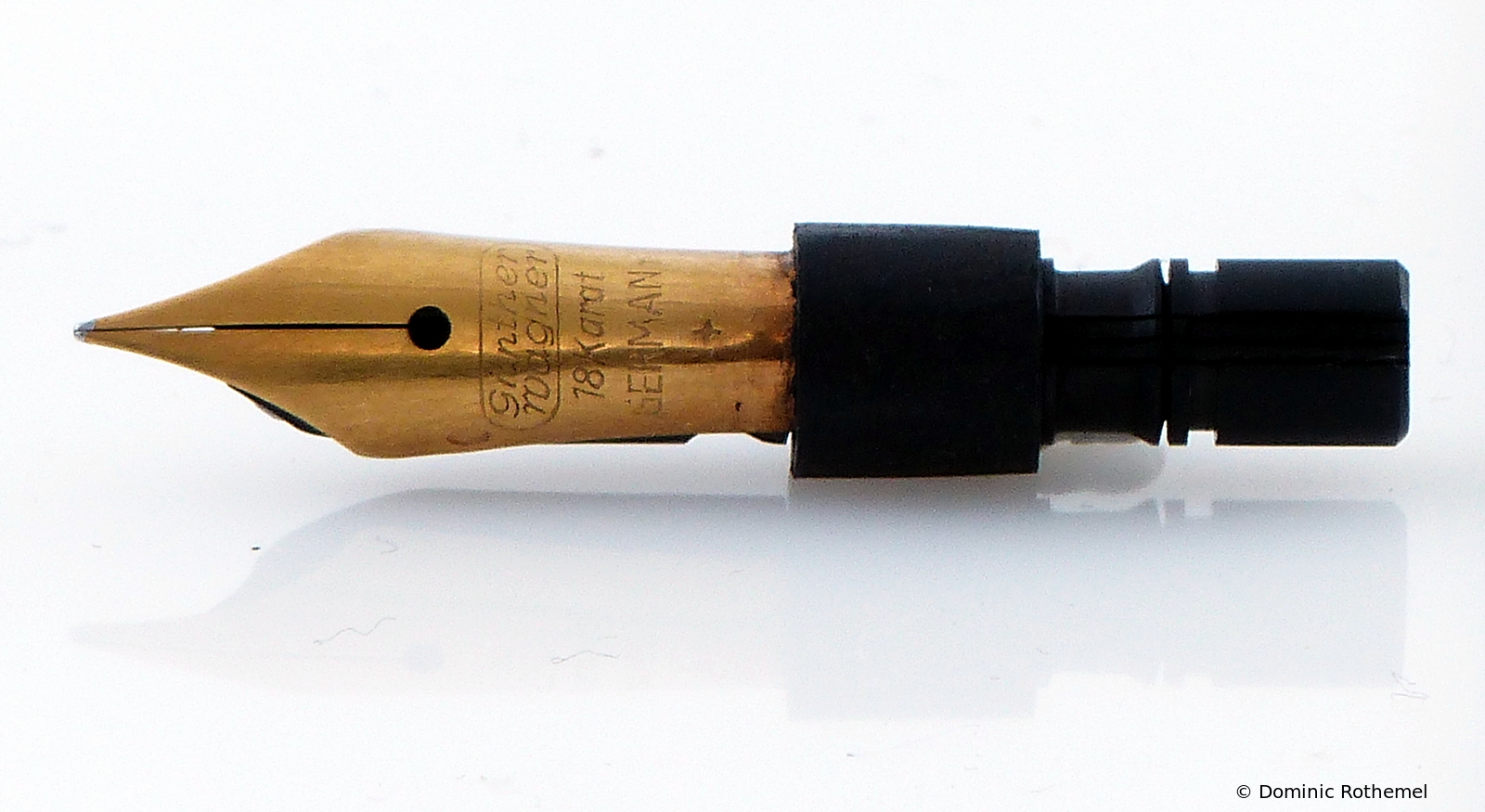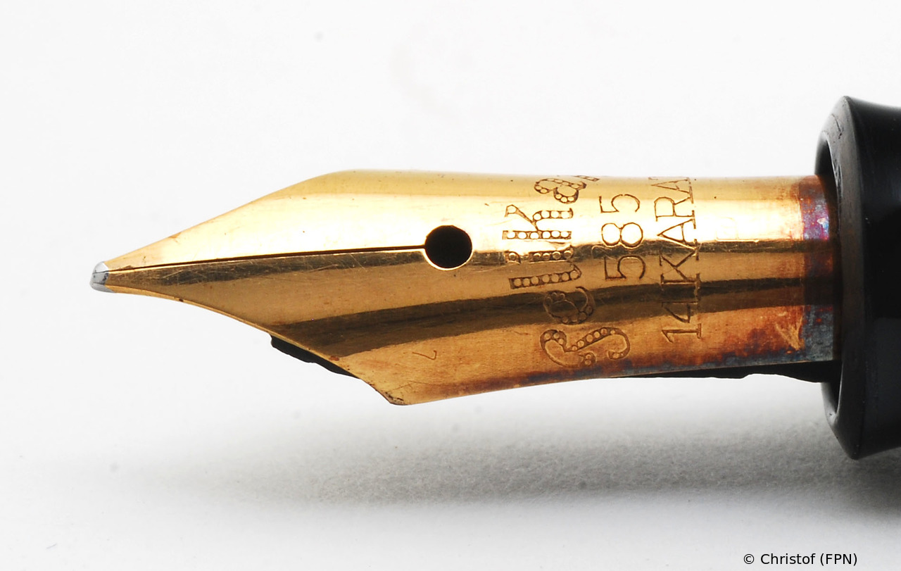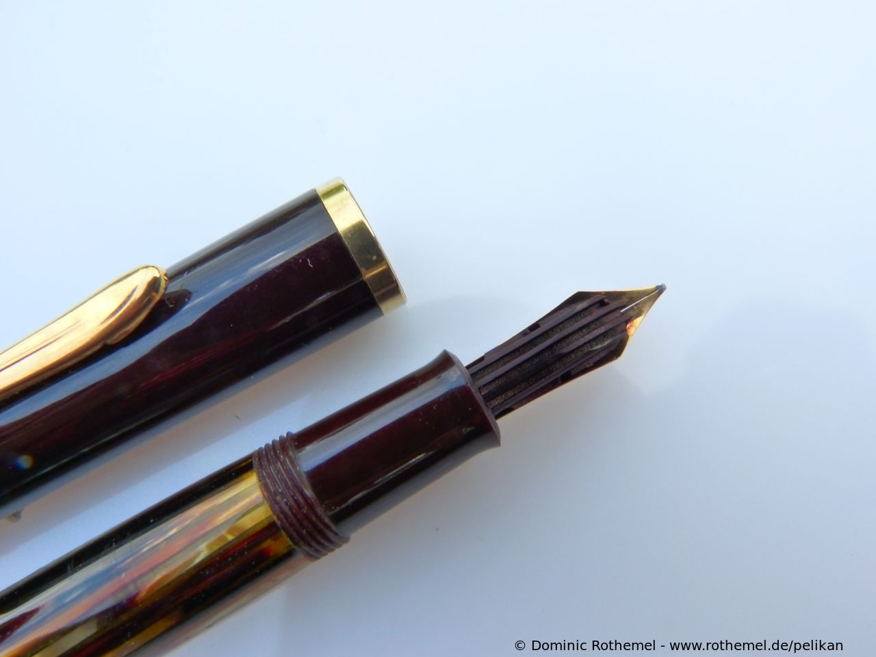 As of December 1954, the nib design with the Pelikan logo was introduced. Previously, the imprint was Pelikan 585.