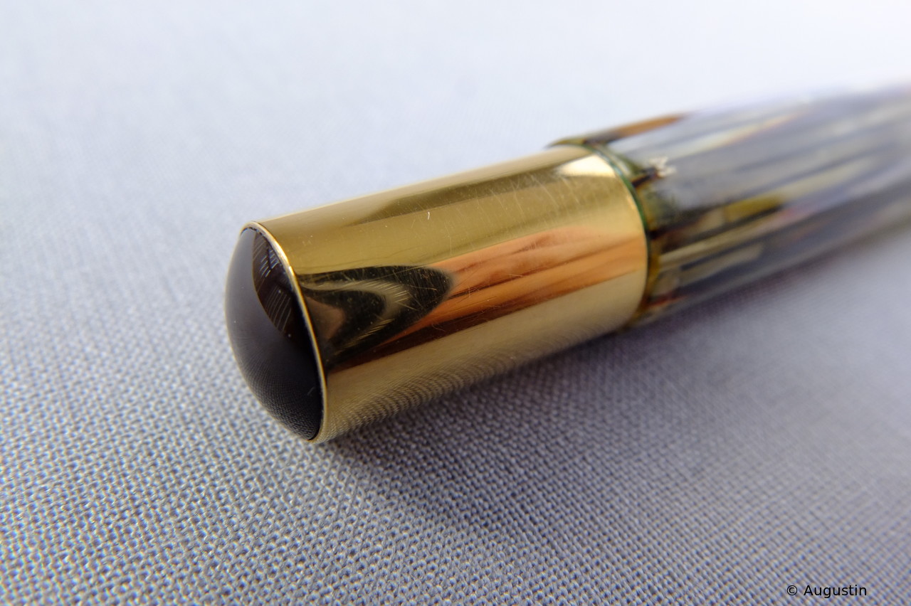 Tortoise brown striped. Cap and filling knob made from 14 ct gold.