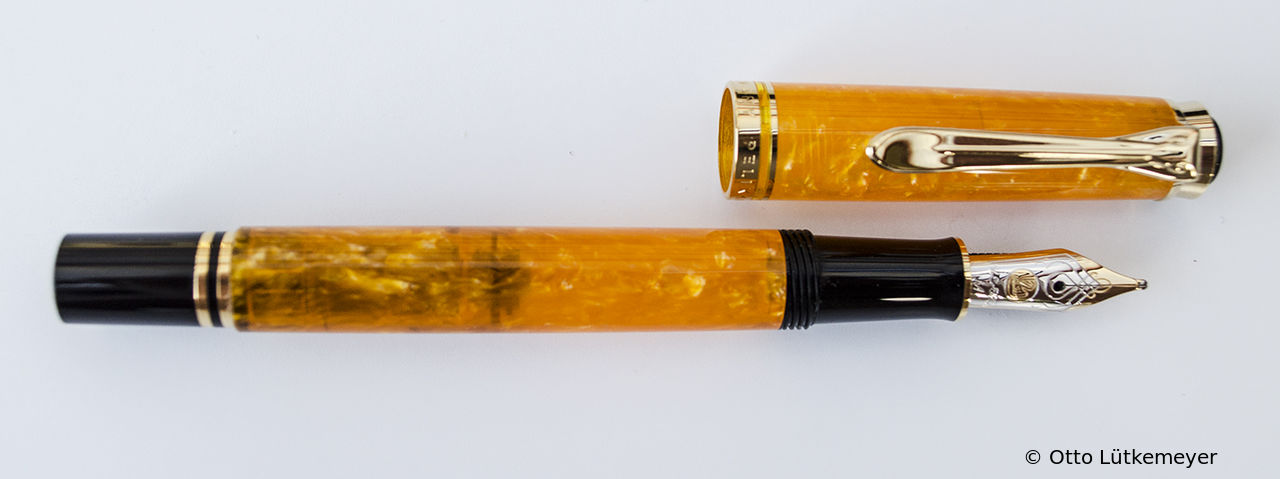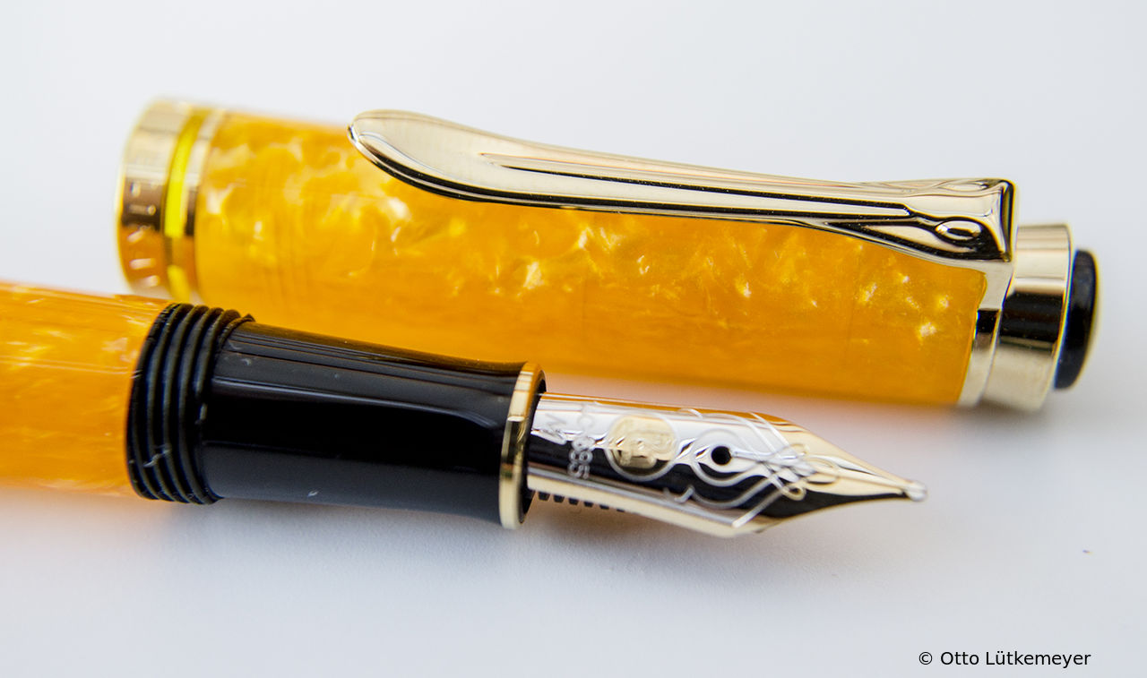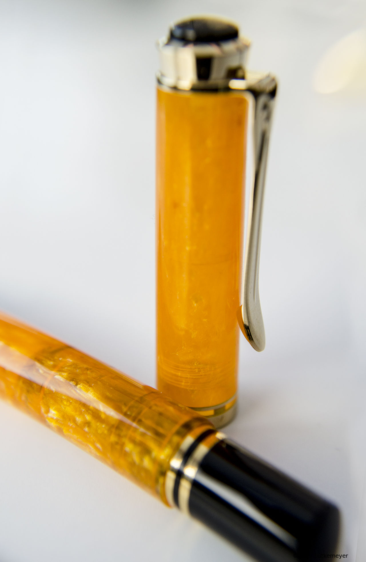 The model M350 has a cap made from vermeil (gold plated silver) and a bi-color 18 carat gold nib.