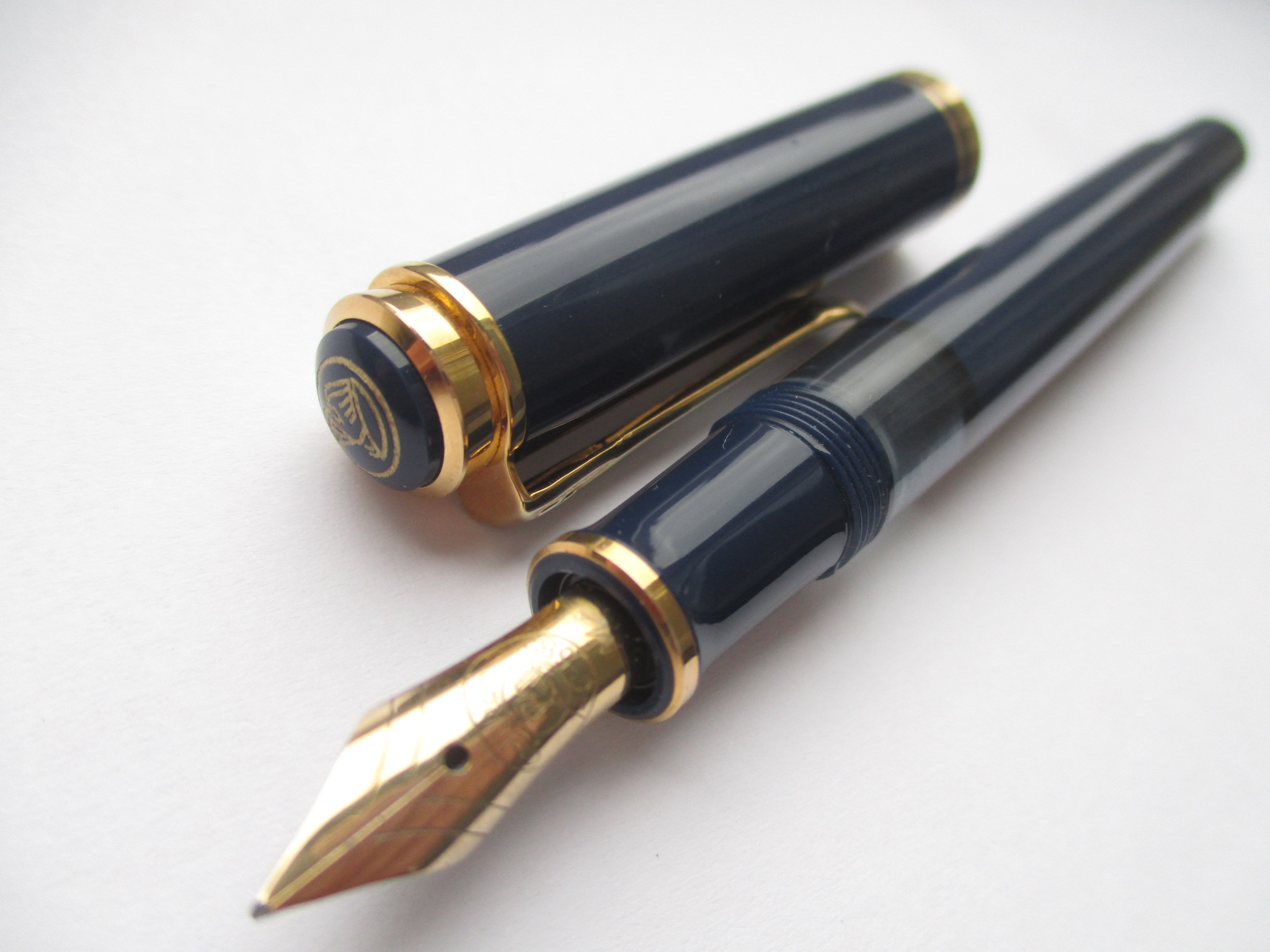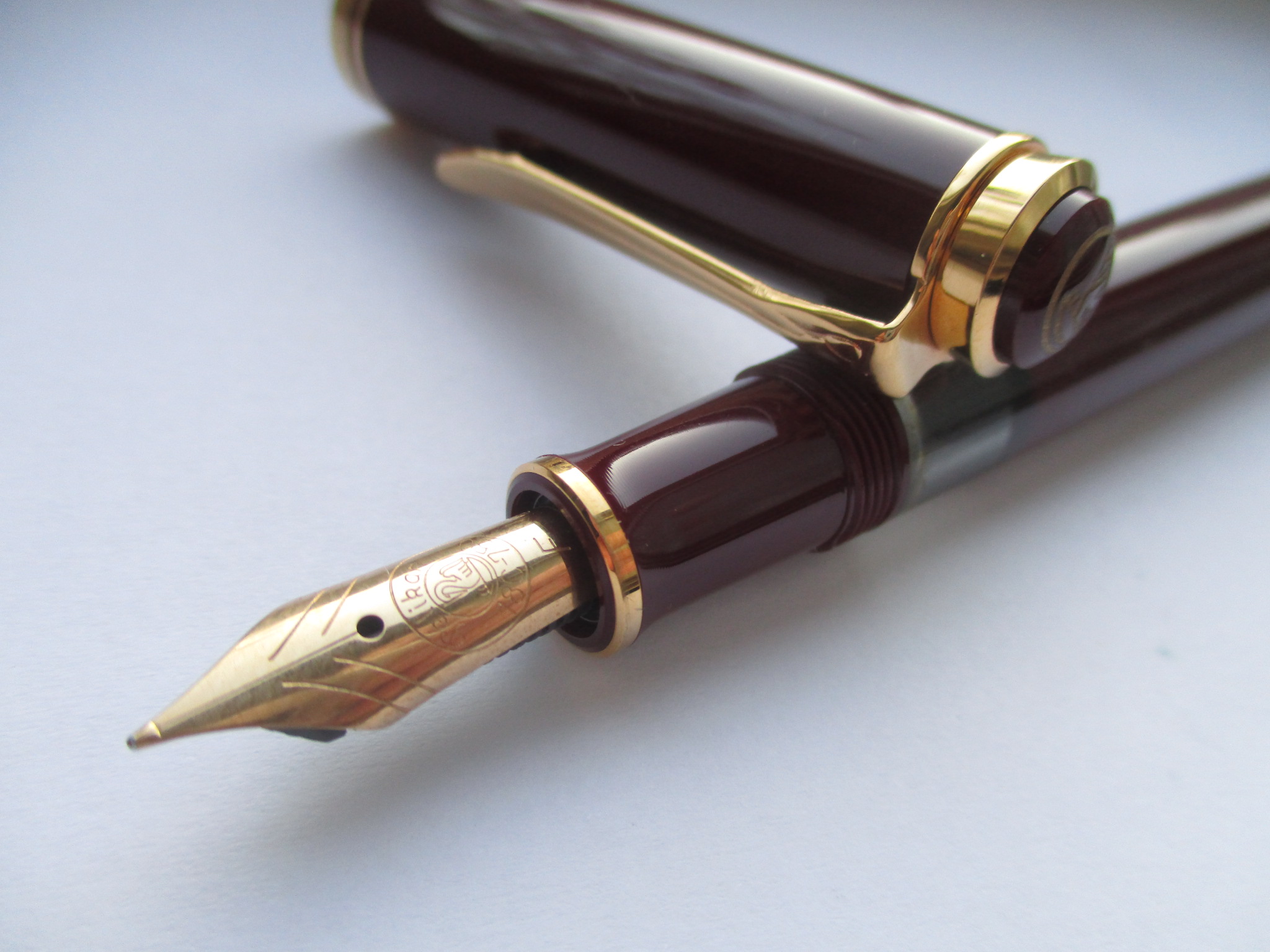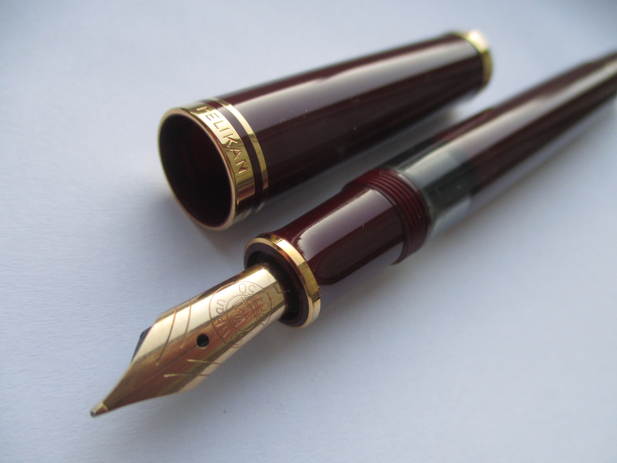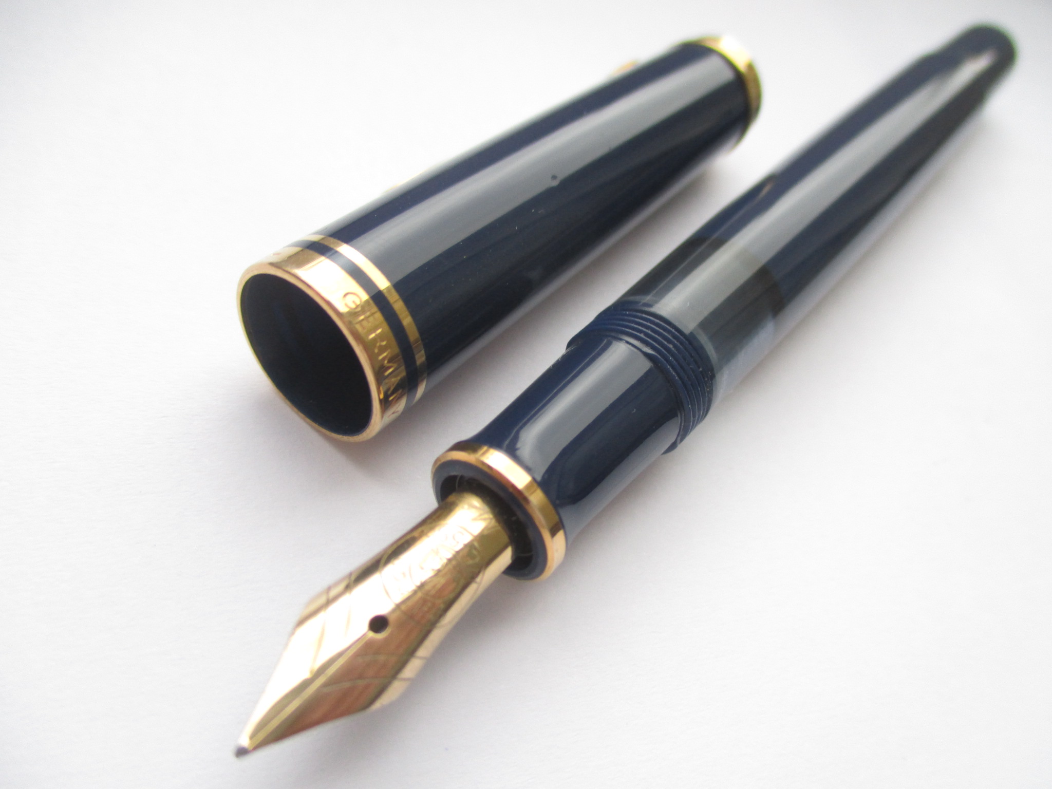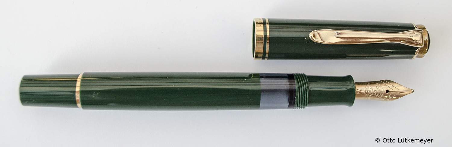 1985 was the M600 available as a luxury version of the new M400 with 18 ct uni-color gold nib and additional trim ring on the filling knob. From 1990 the M600 - in size of the M400 - was added with bi-color nib to the standard offering.