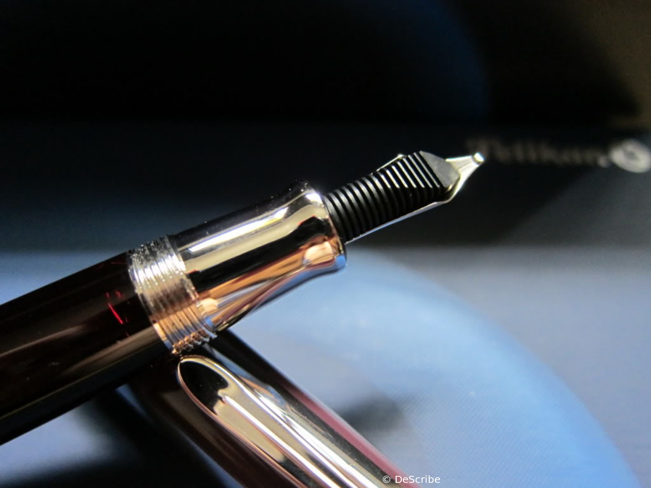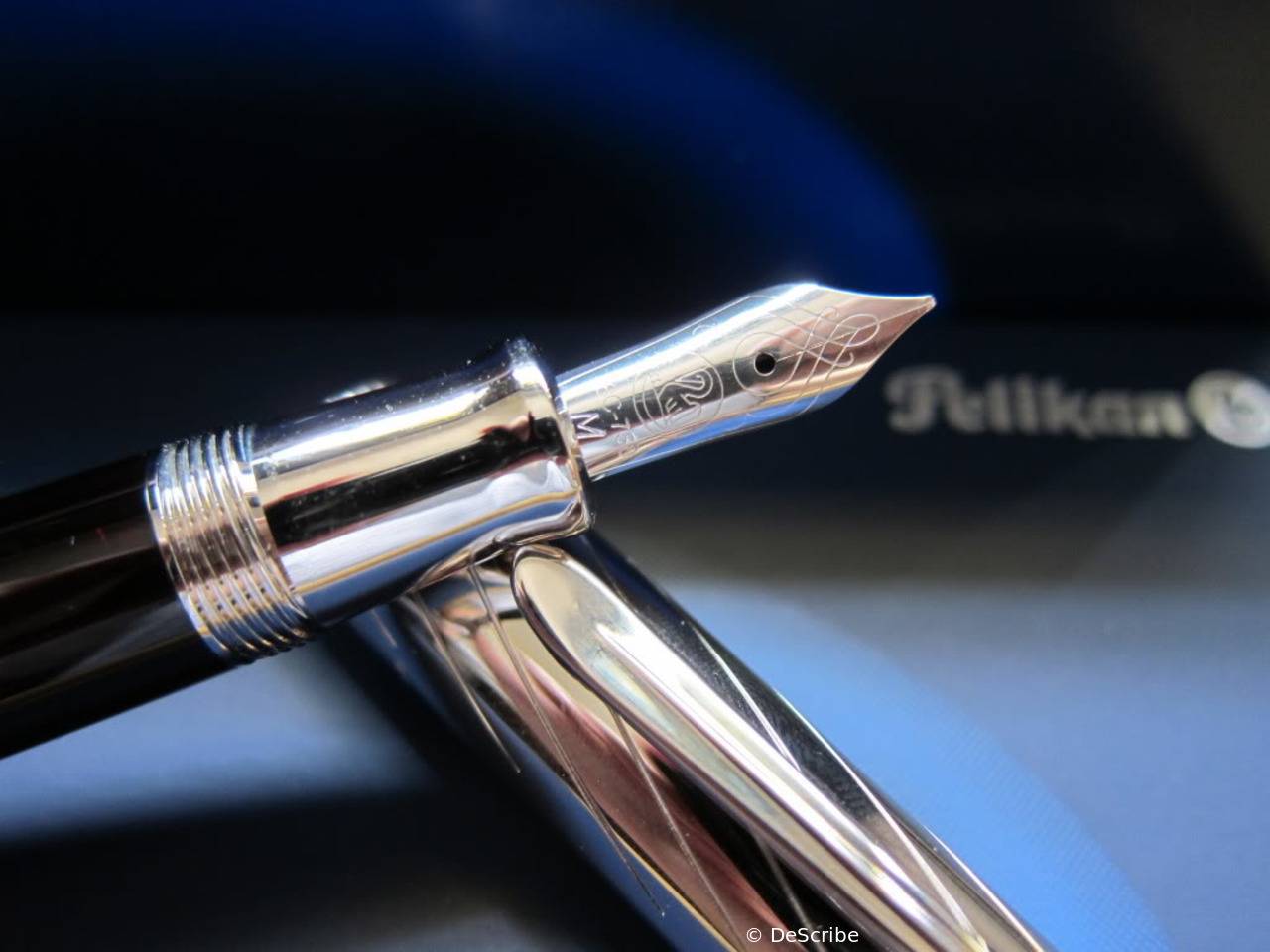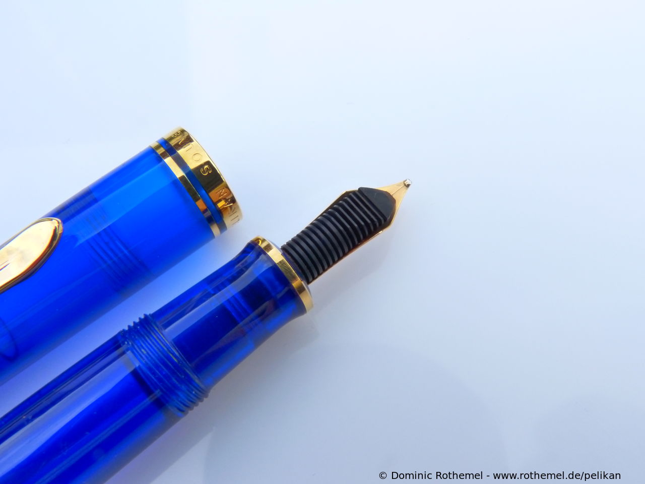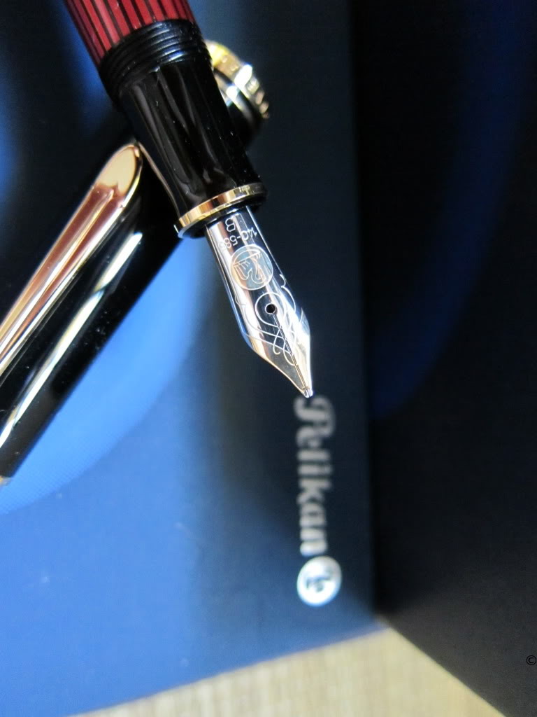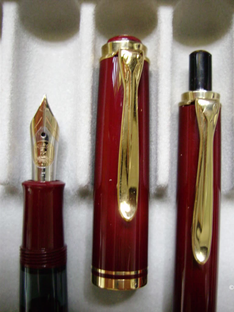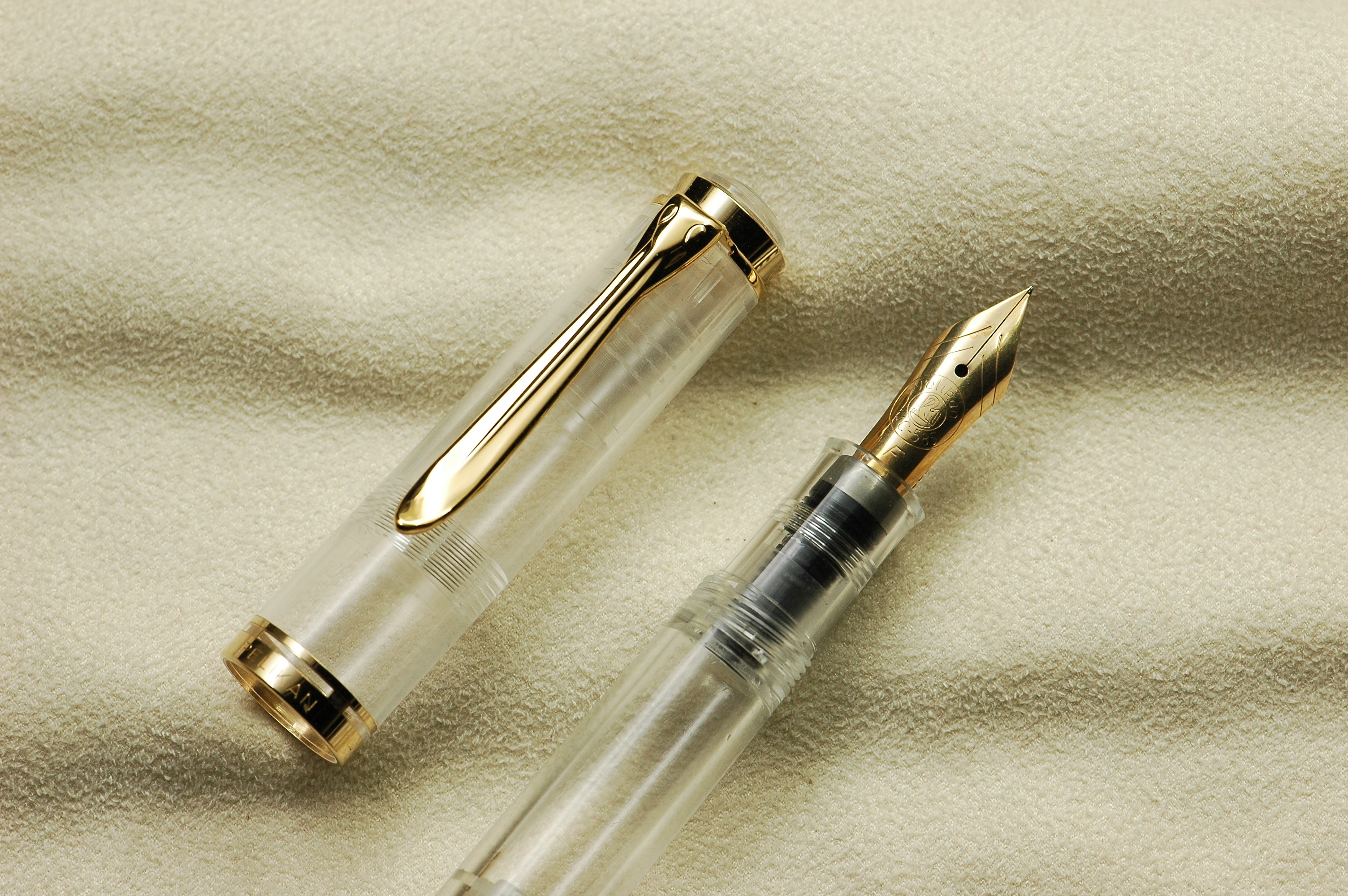 1985 was the M600 available as a luxury version of the new M400 with 18 ct uni-color gold nib and additional trim ring on the filling knob. From 1990 the M600 - in size of the M400 - was added with bi-color nib to the standard offering.