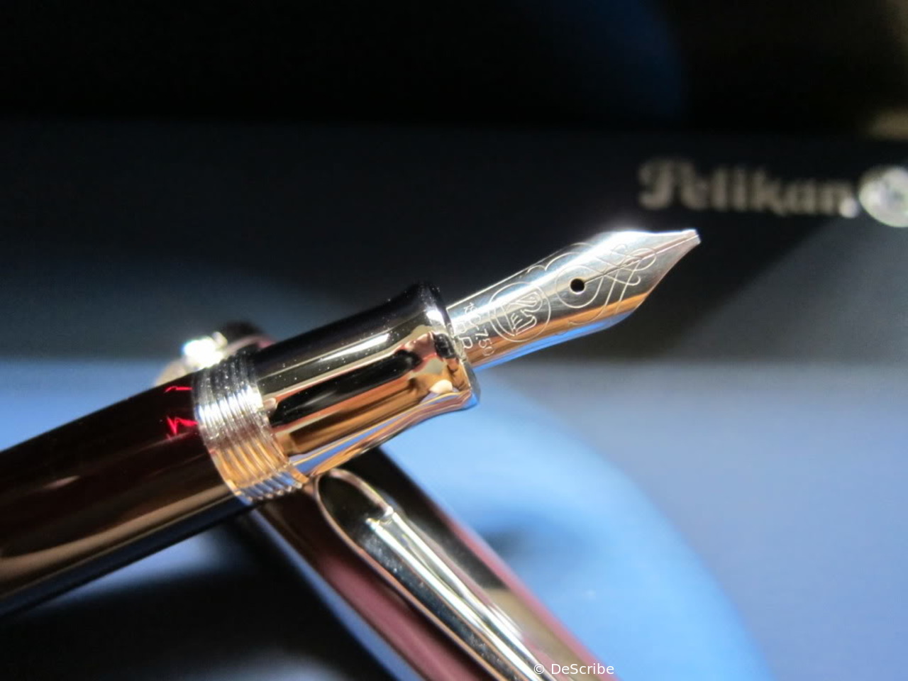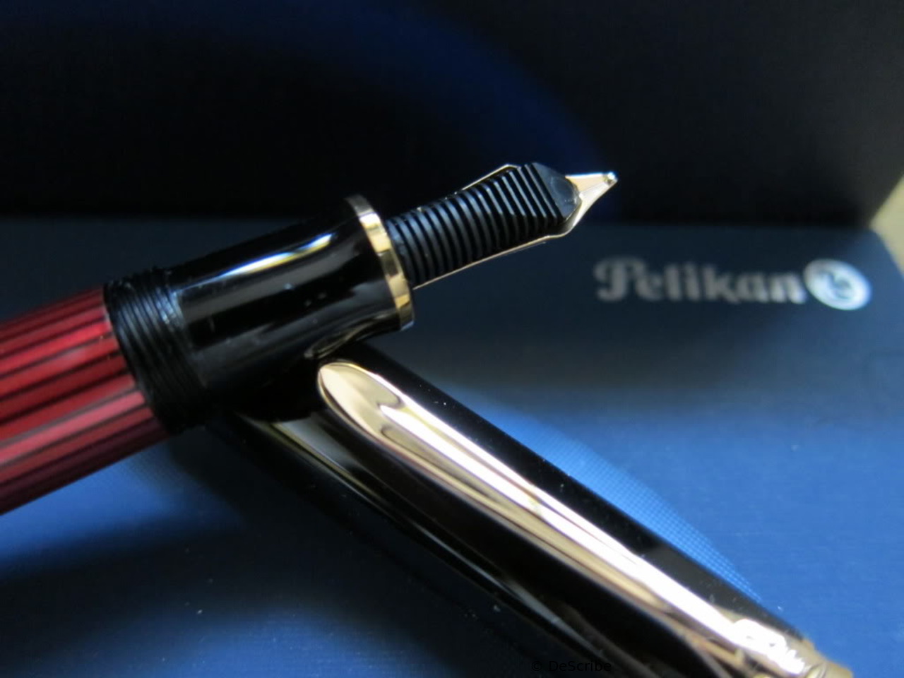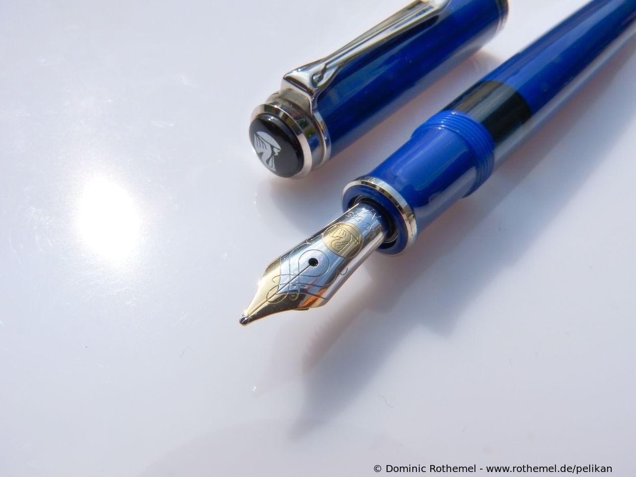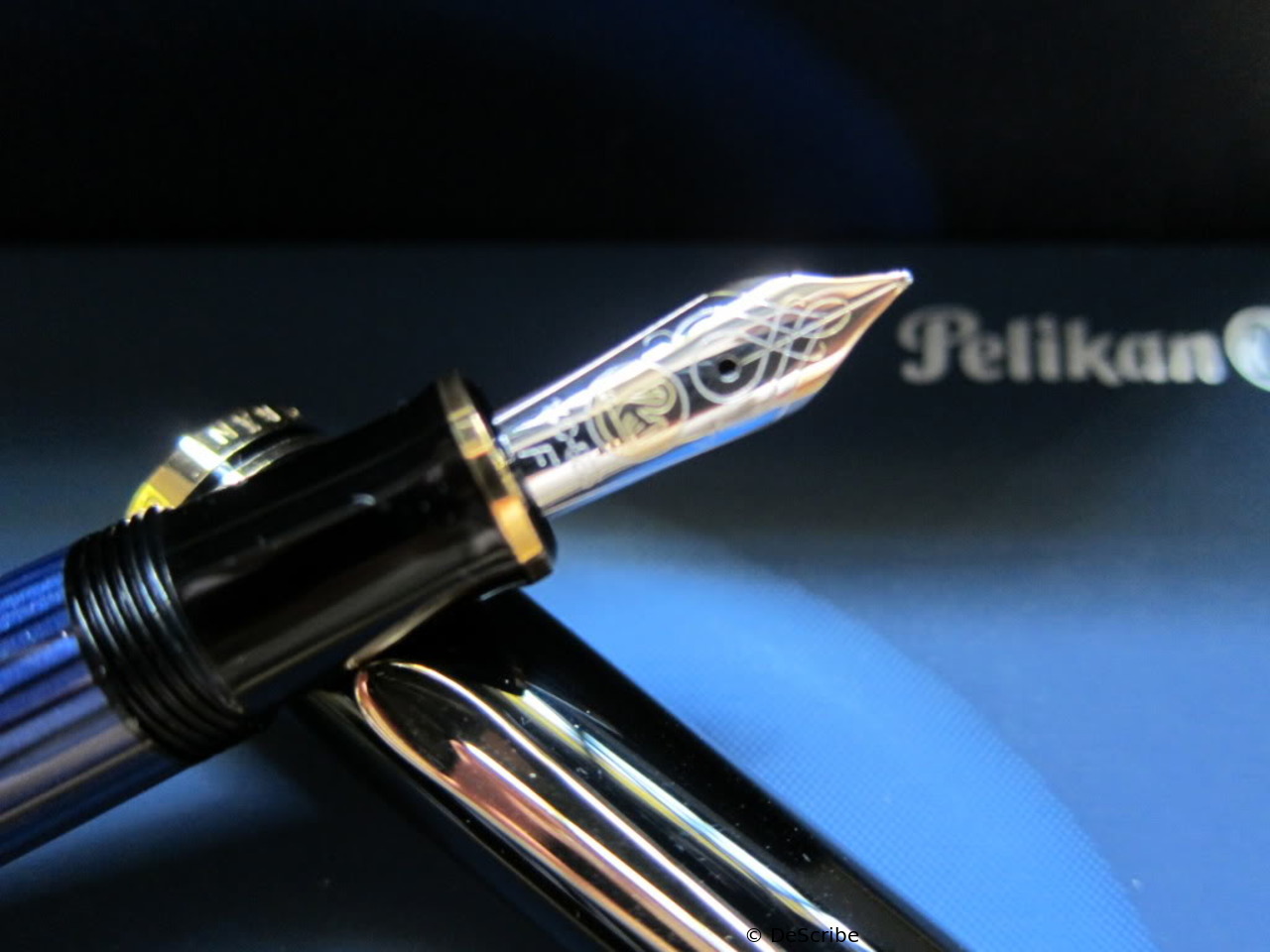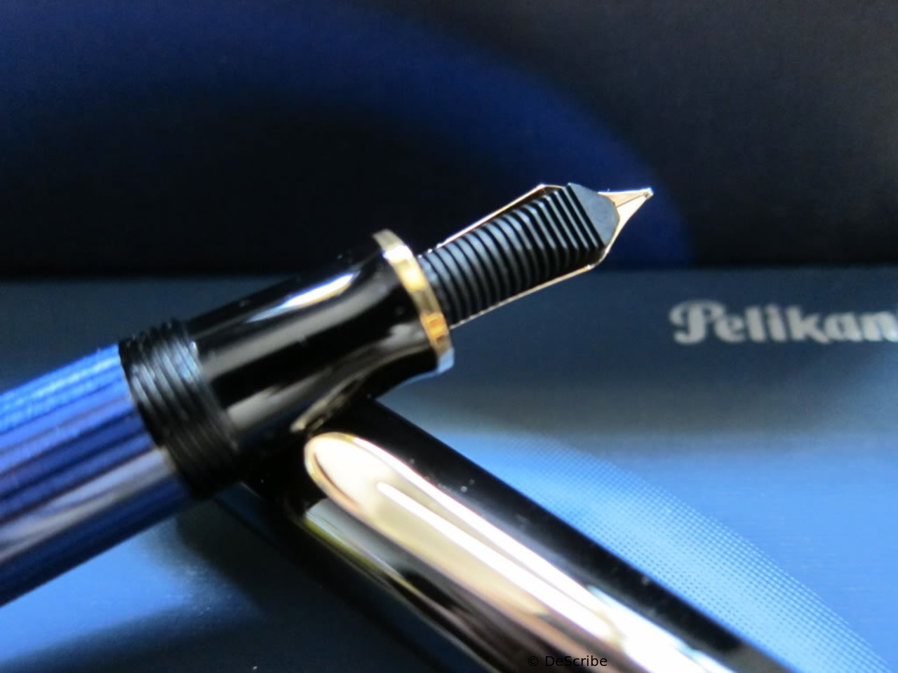 1985 was the M600 available as a luxury version of the new M400 with 18 ct uni-color gold nib and additional trim ring on the filling knob. From 1990 the M600 - in size of the M400 - was added with bi-color nib to the standard offering.