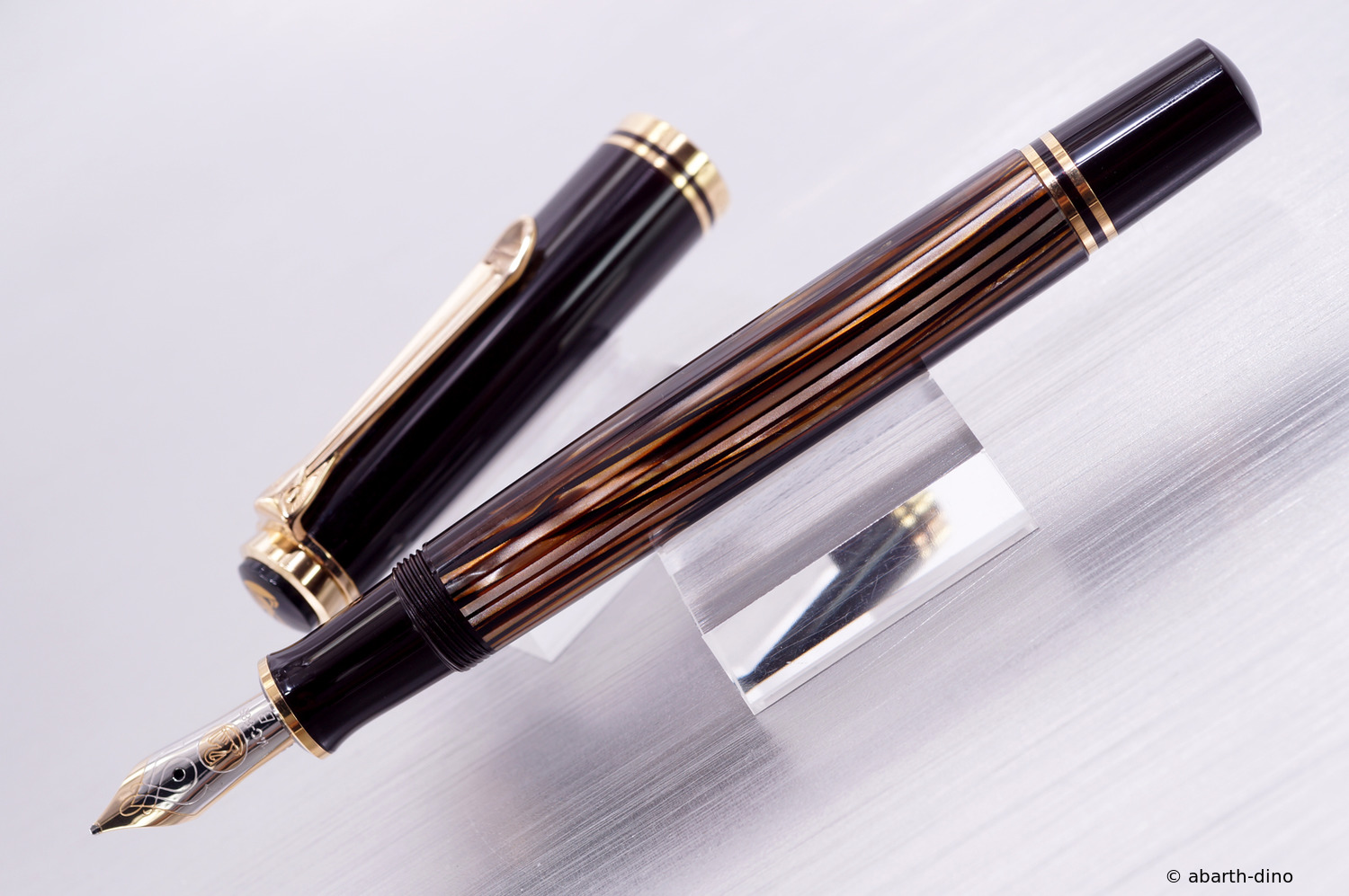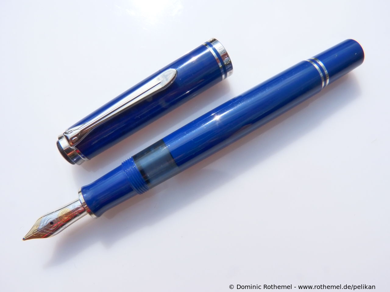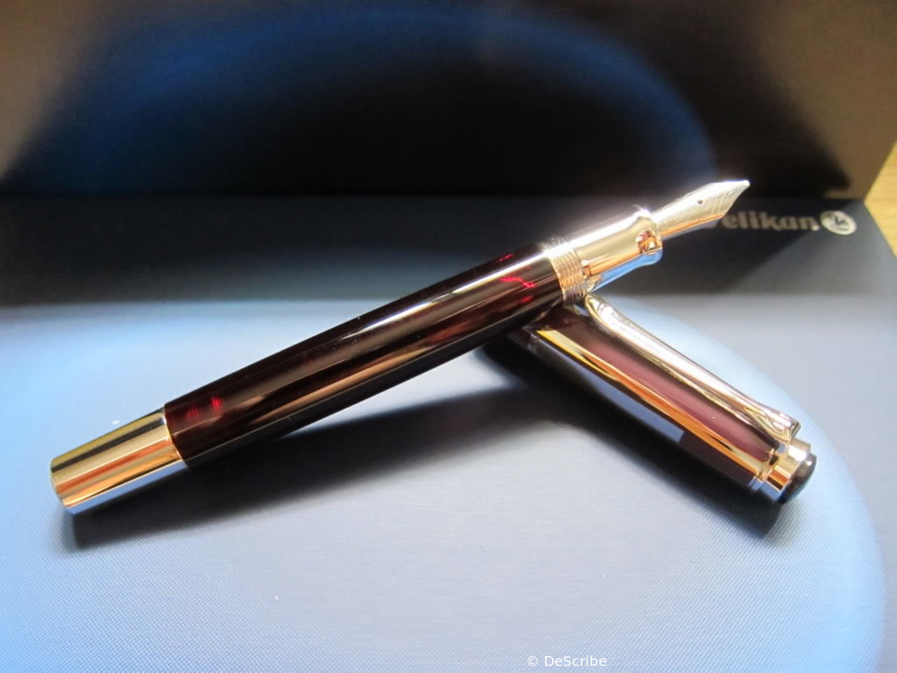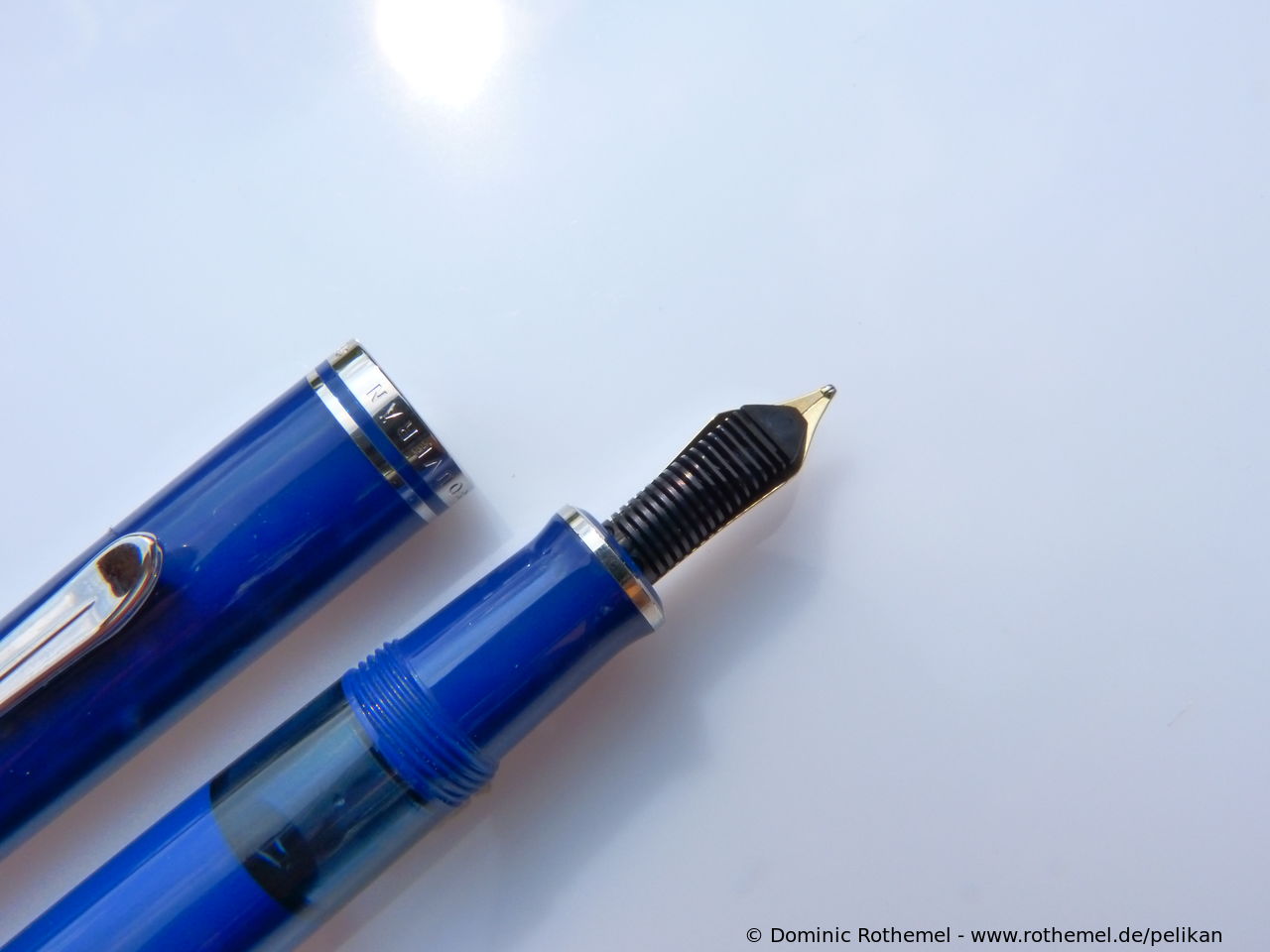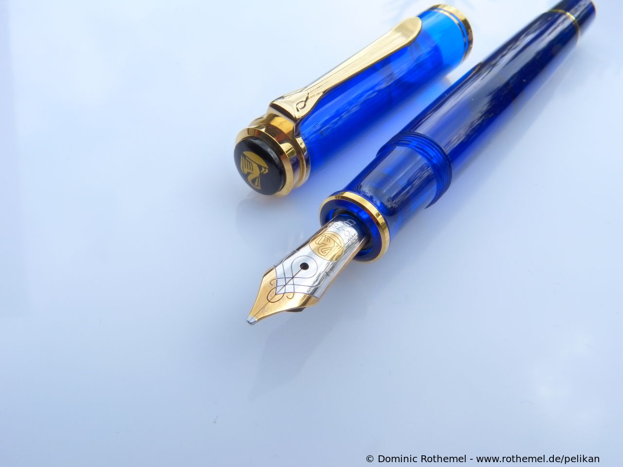 1985 was the M600 available as a luxury version of the new M400 with 18 ct uni-color gold nib and additional trim ring on the filling knob. From 1990 the M600 - in size of the M400 - was added with bi-color nib to the standard offering.