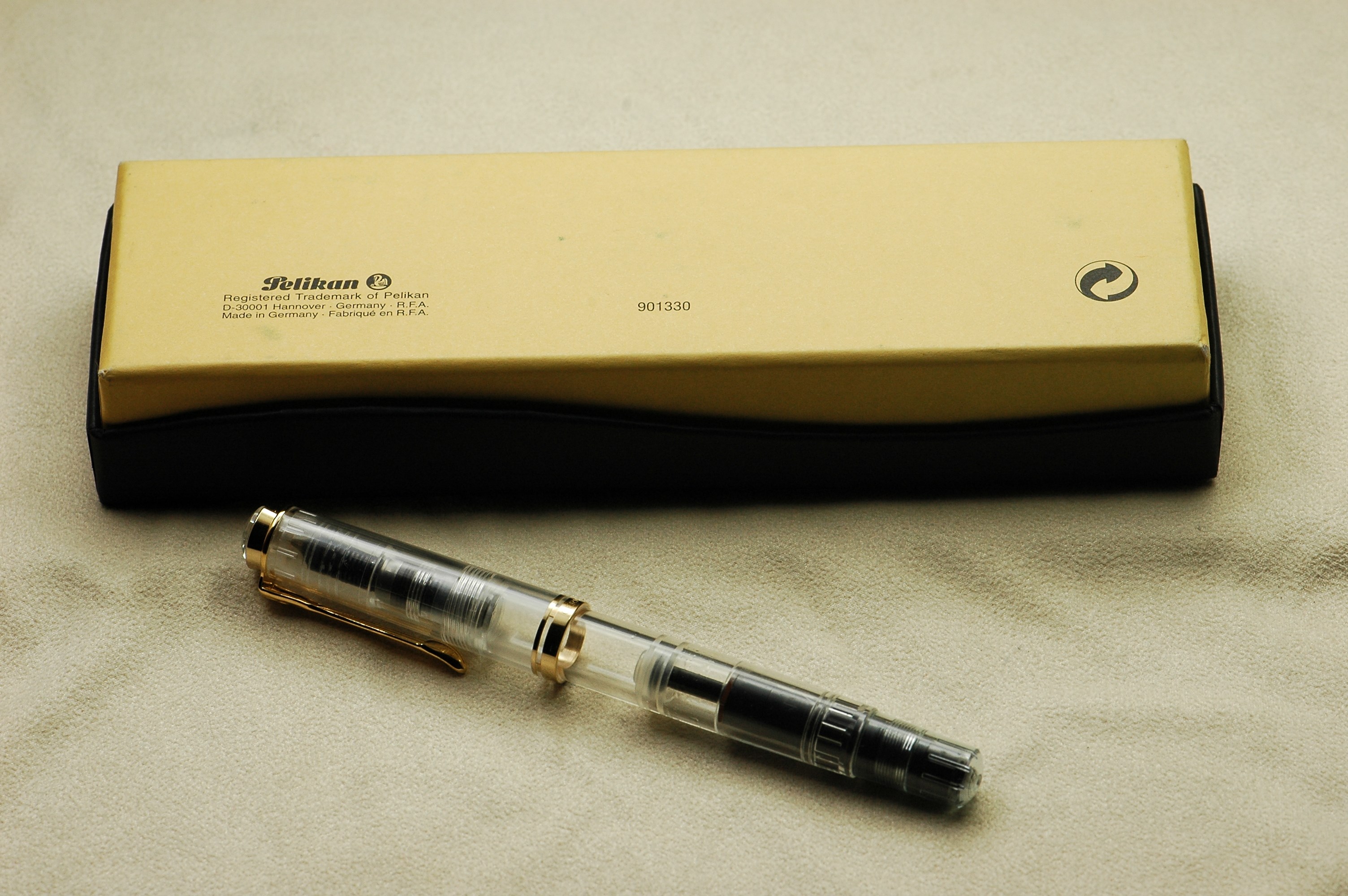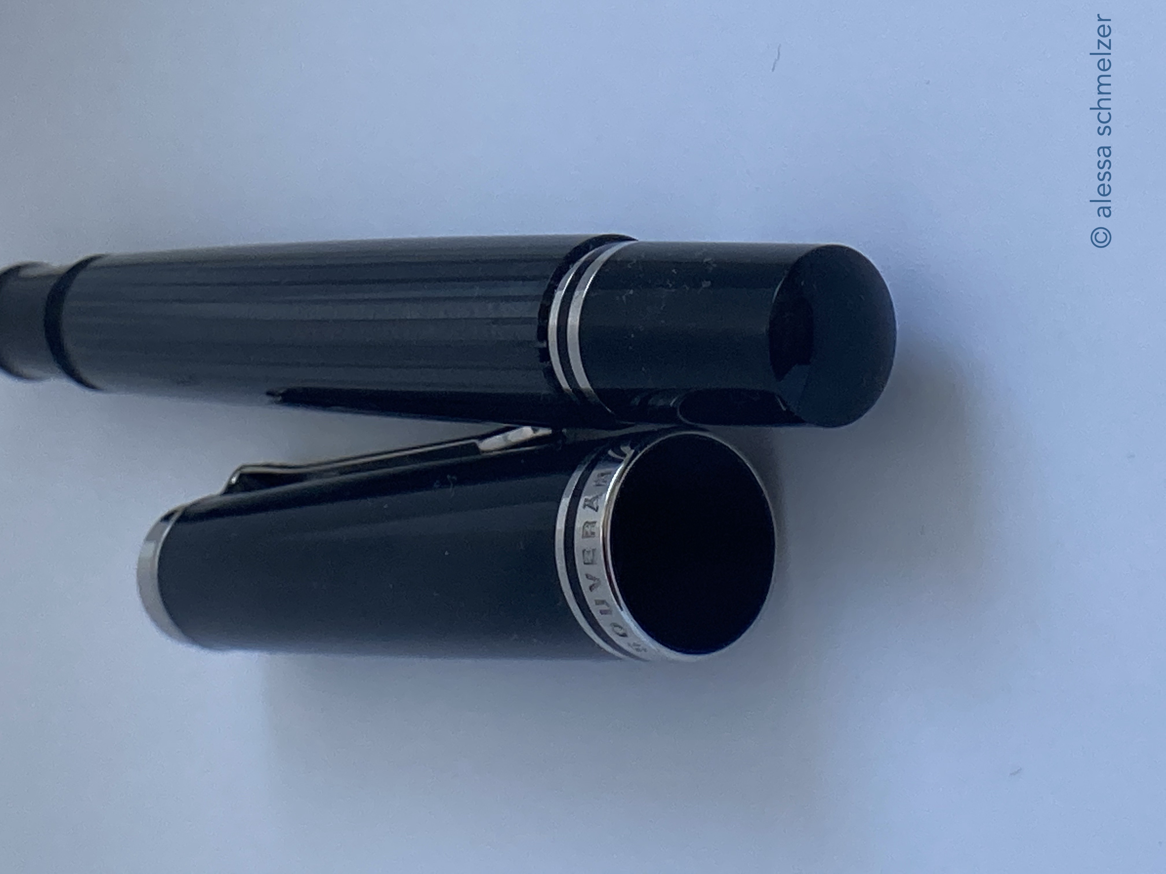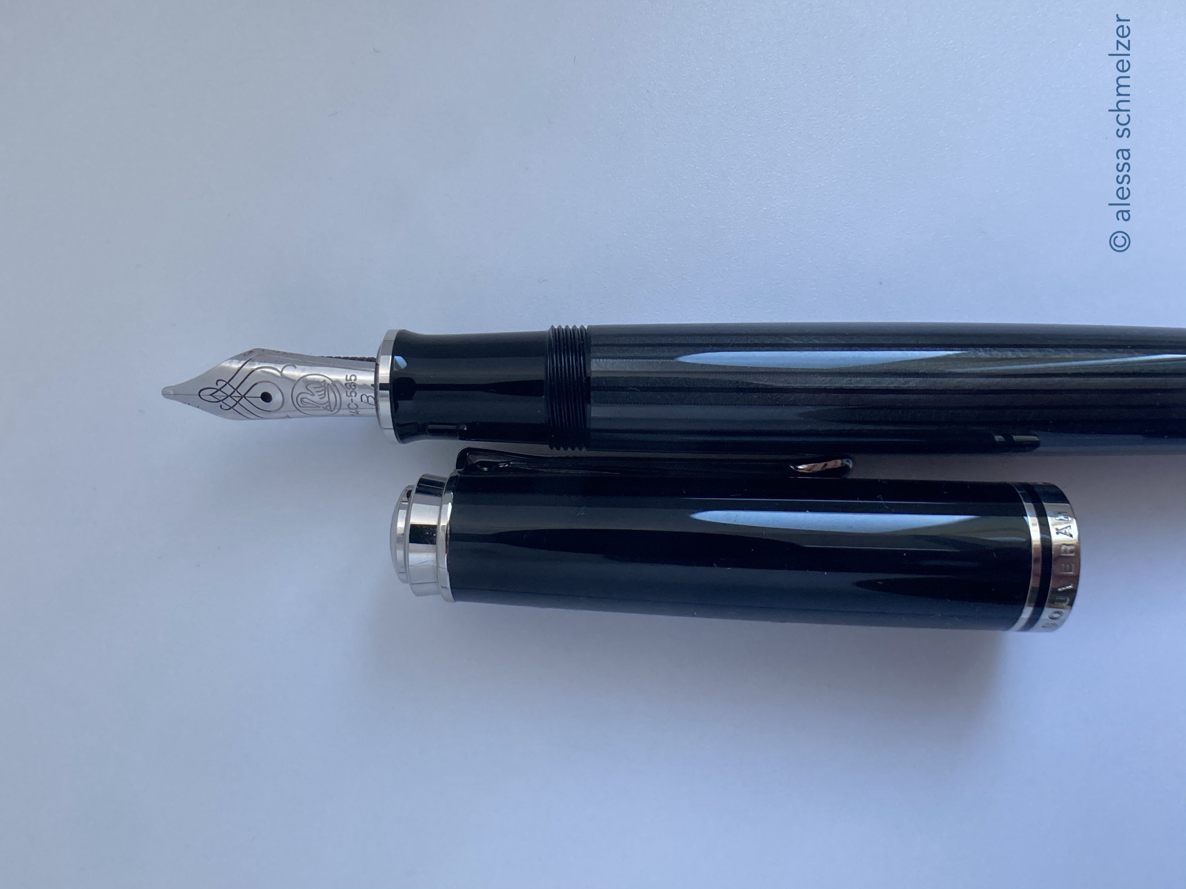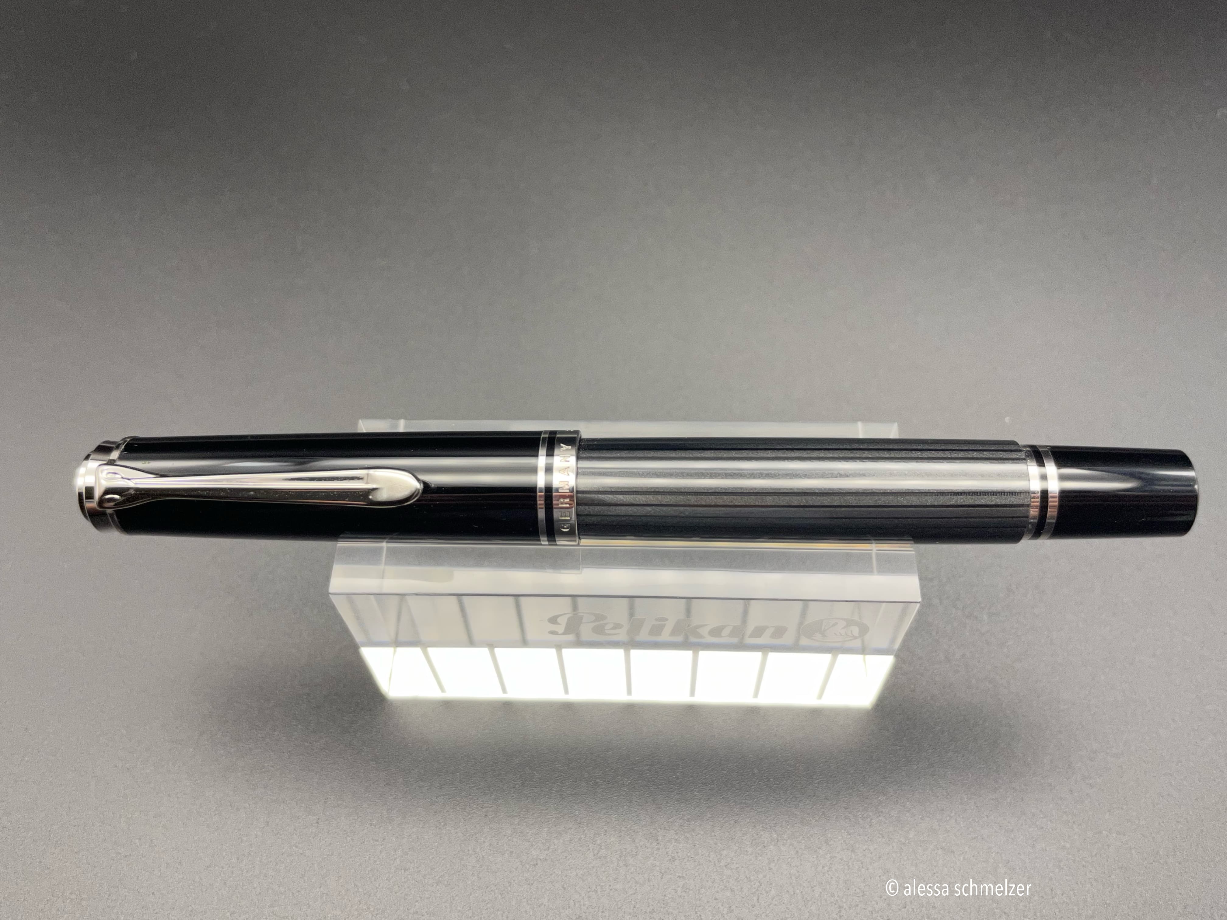 The use of the new model number M670 was introduced in 2024 for an M600 size Soverän with black anodized trims and nib. The model makes you think of the small M100 (old style) “Stormtrooper”.