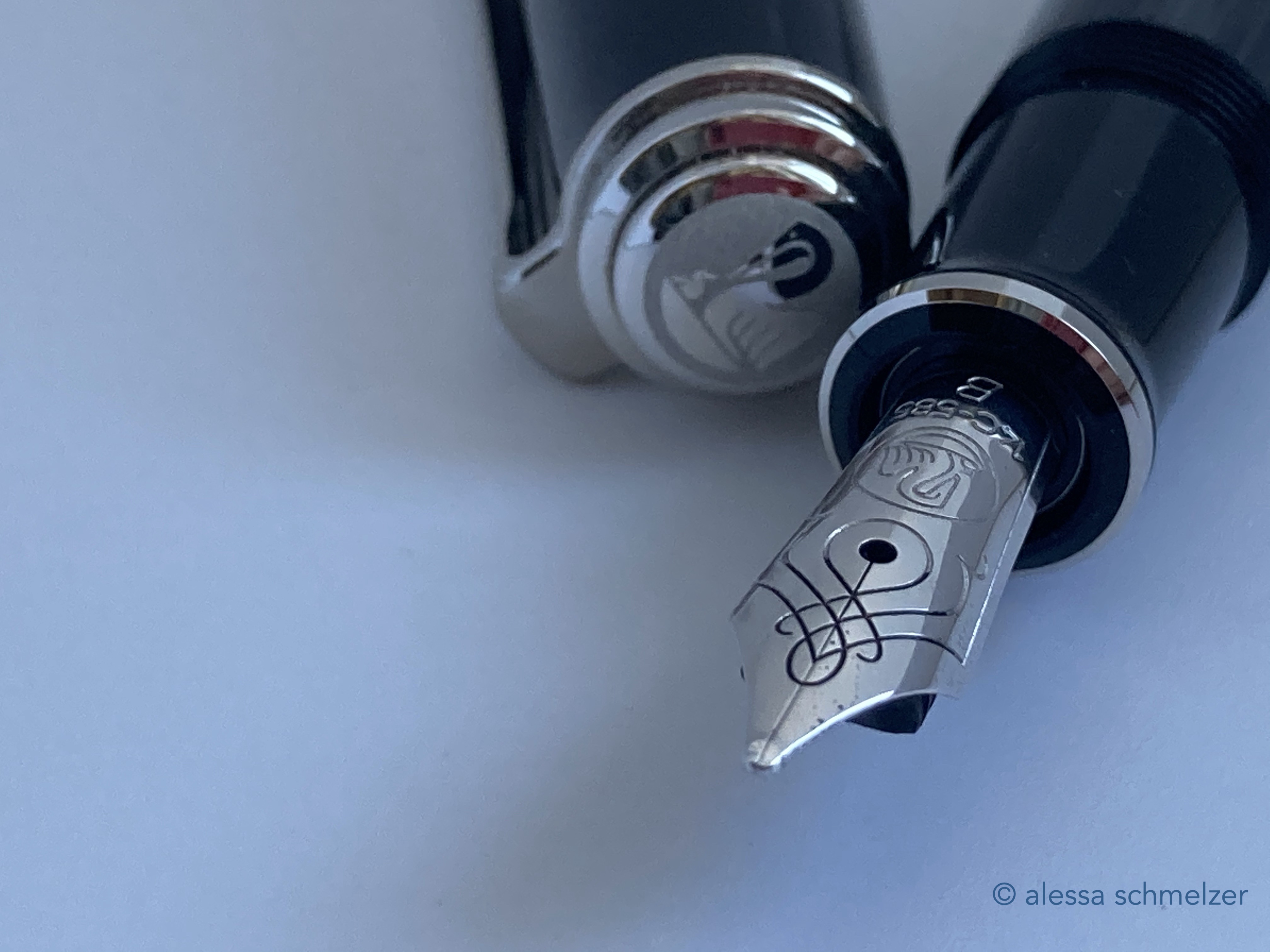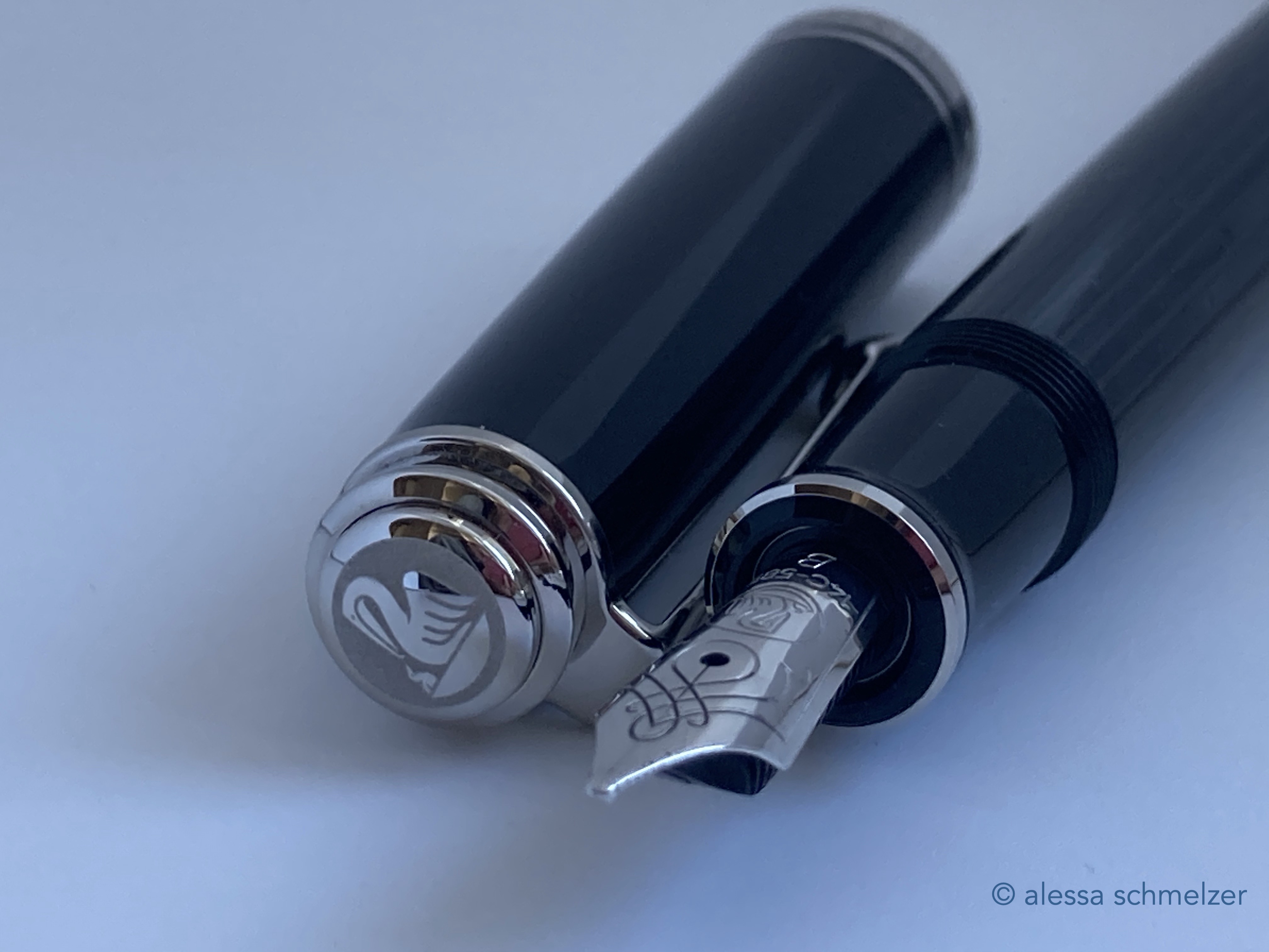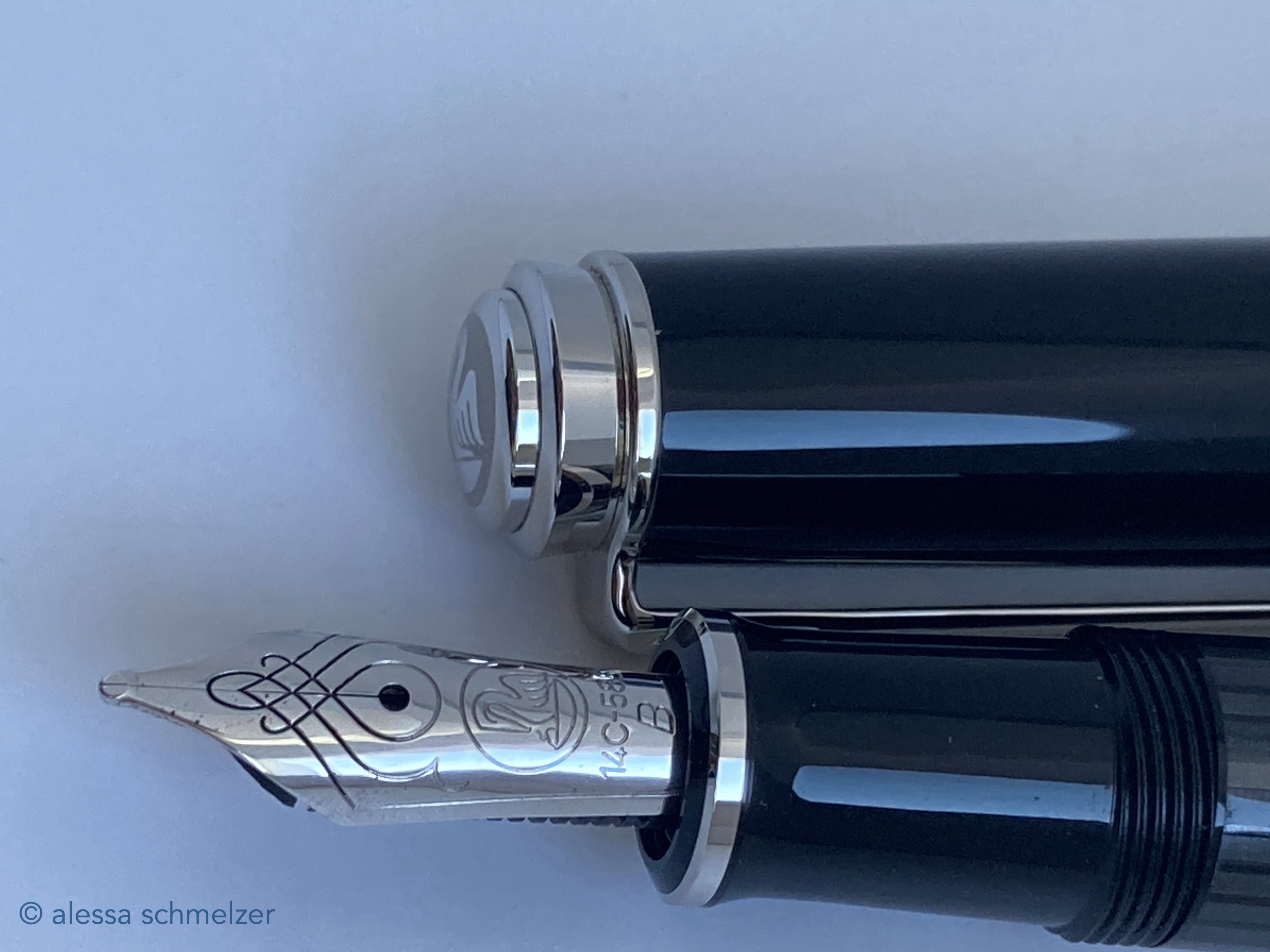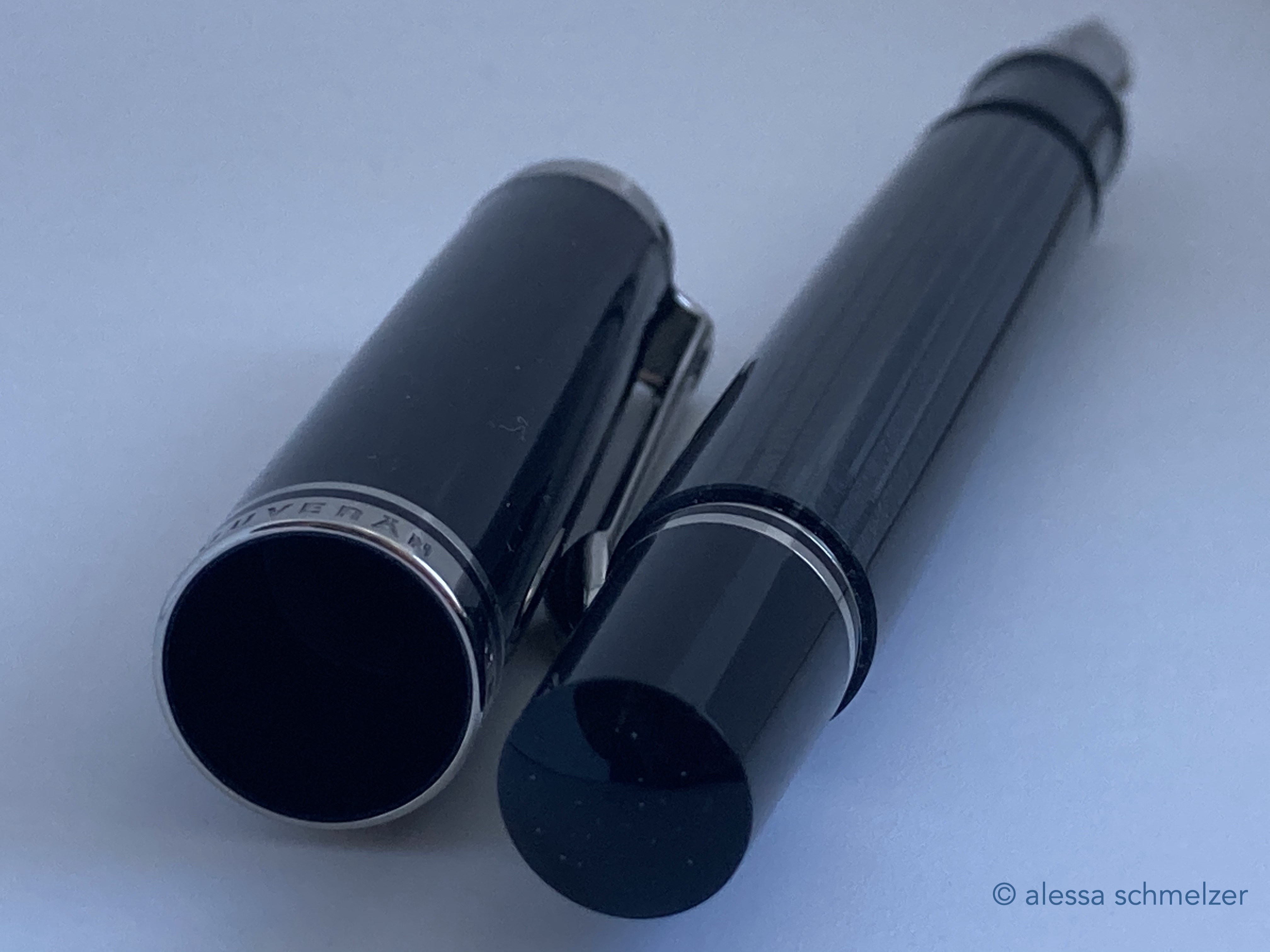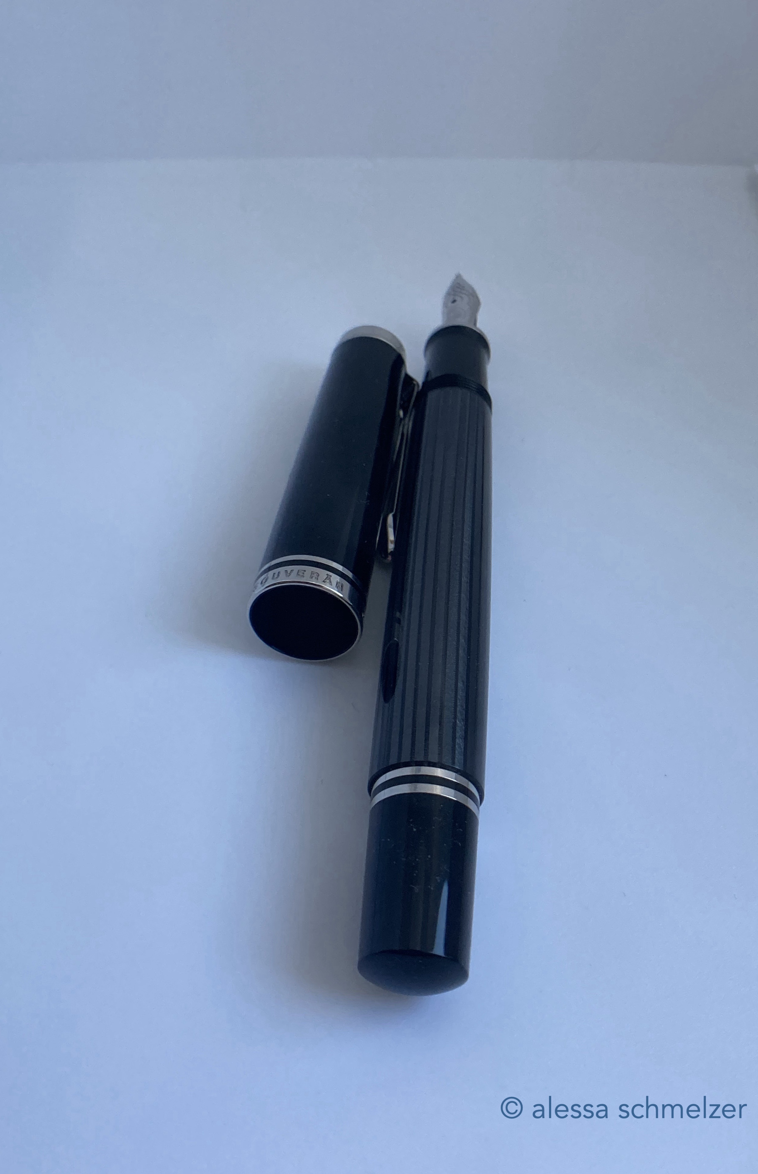 The use of the new model number M670 was introduced in 2024 for an M600 size Soverän with black anodized trims and nib. The model makes you think of the small M100 (old style) “Stormtrooper”.