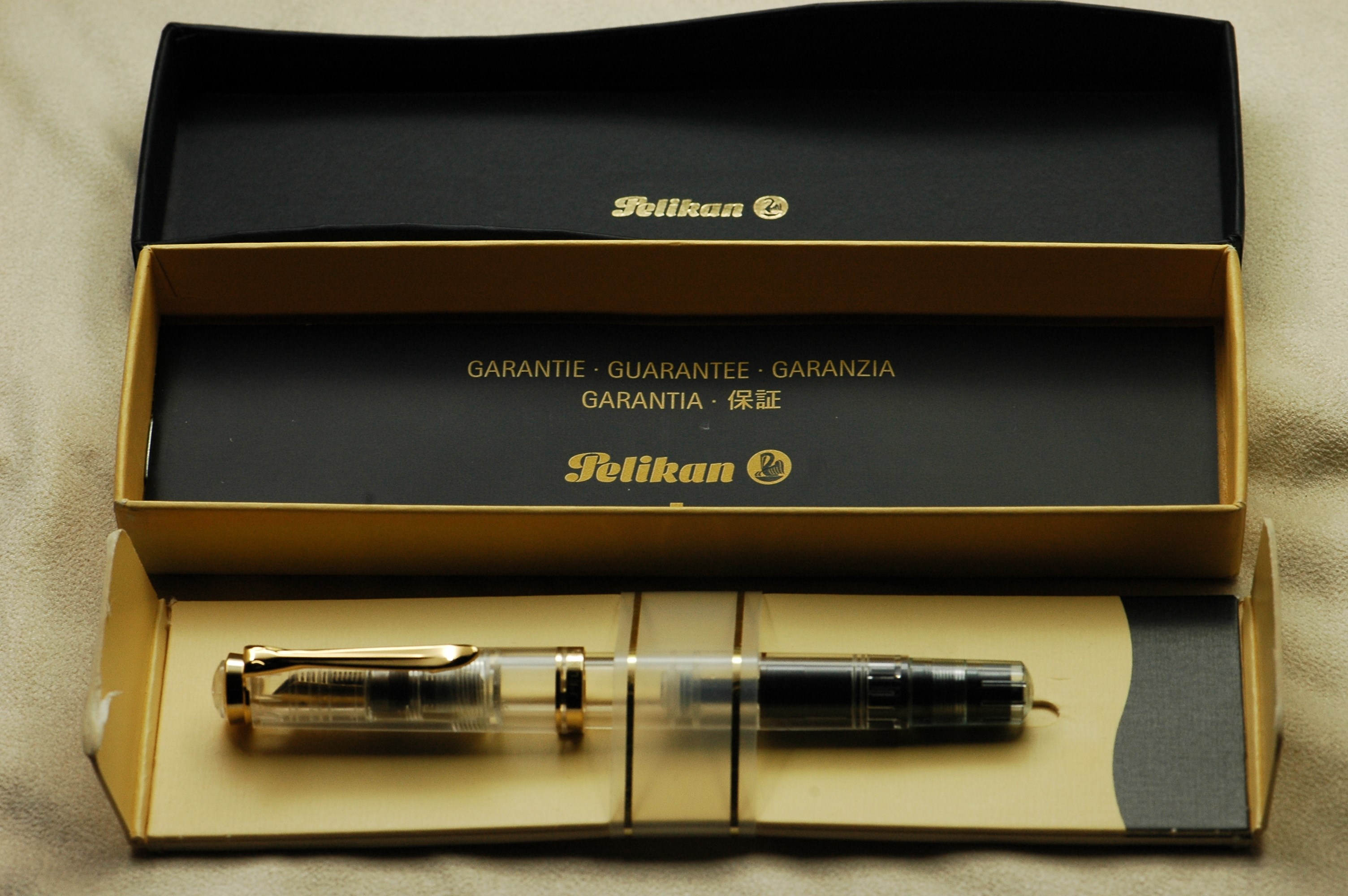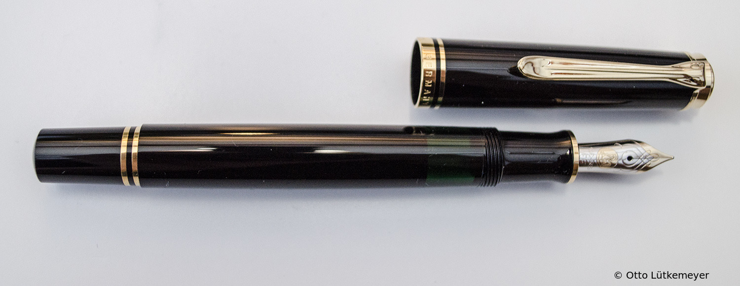 The M600 was made available in 1985 as a luxury version of the new M400 with an 18 ct gold nib and additional trim ring on the filling knob. From 1986 to September 1997 the M600 - in size of the M400 - was added to the standard offering. Only the models M600 from 9/1997 were dimensioned larger.