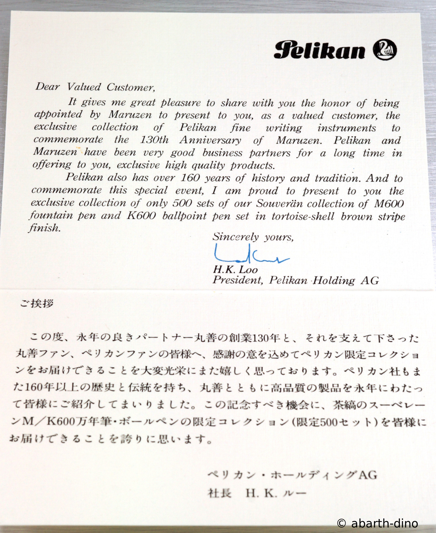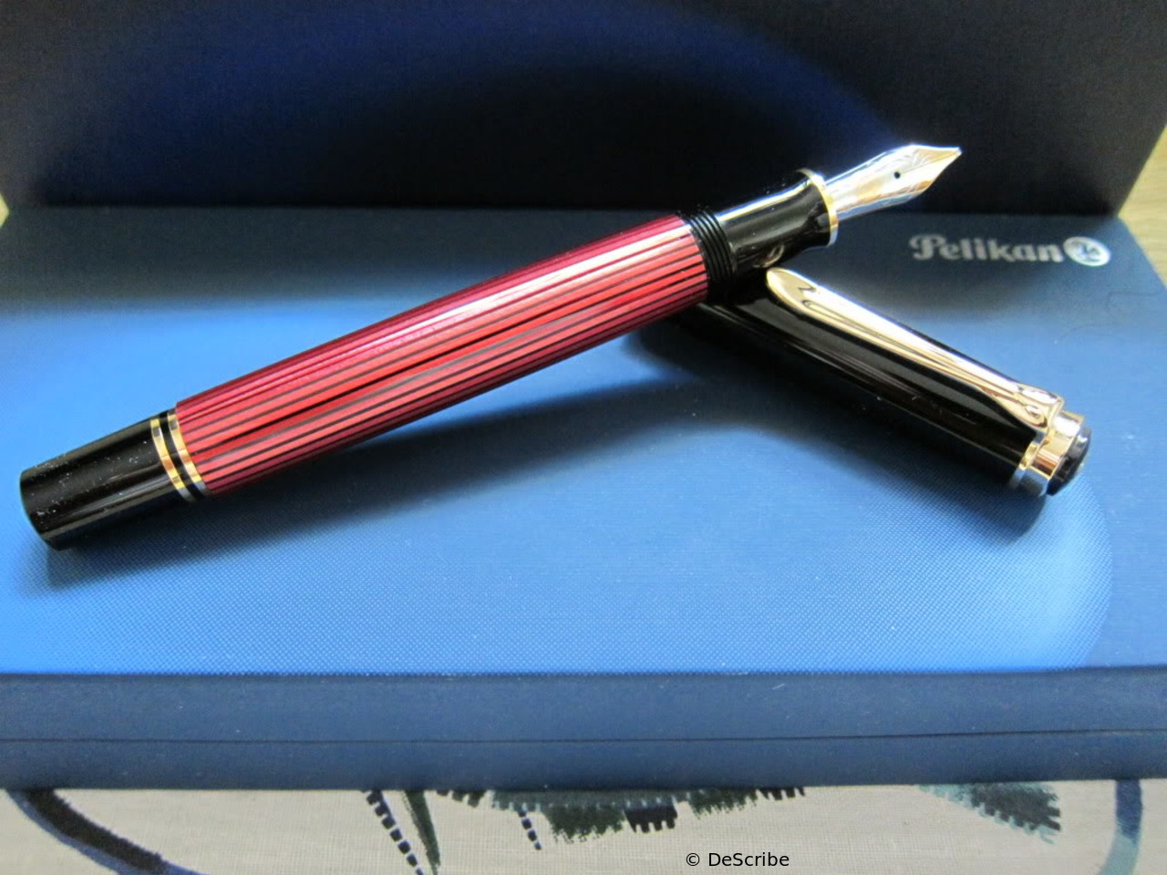 Originally produced as an export model, sold by Levenger with a little blue porcelain Pelican. Later also available in Germany at Galeria Kaufhof.