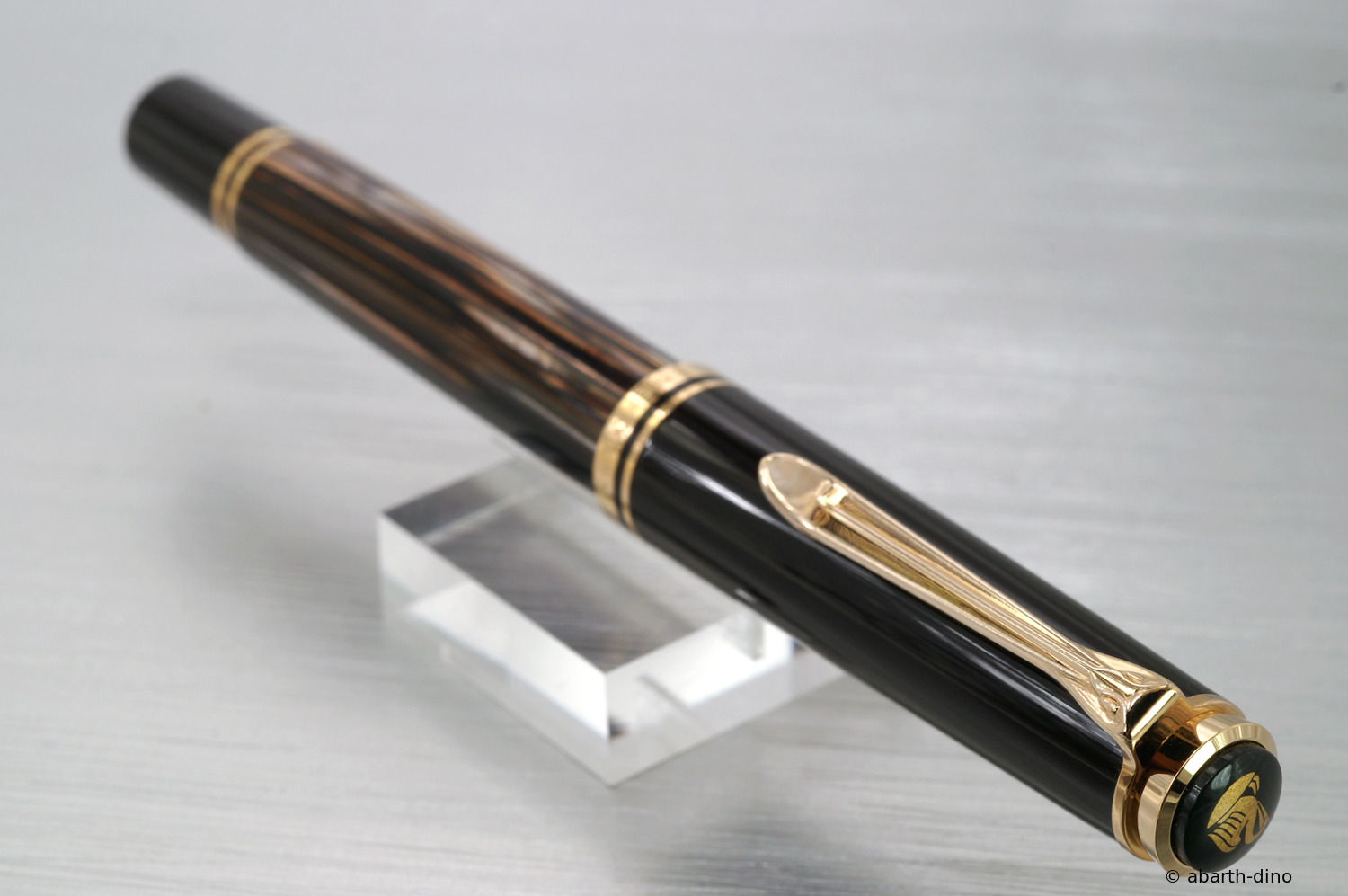 Pelikan introduces a new series, the Art Collection. This series is inspired by the artistically designed advertising posters of the previous century. To start with, the Glauco Cambon is released, the fountain pen is based on the M600 model. For the design of the barrel, an engraved and painted brass barrel is used, which is protected several times with clear varnish.