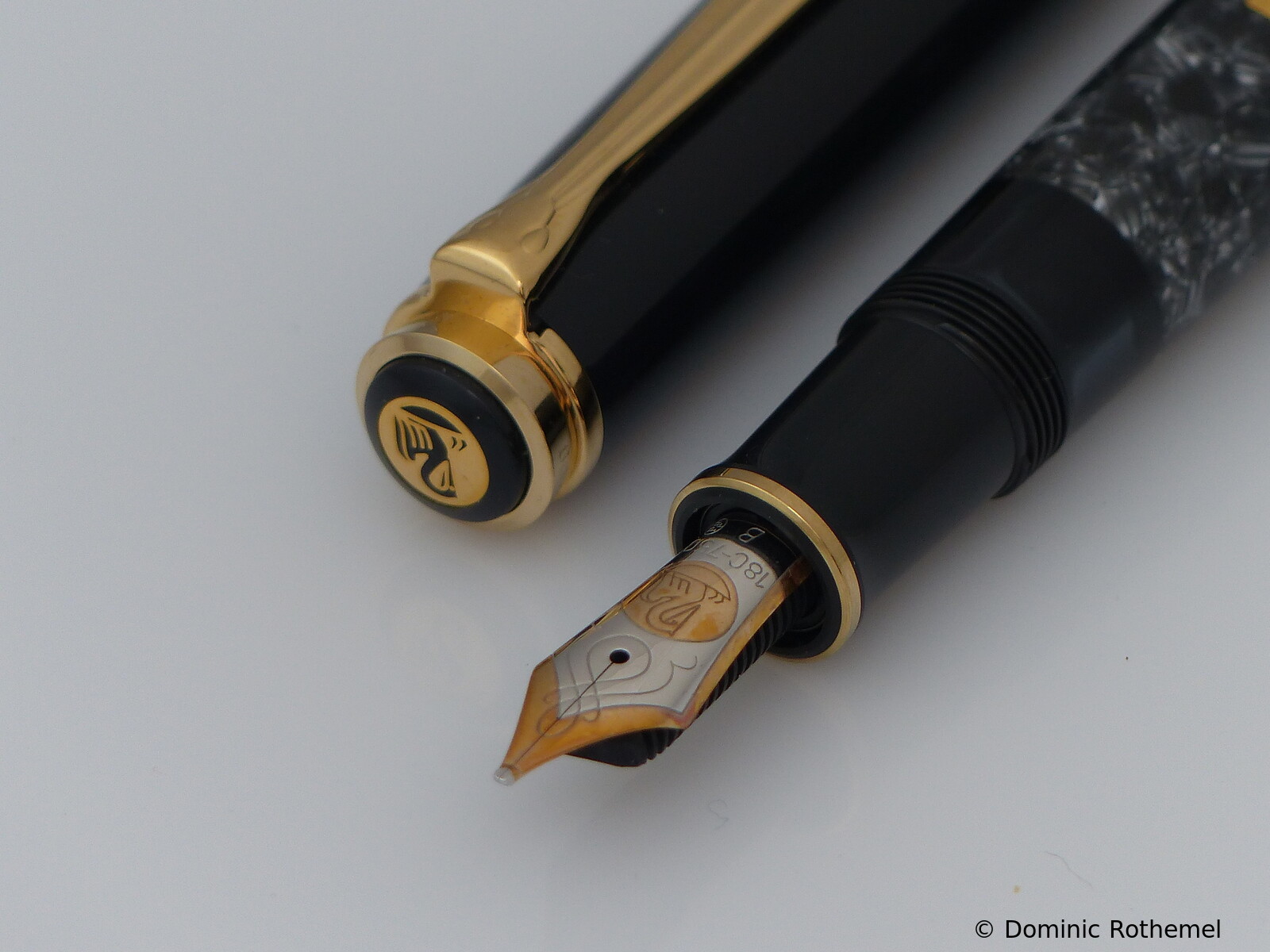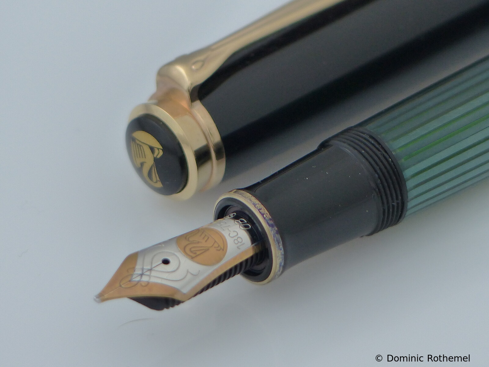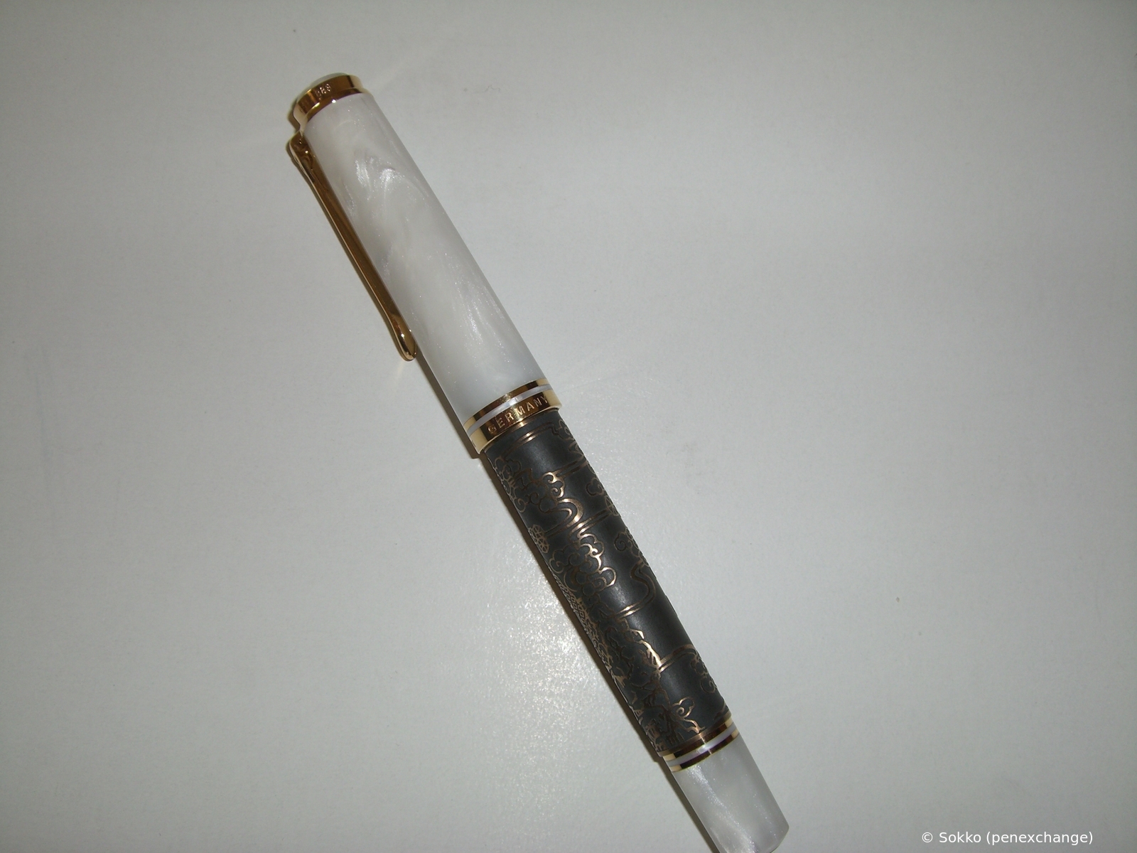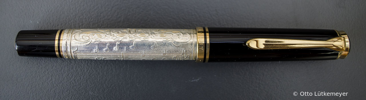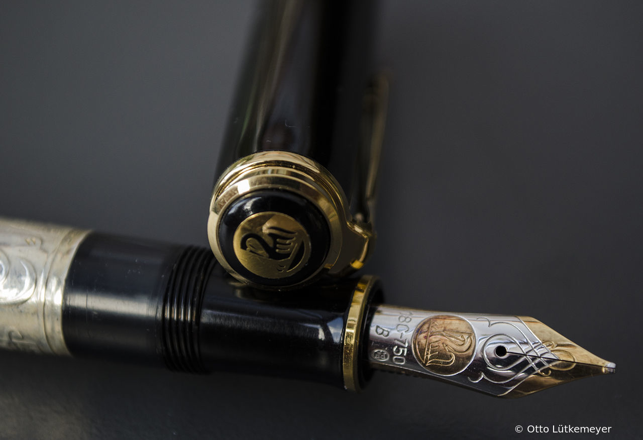 Modified version based on the M800 in dark green transparent. Supplied with a second nib to change (in the sizes M + B). Also, the nib is modified. The production by Pelikan is not apparent. Logo displays the C from Chronoswiss.