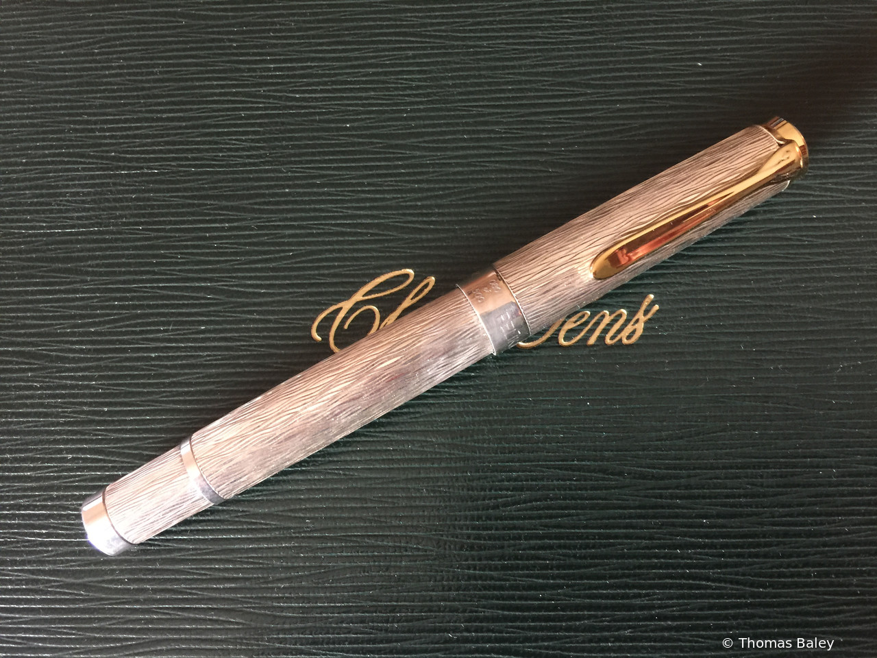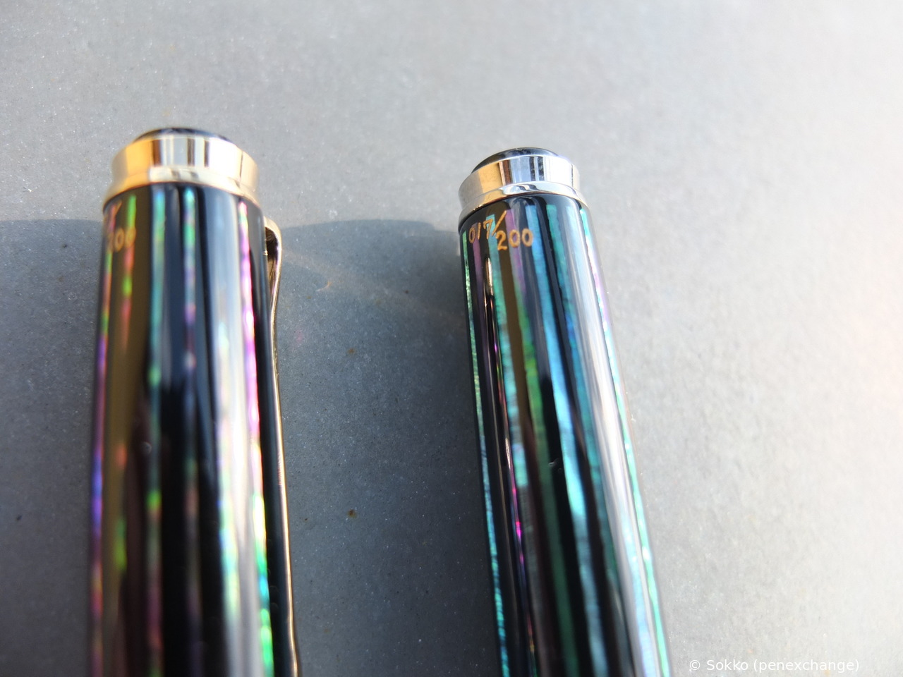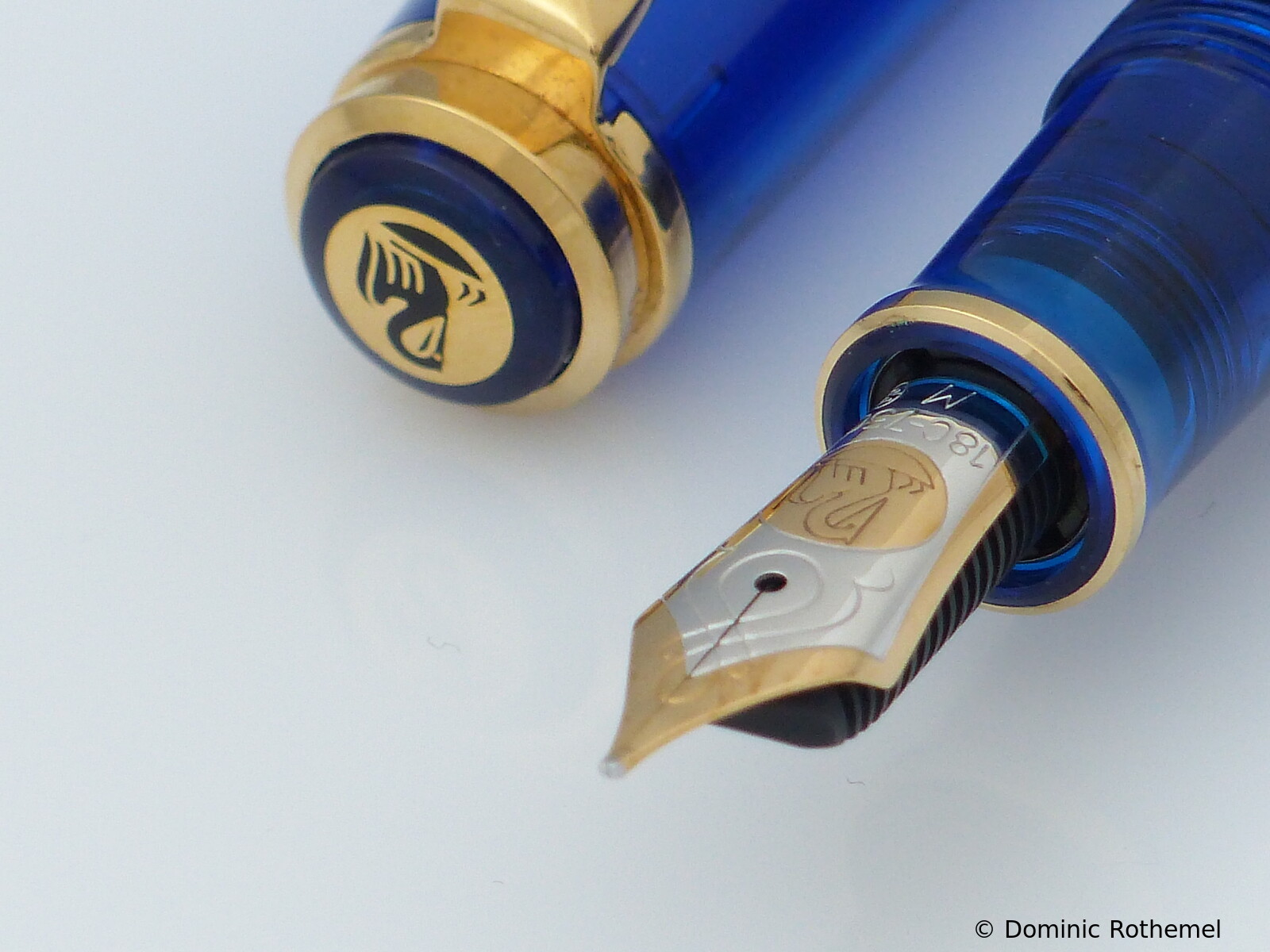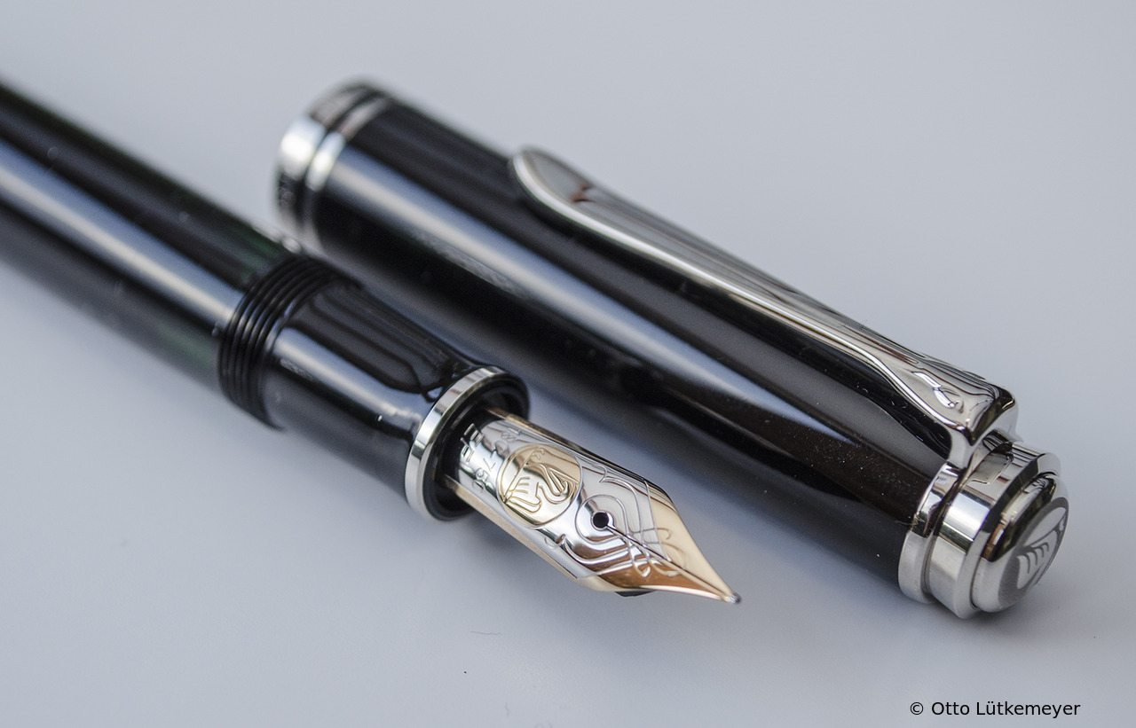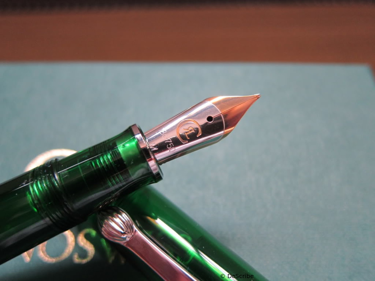 Modified version based on the M800 in dark green transparent. Supplied with a second nib to change (in the sizes M + B). Also, the nib is modified. The production by Pelikan is not apparent. Logo displays the C from Chronoswiss.