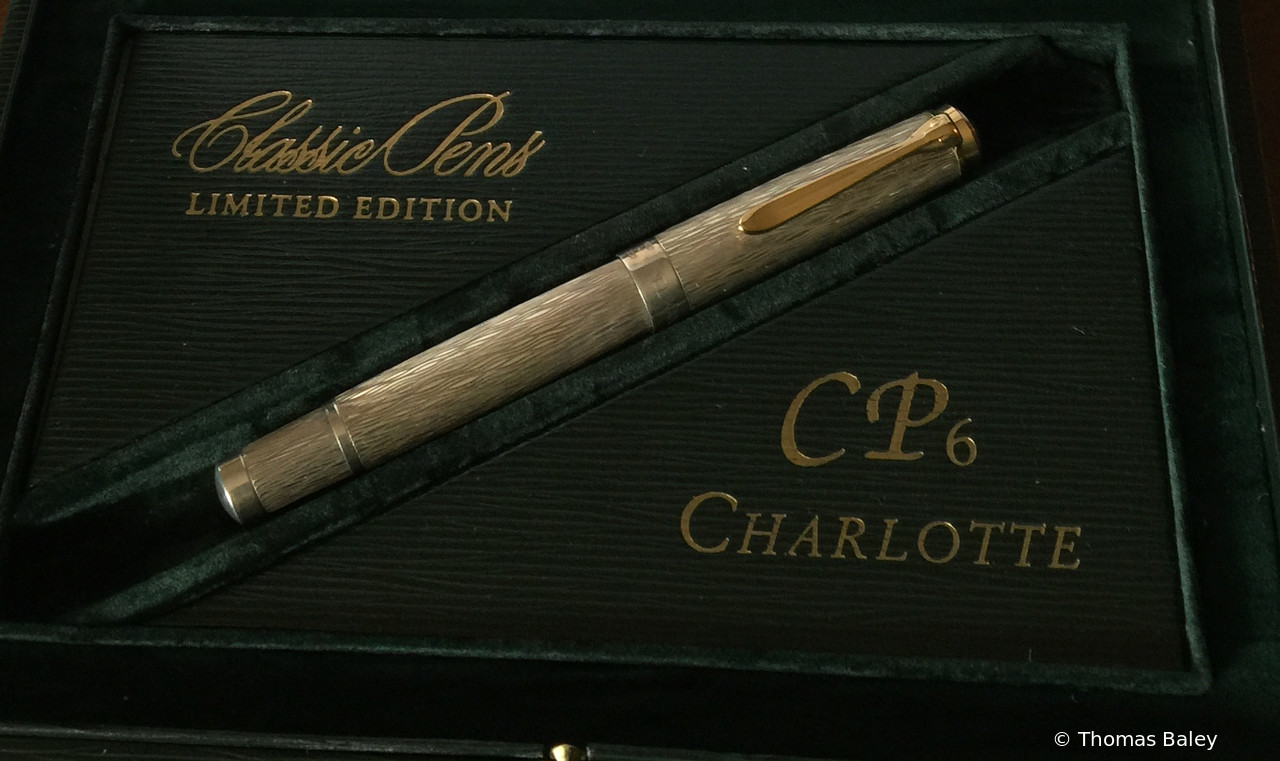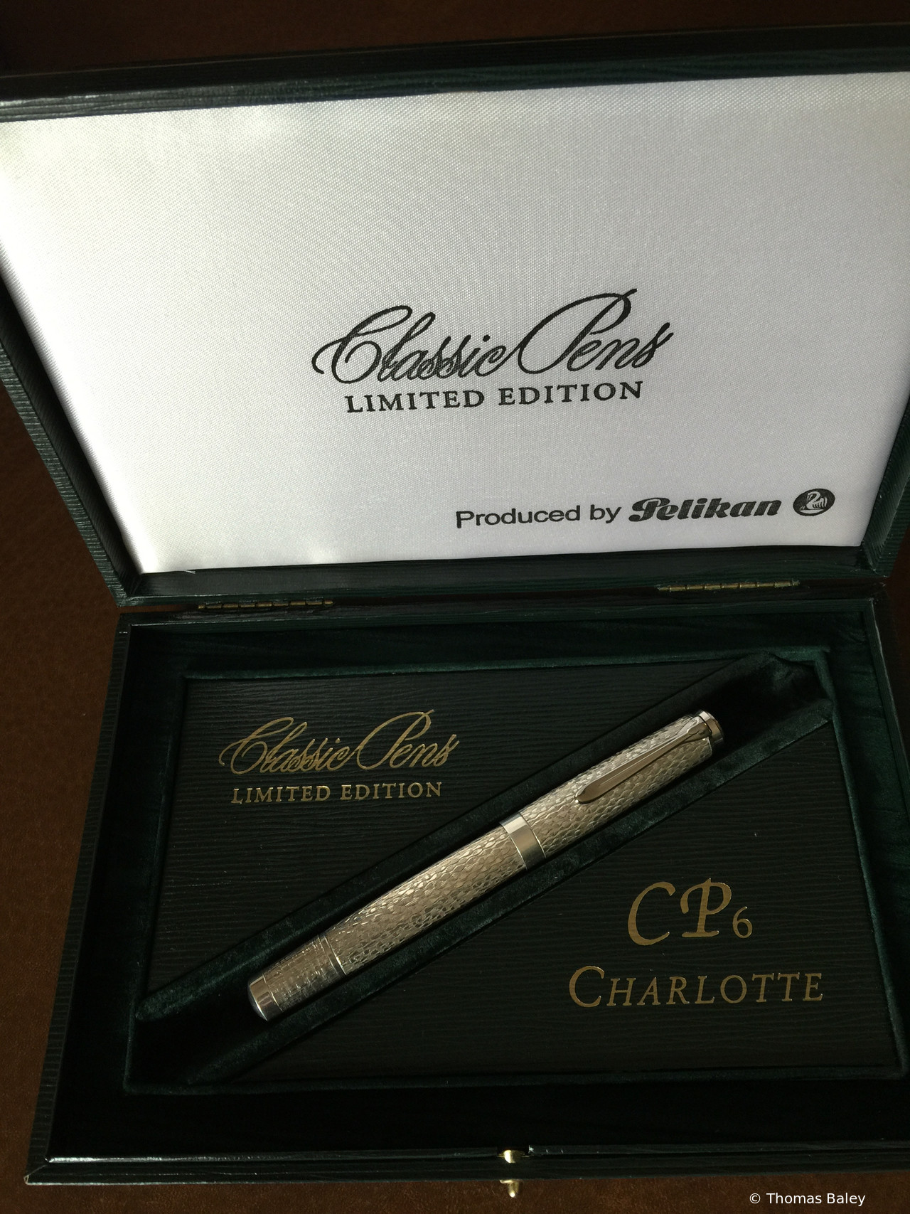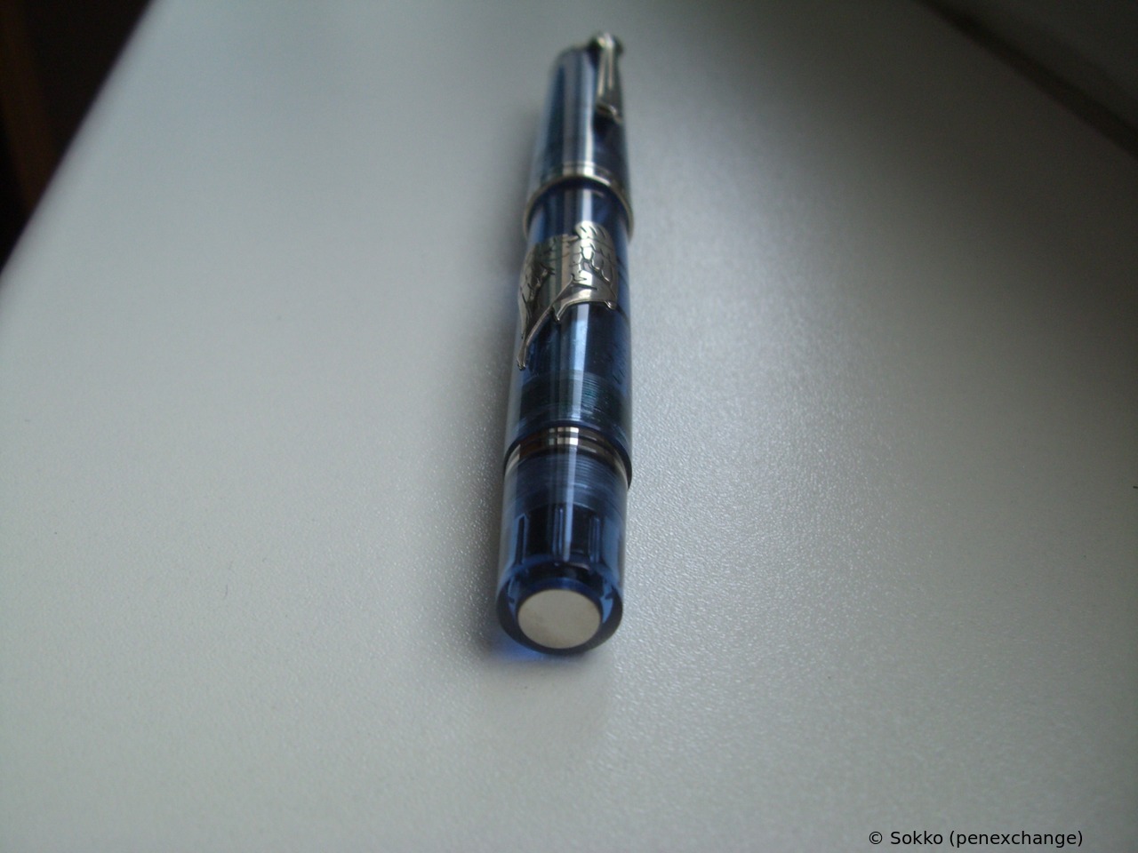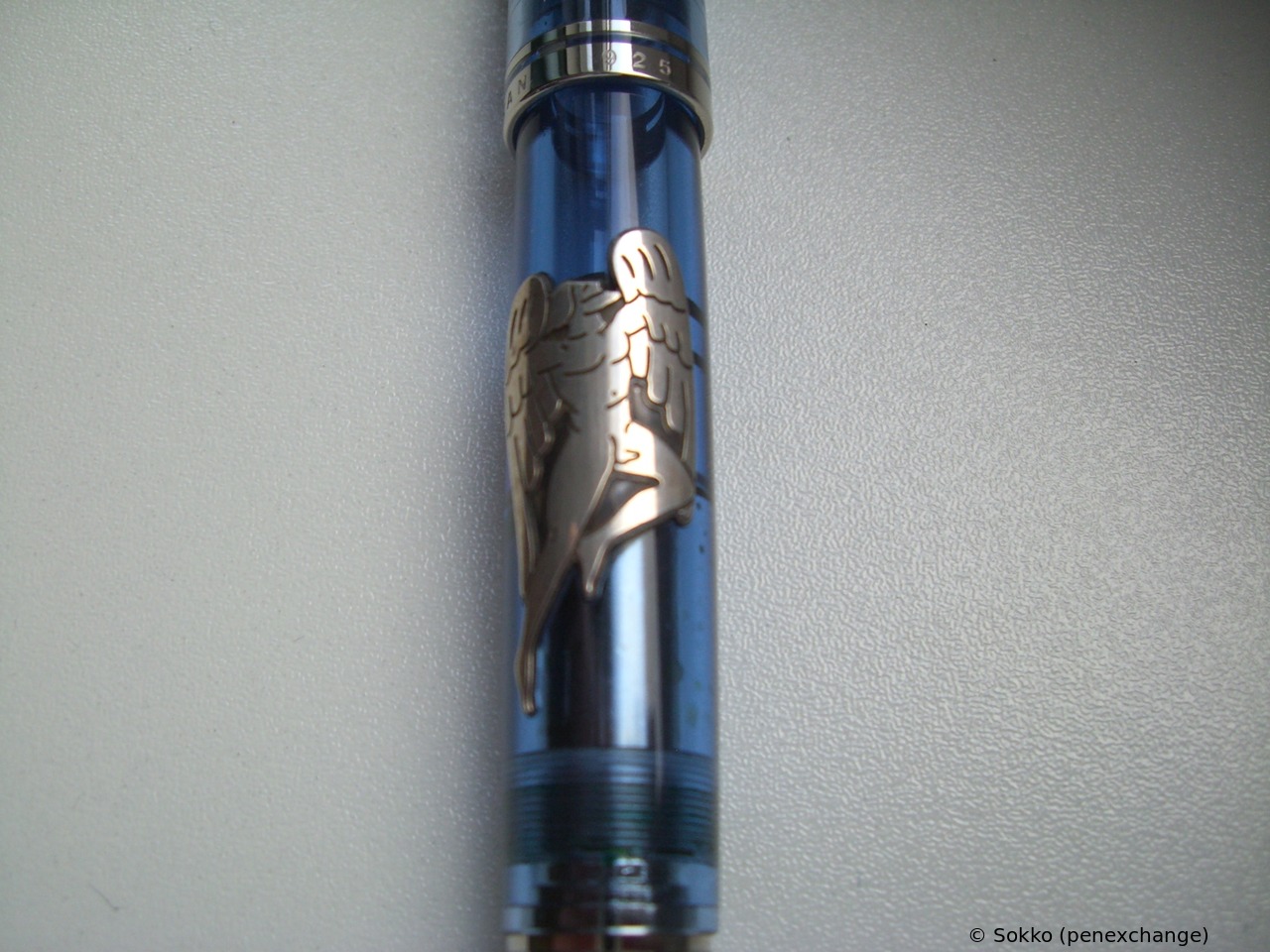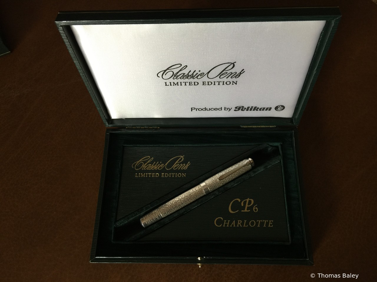 Modified version based on the M800 in dark green transparent. Supplied with a second nib to change (in the sizes M + B). Also, the nib is modified. The production by Pelikan is not apparent. Logo displays the C from Chronoswiss.