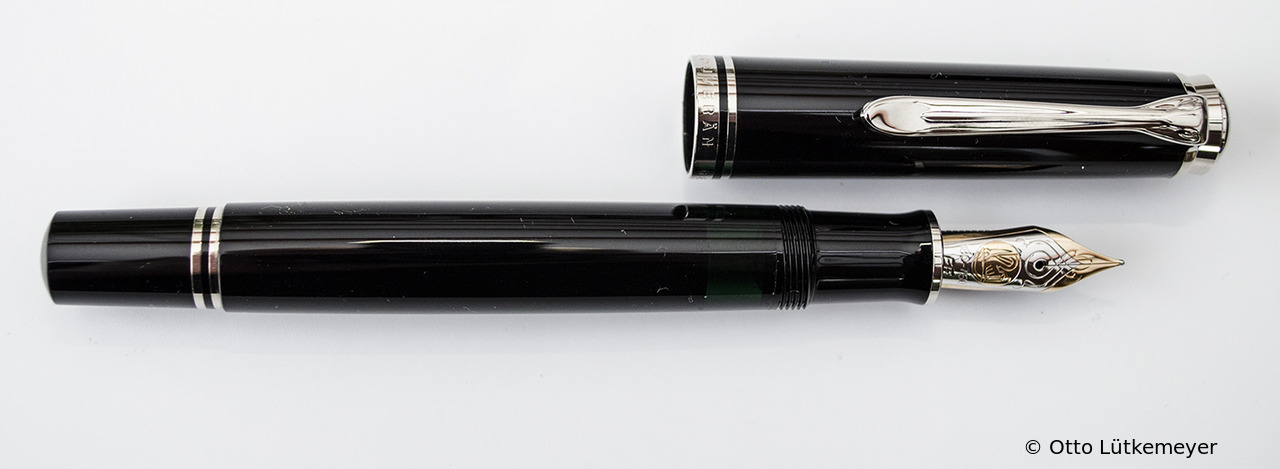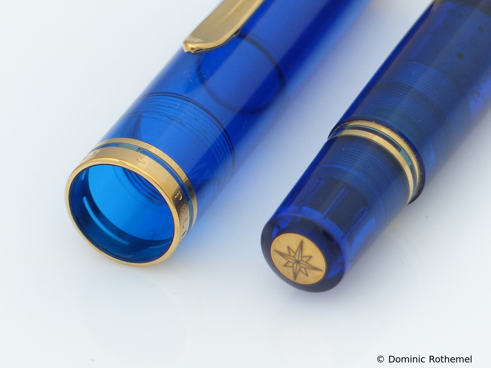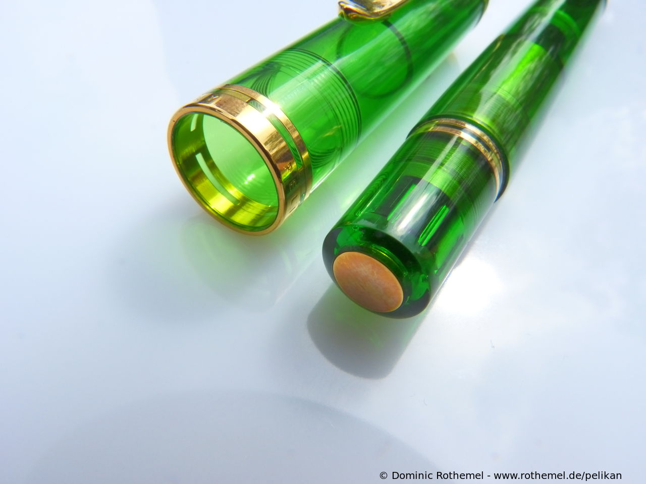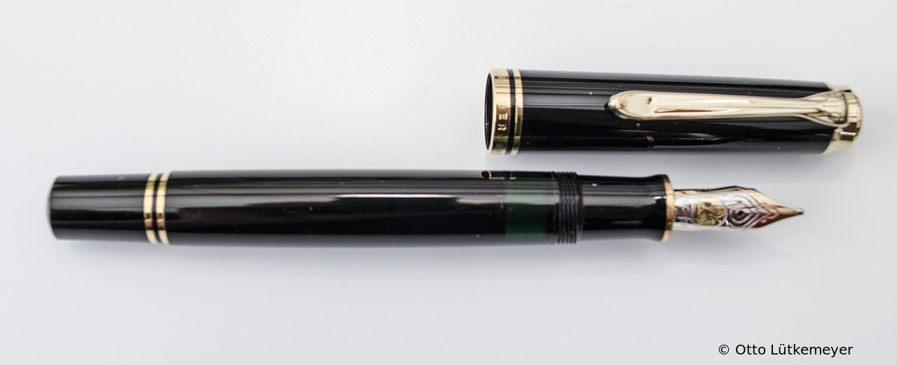 It was always easy to check the ink level in high-quality Pelikan piston fountain pens. Either there were ink windows in the body, or the material was translucent or transparent (demonstrator). Exceptions were a few Special Editions.