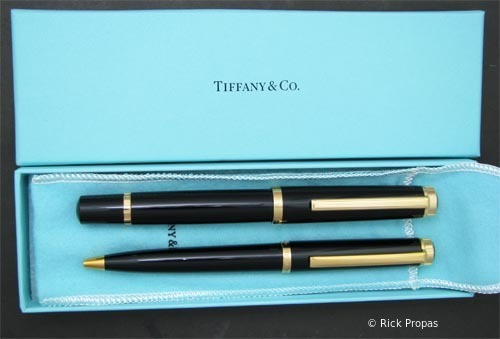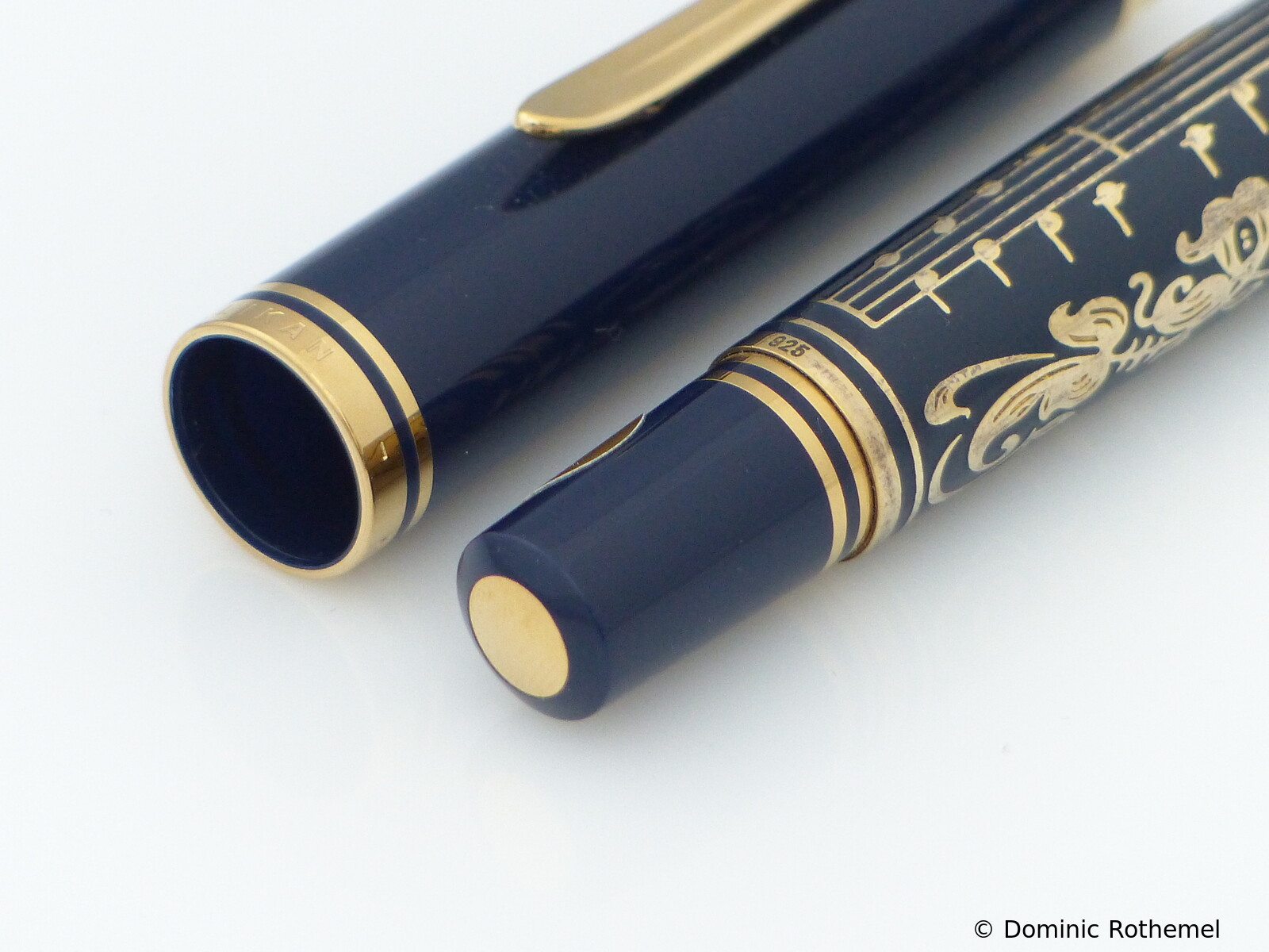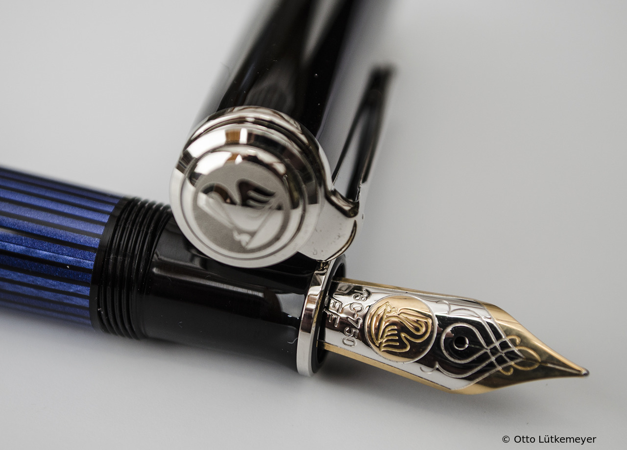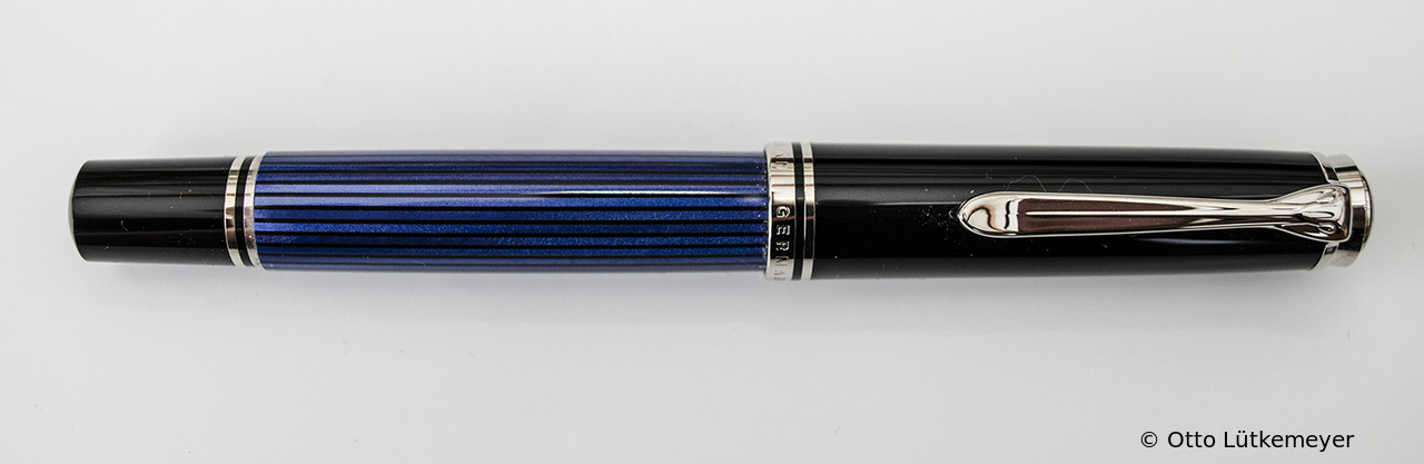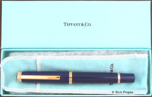 A series of writing instruments was manufactured by Pelikan for Tiffany & Co in 1990. In addition to the fountain pen, there were also rollerball pens, ballpoint pens and pencils. The Atlas series is based on the Pelikan M800 in black and cobalt blue. Adjustments were made to the decorative rings, the clip, the cap logo and the nib.