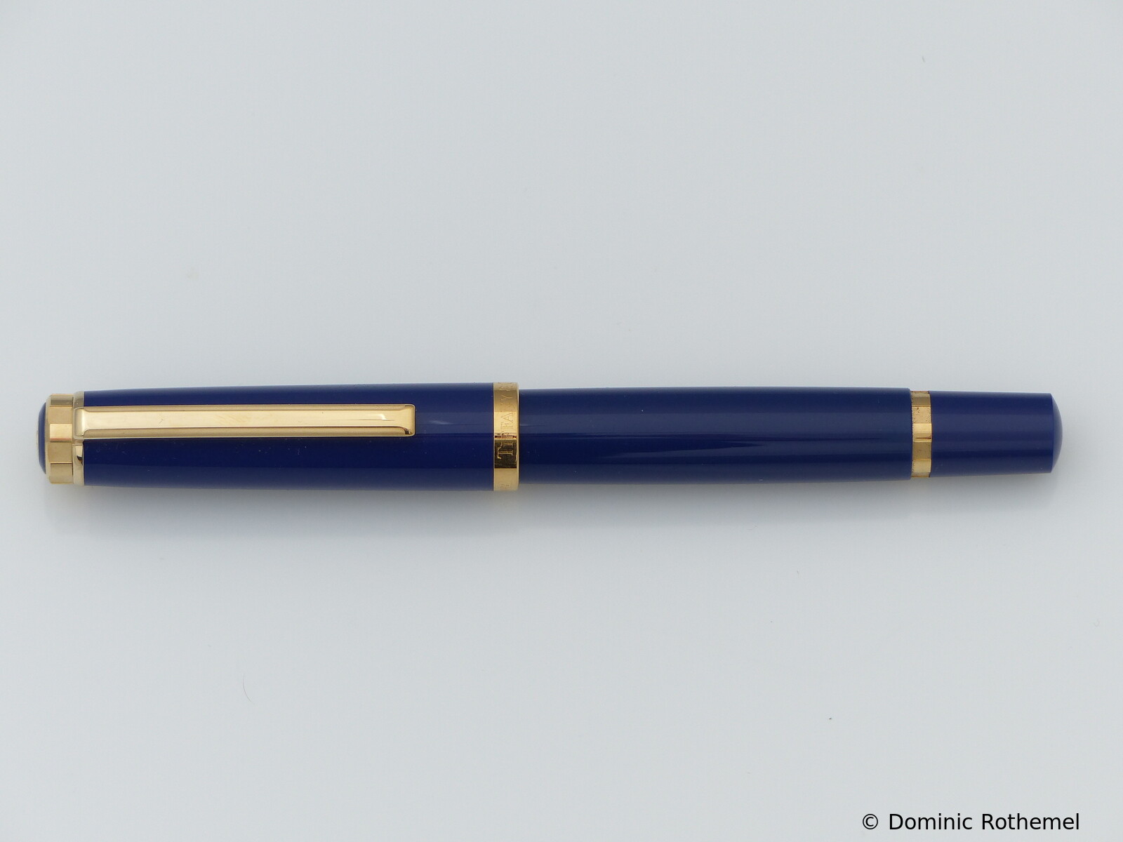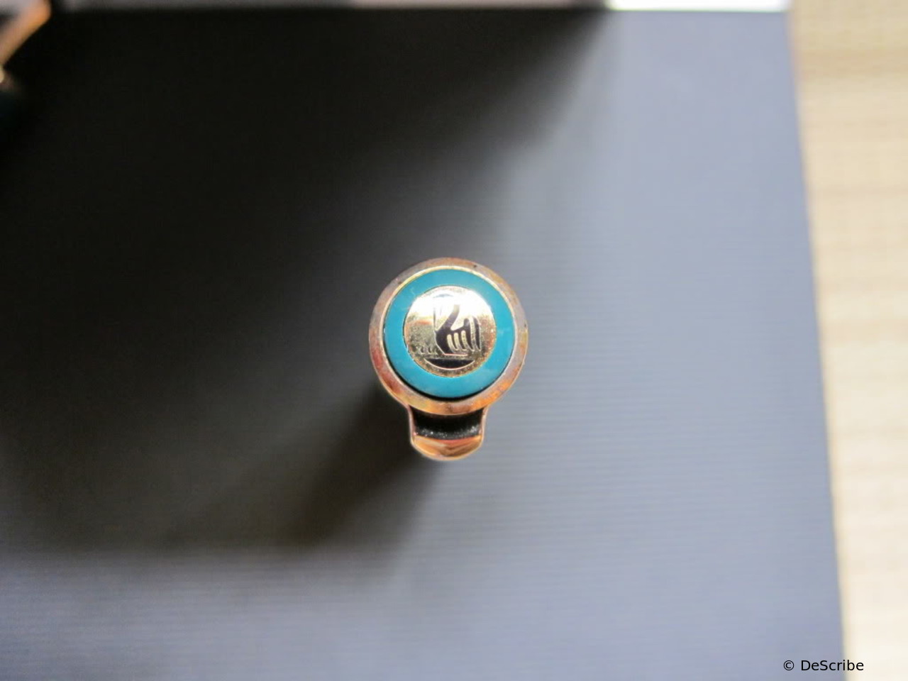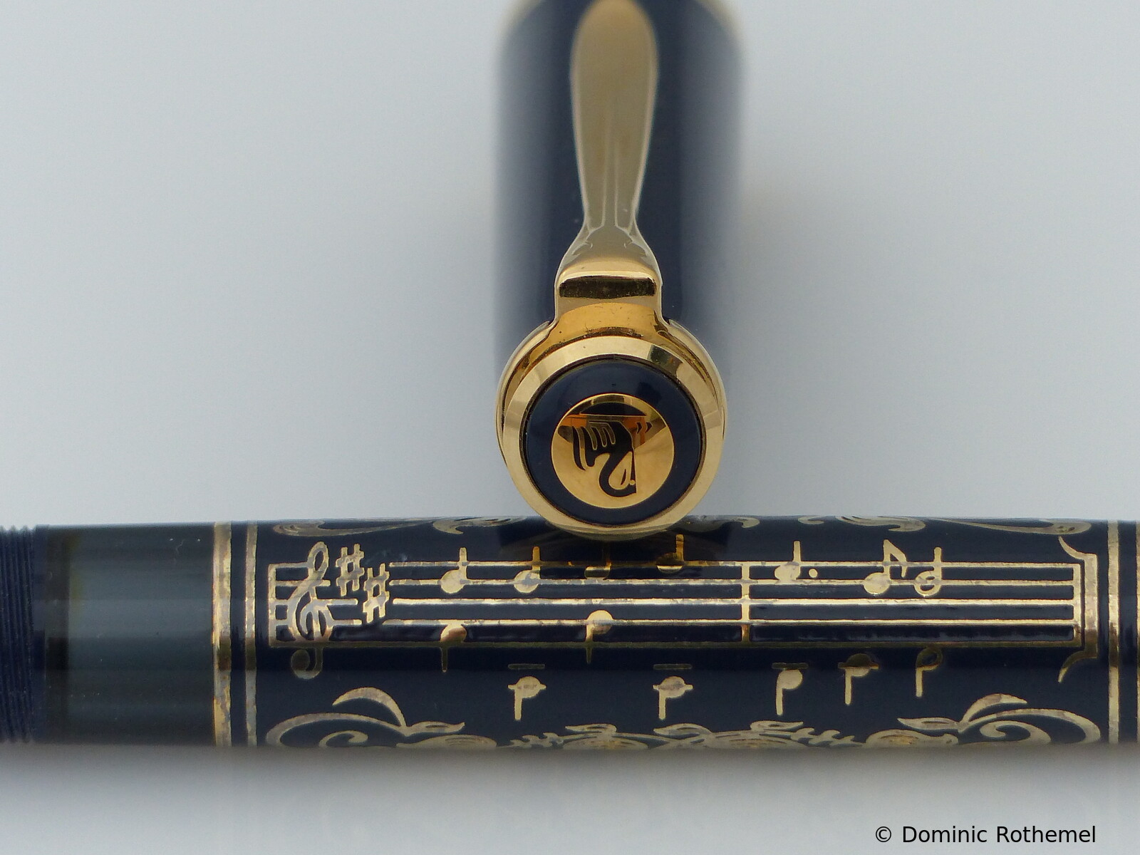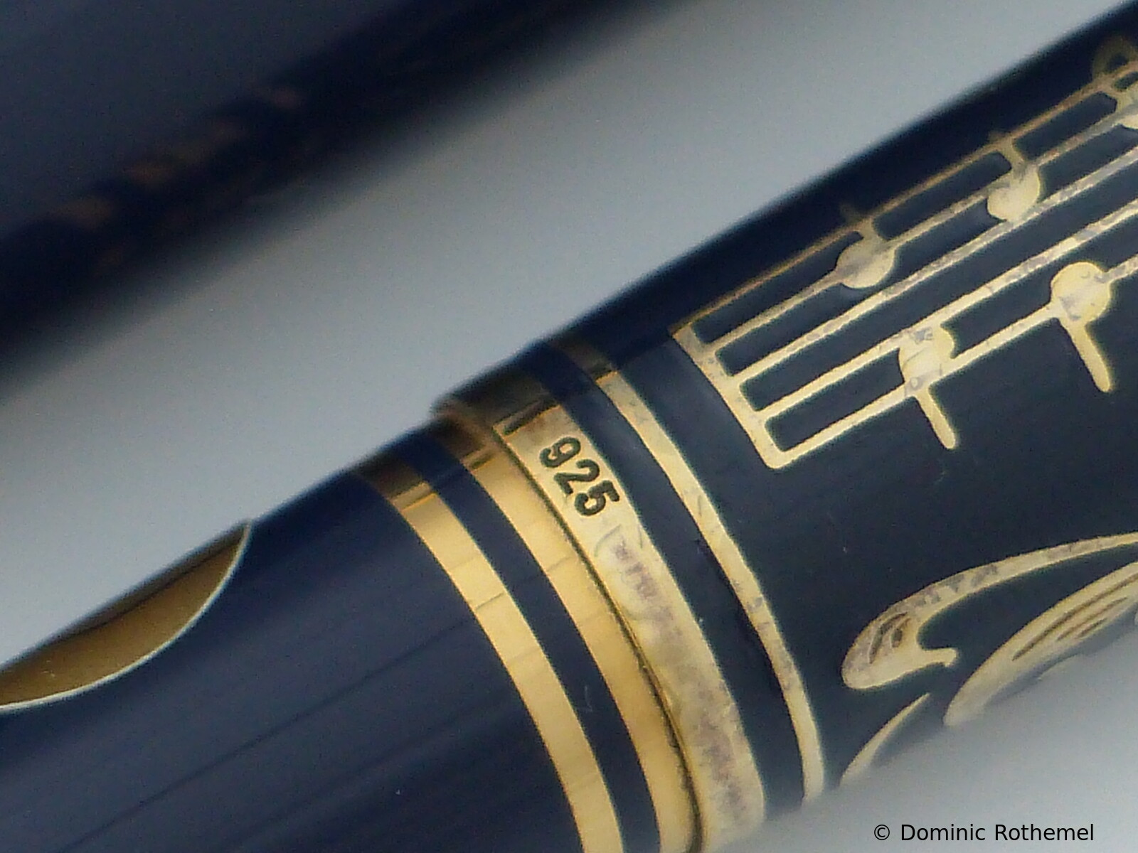 Blue resin barrel, vermeil barrel band engraved with the opening bars of Beethoven's "Ode to Joy".