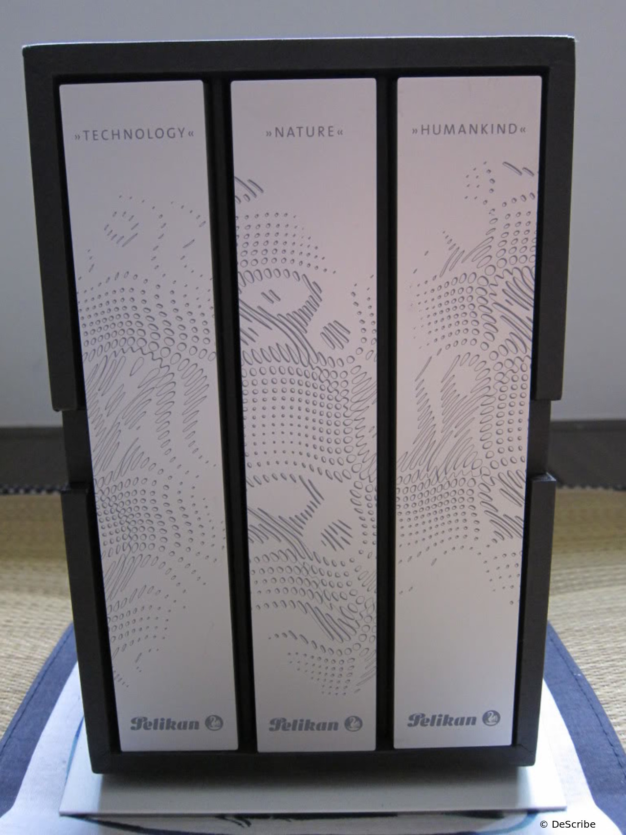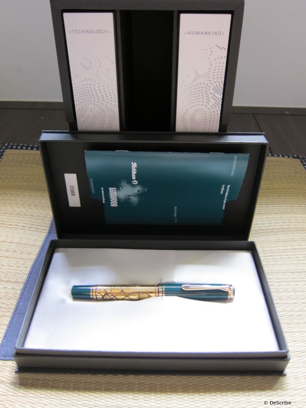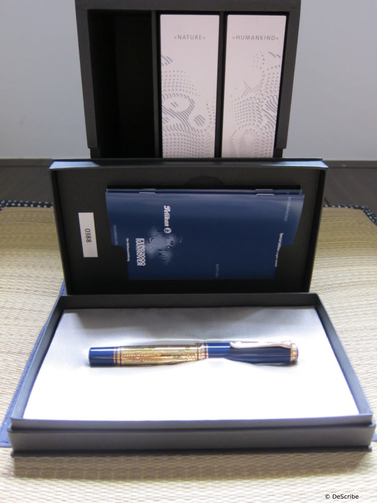 Pelikan designed a special edition series of fountain pens for Expo 2000, as an exclusive partner. The limited edition began in 1998 with the 'human' themed fountain pen, joined in 1999 by the 'nature' themed pen and finally 'technology' in 2000. Each edition was issued in the same number of pieces as the year (1998, 1999 and 2000 pens respectively). Each pen has its unique edition number.