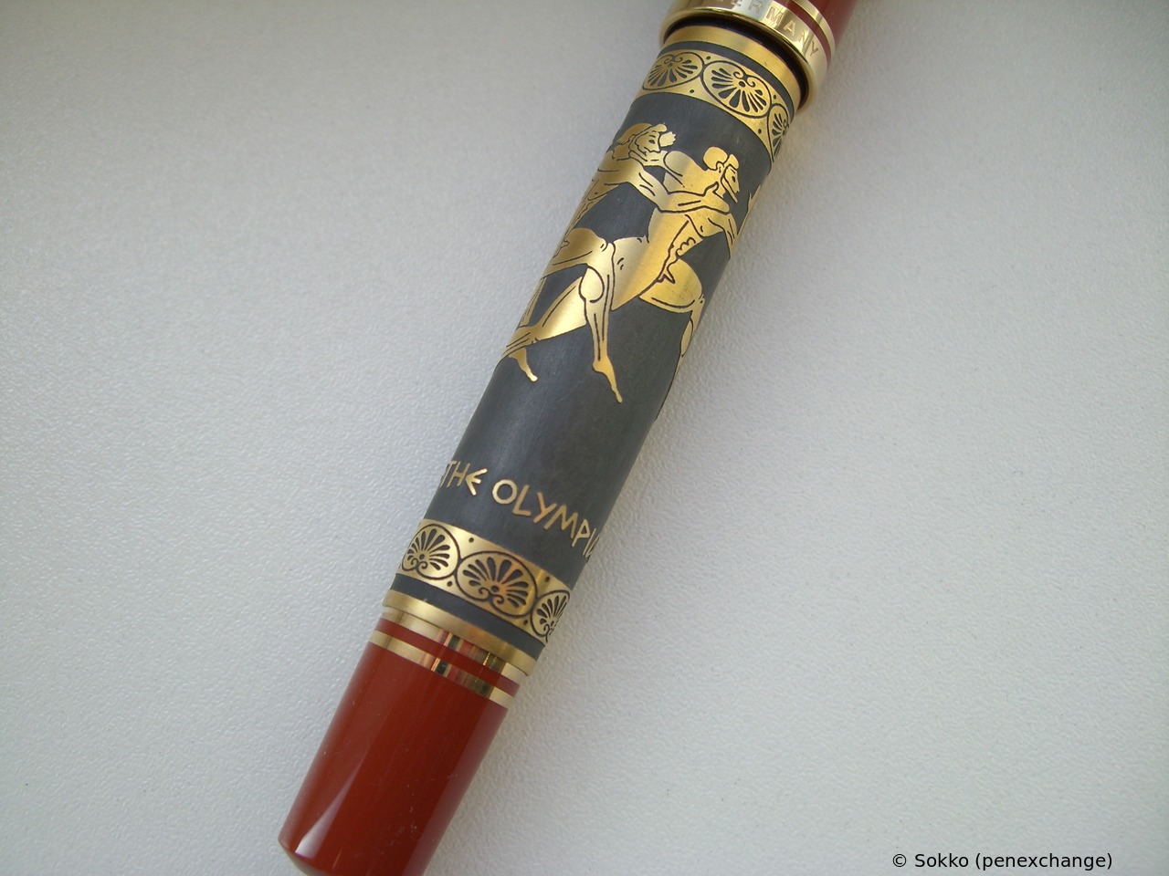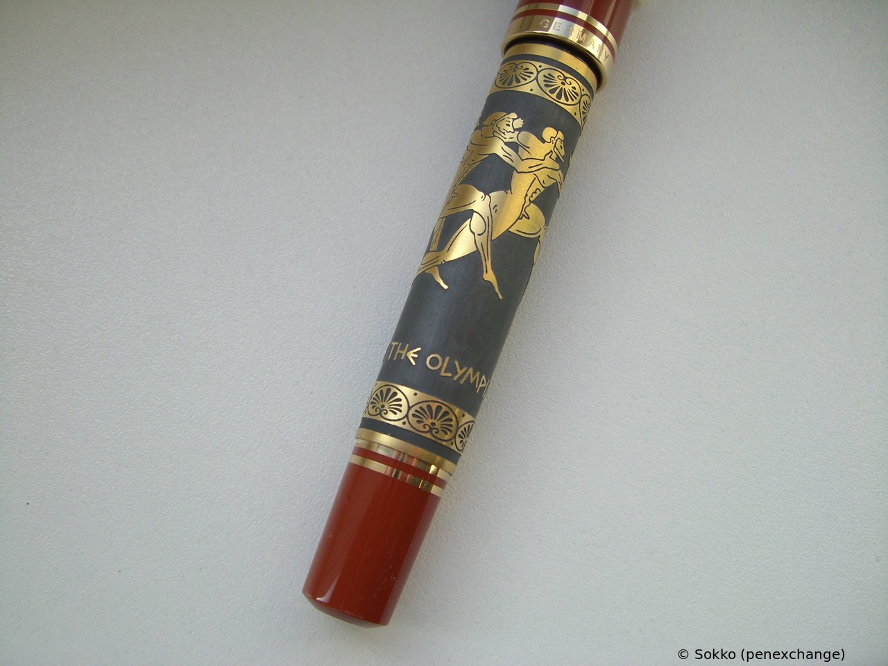 In honor of the Olympic spirit Pelikan designed the fountain pen 'Genesis of the Olympiad'. The edition of 776 copies, symbolizes the year of the first Olympic Games. The gold-plated sterling silver sleeve is engraved with an illustration showing a foot race in the stadium, which was the only discipline for the first 13 games, and remained the most important event even after others were introduced. Each copy is identified by its numbering as unique.