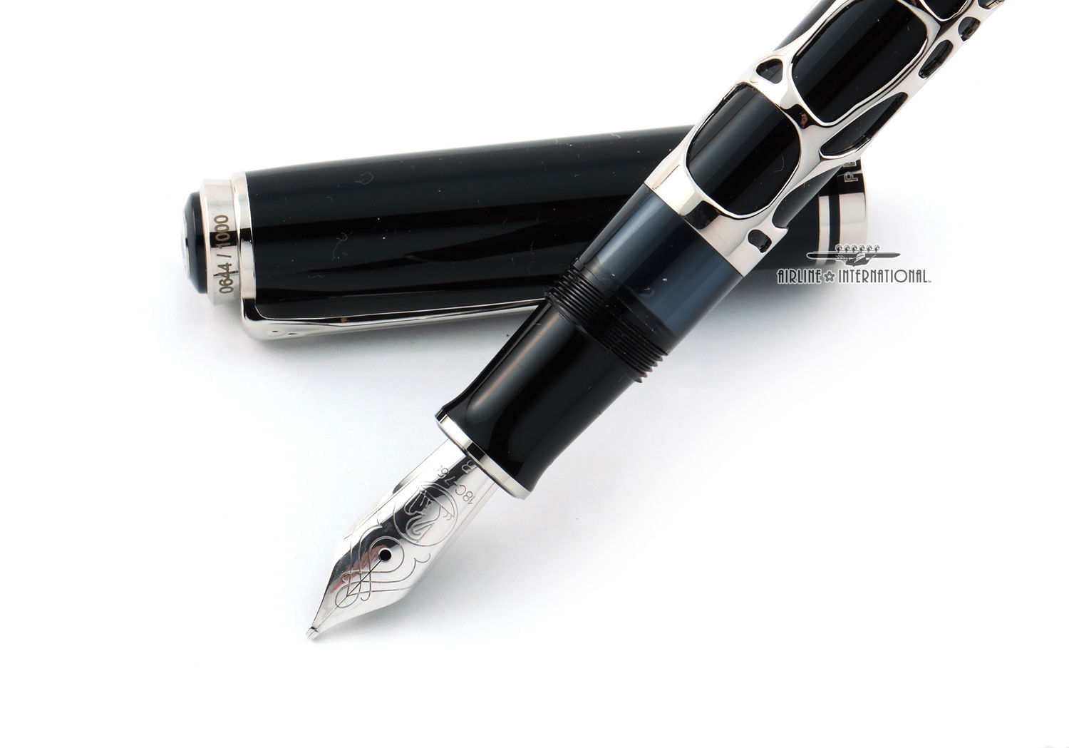 Art and technology are also connected inextricably with this Special Edition, as they were with the myth of Daedalus in ancient Greece. The Icarus emblem is made of solid 925 sterling silver, and a nickel silver clip and hand inscribed nib of 18 carat gold, decorated with rhodium, adorn this unique fountain pen.