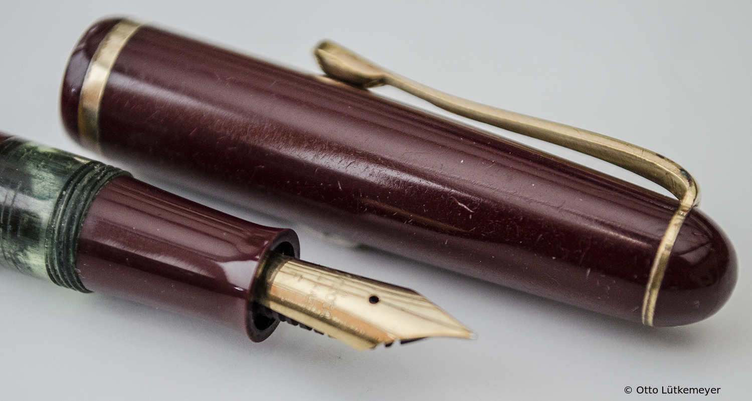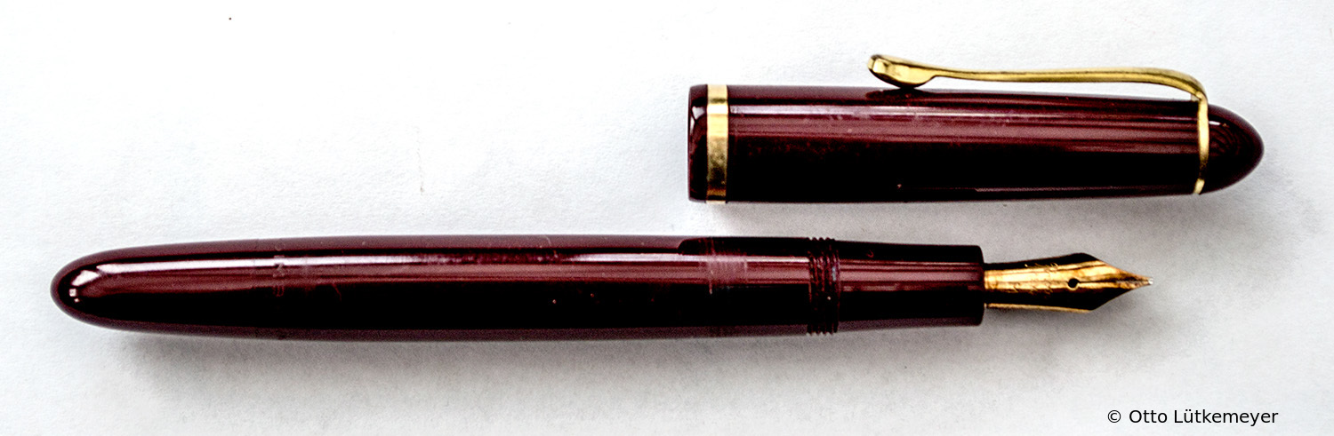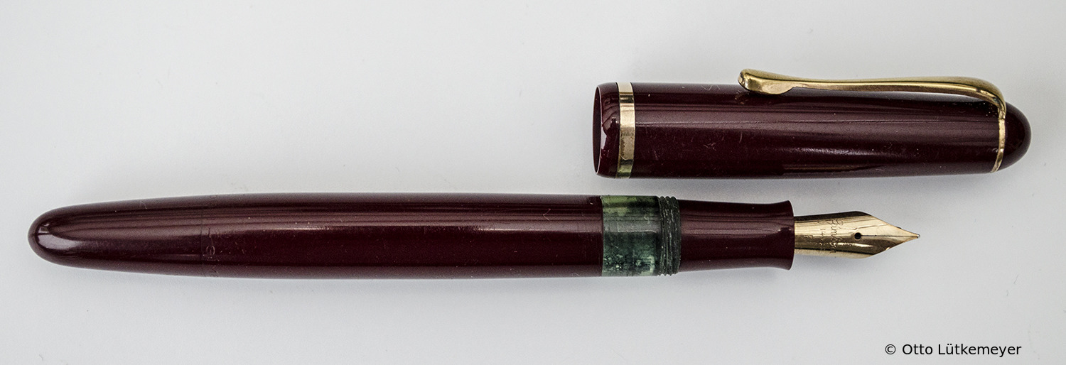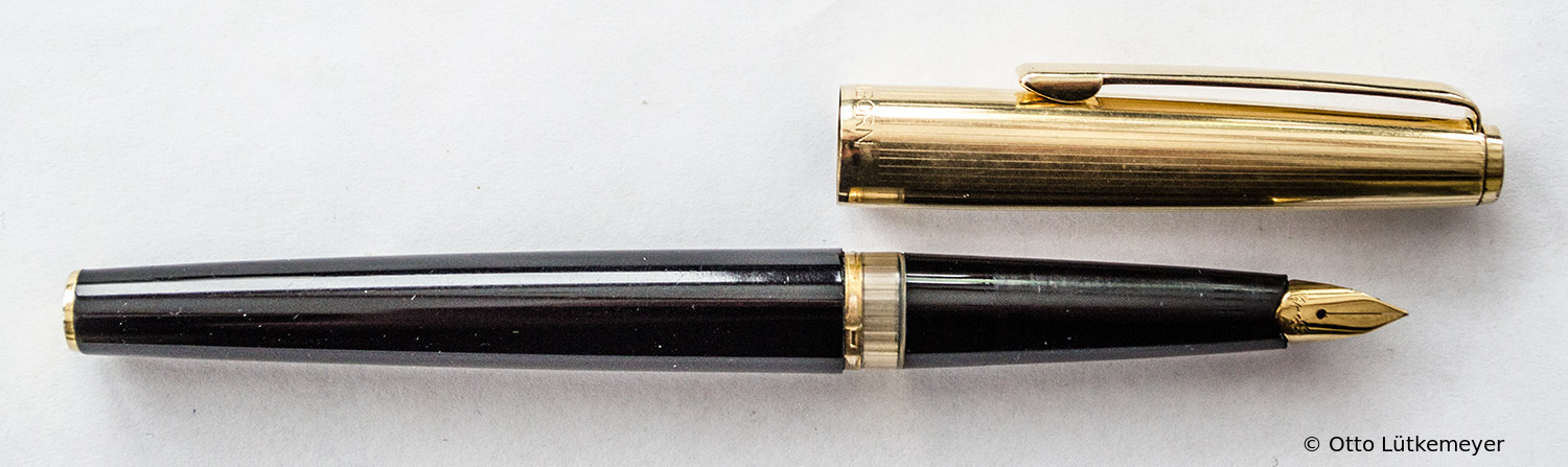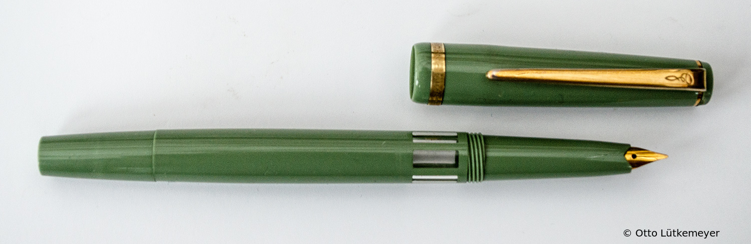The Major GOLD was offered as a new variant of the Major (Series I). This fountain pen with a gold-plated cap in strip guilloche, gold-plated fittings and a 14 ct gold nib was intended to appeal to adults in the higher price segment of the market. The first variant corresponds to the variant Major I a), with fully hooded nib and without ink window. Around 1965 there is the Major GOLD, with a new nib form and the continuous band ink window, similar to the way the changes in Major I b) is described.
