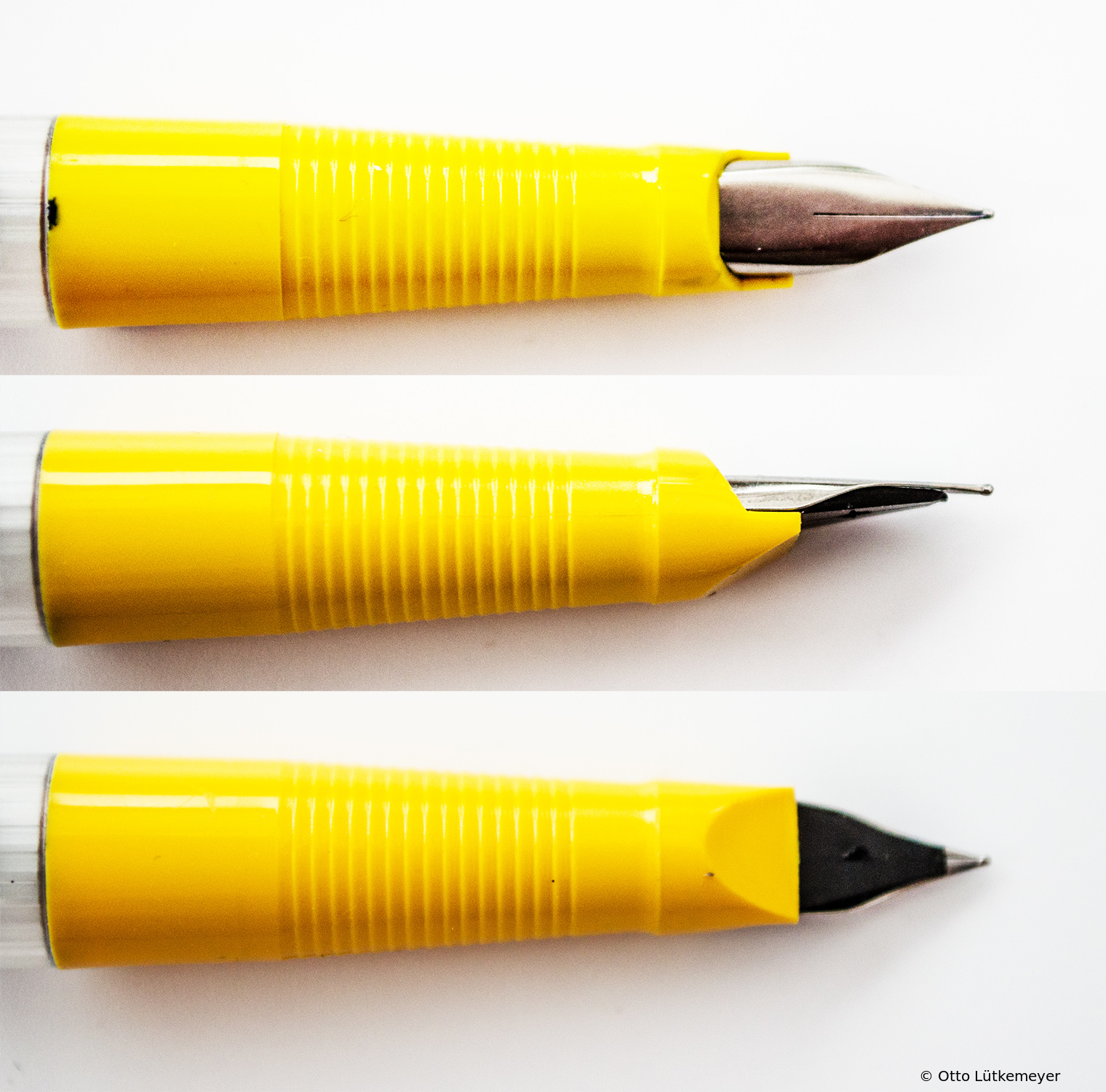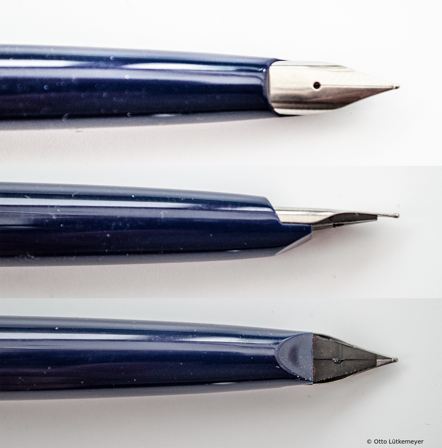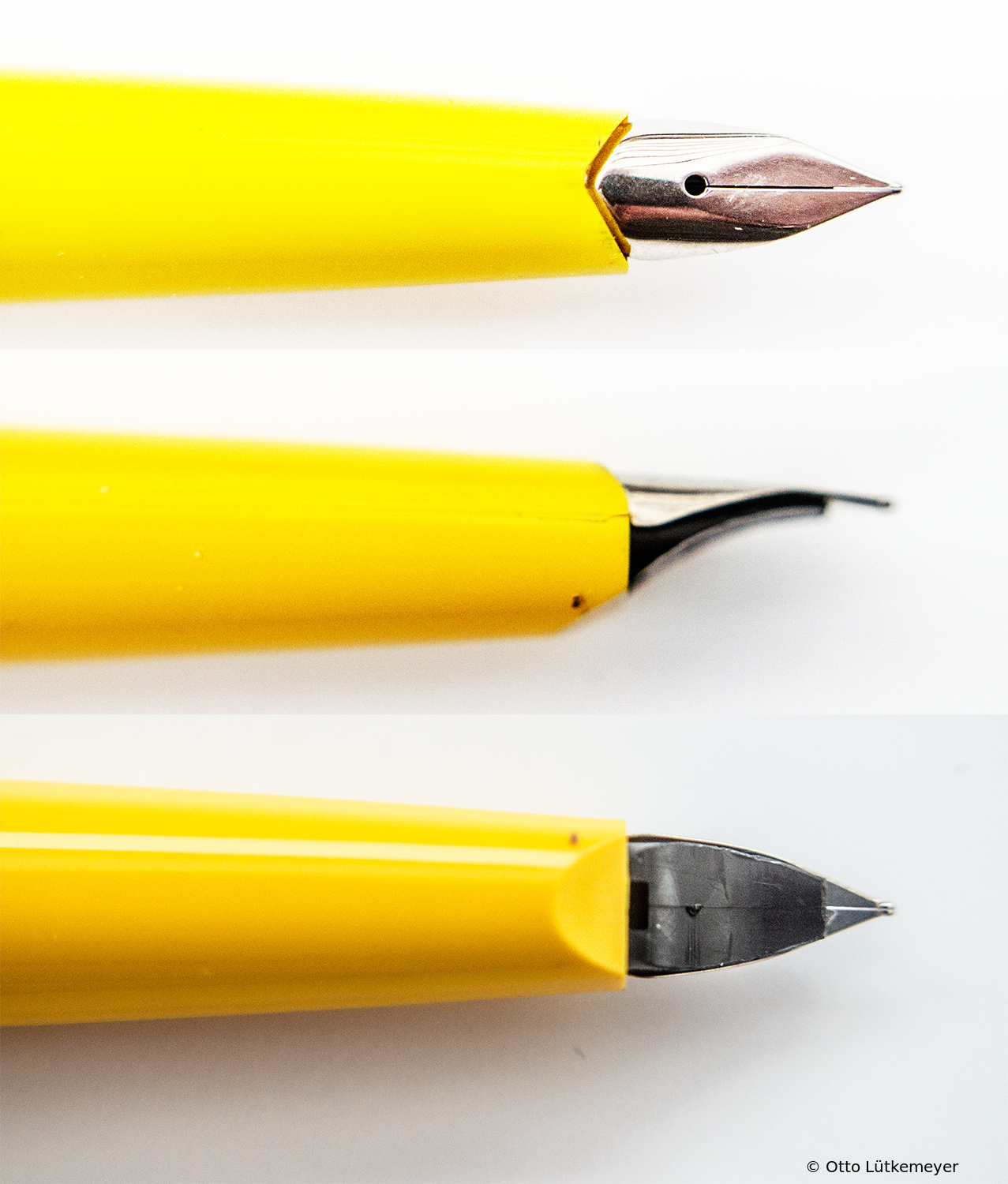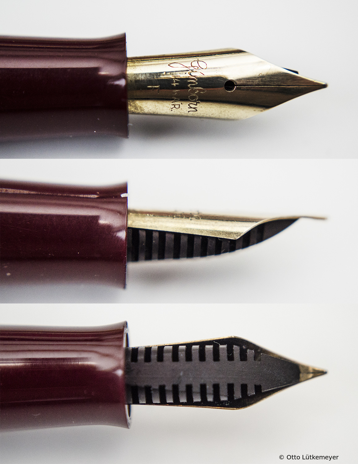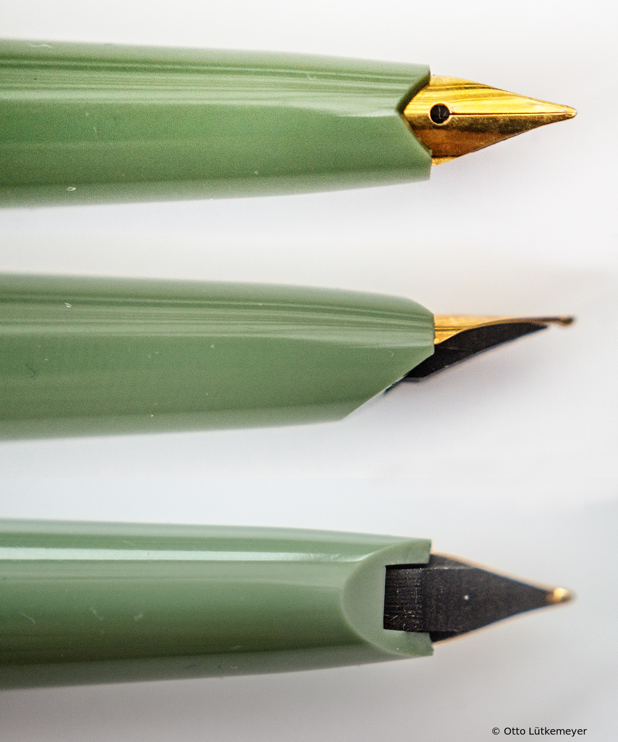 All model variants have a continuous band ink window that shows the filling level of the ink cartridges. The ends of the barrel are always closed by a bolted metal / plastic disc. The nib corresponds to the existing nibs of the I. series in the variants c / d. The ink feed now runs under the nib less pointedly and increases the contact surface to the nib.