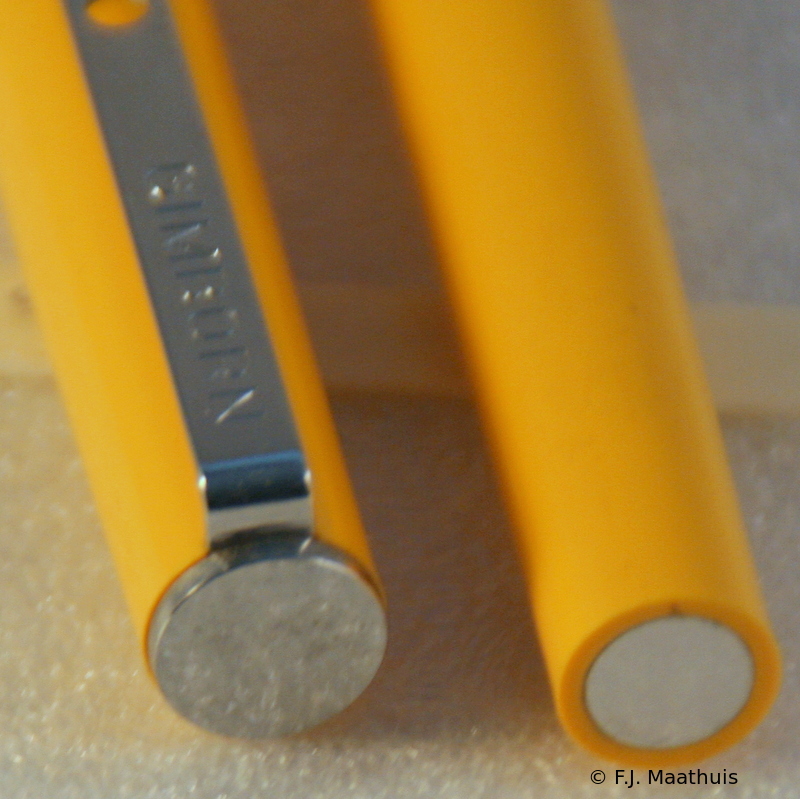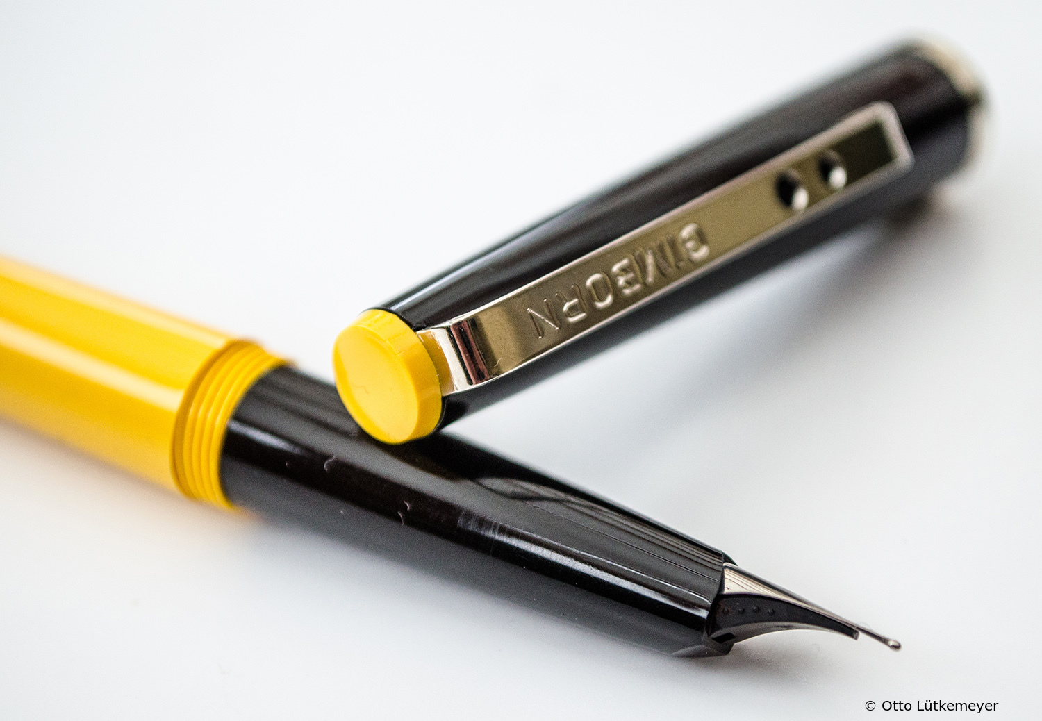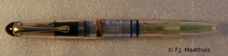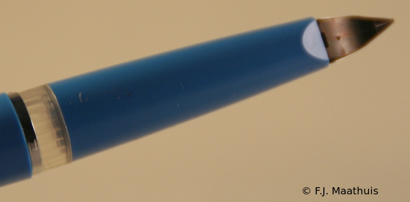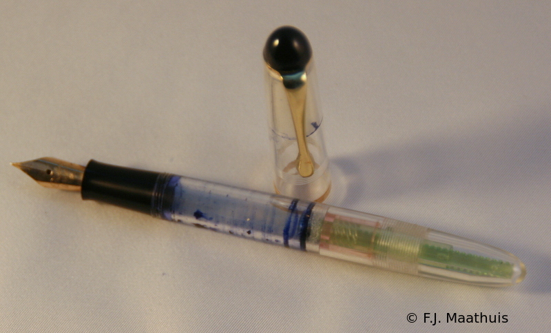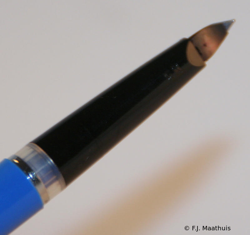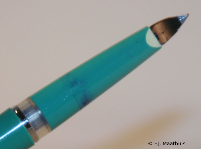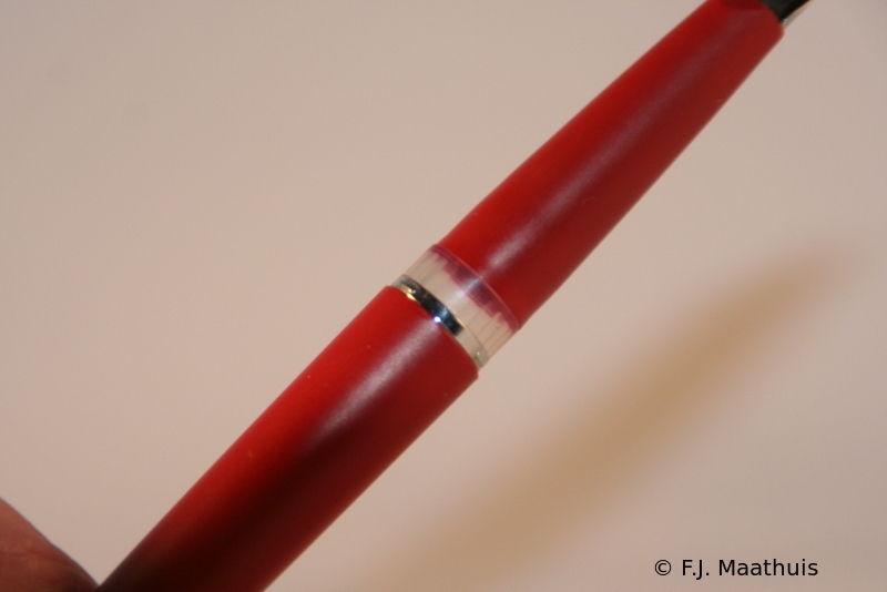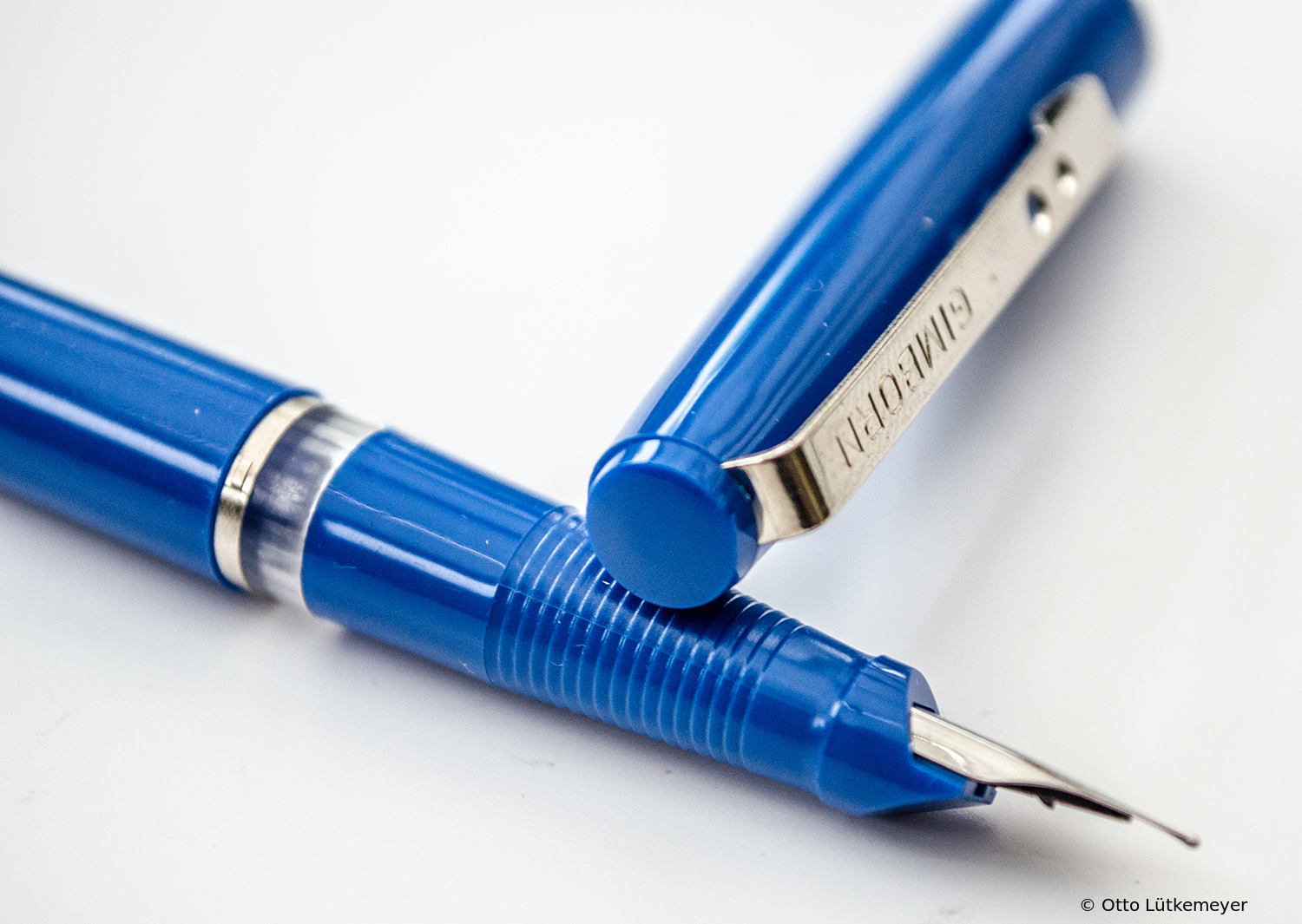 Initially, the barrel is closed by a screwed plastic disc. In later models, the barrel was made in a single piece. The end of the cap is closed by a screwed plastic disc, which also holds the clip. The clip normally carries the embossing, GIMBORN '. However, clips with the label 'MAJOR' and 'MAJOR GRIP' are also known. It is conceivable that these fountain pens were made around 1981, after the company Gimborn B.V. was renamed as Pelikan Nederland B.V.