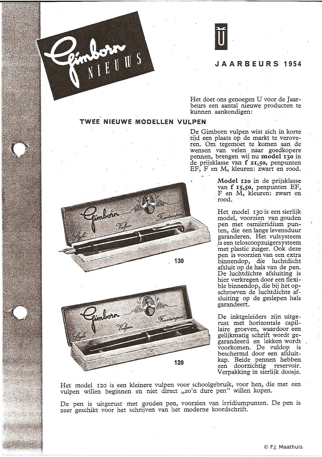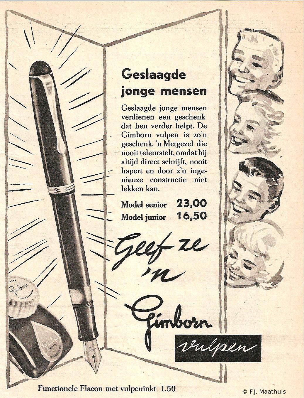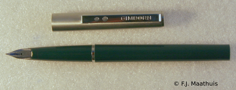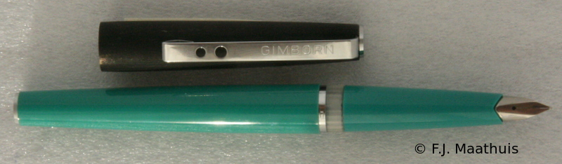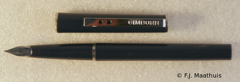 In 1951 the first fountain pen model at Gimborn was introduced with some resemblance to the Pelikan 140 Series. Parts of this fountain pen were produced at Pelikan, but no evidence revealed this relationship. The individual pens were assembled at the factory in Zevenaar. The nibs of this fountain pen were all imprinted 'Gimborn'.