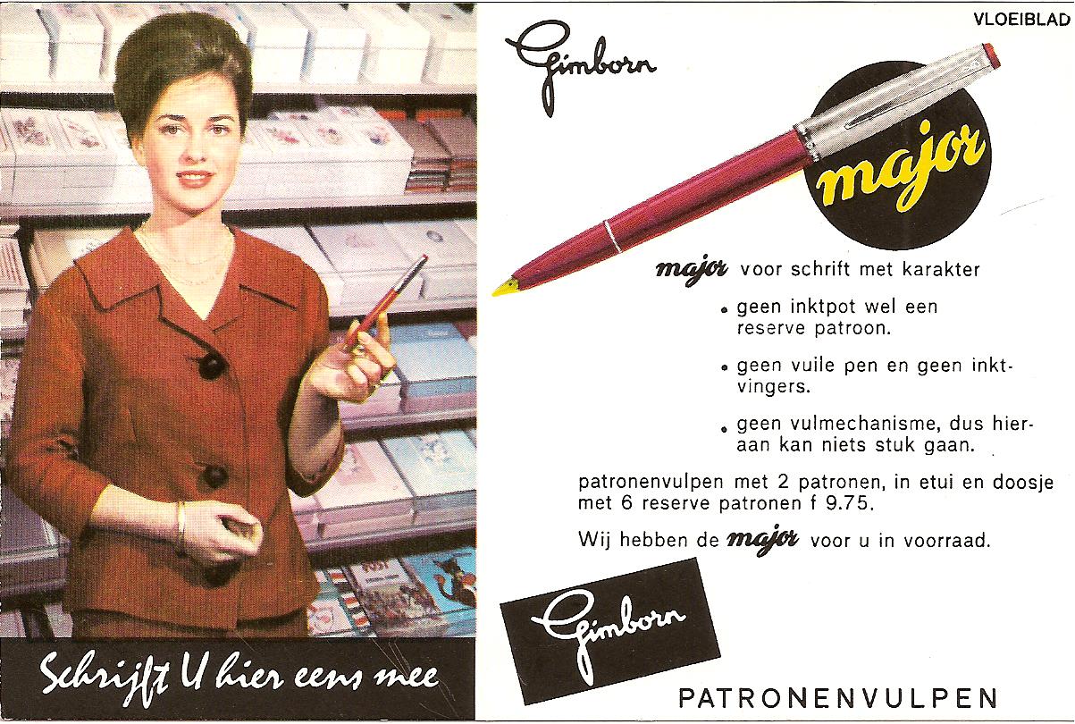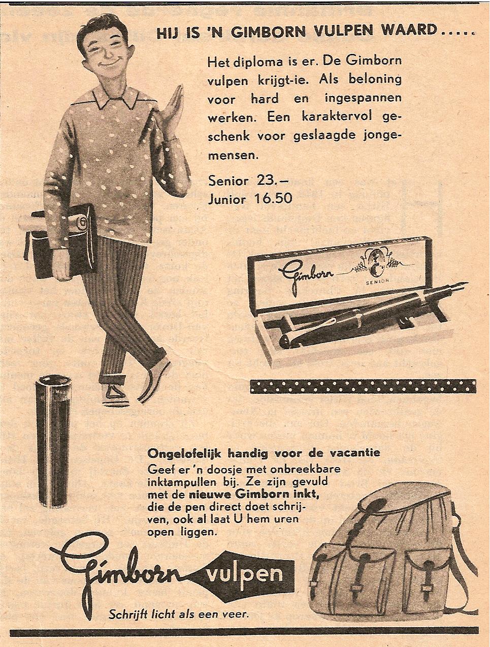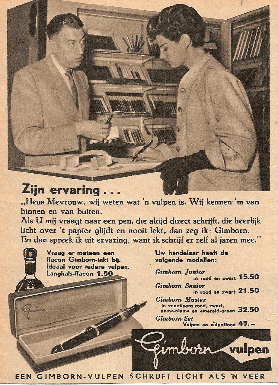 In 1951 the first fountain pen model at Gimborn was introduced with some resemblance to the Pelikan 140 Series. Parts of this fountain pen were produced at Pelikan, but no evidence revealed this relationship. The individual pens were assembled at the factory in Zevenaar. The nibs of this fountain pen were all imprinted 'Gimborn'.