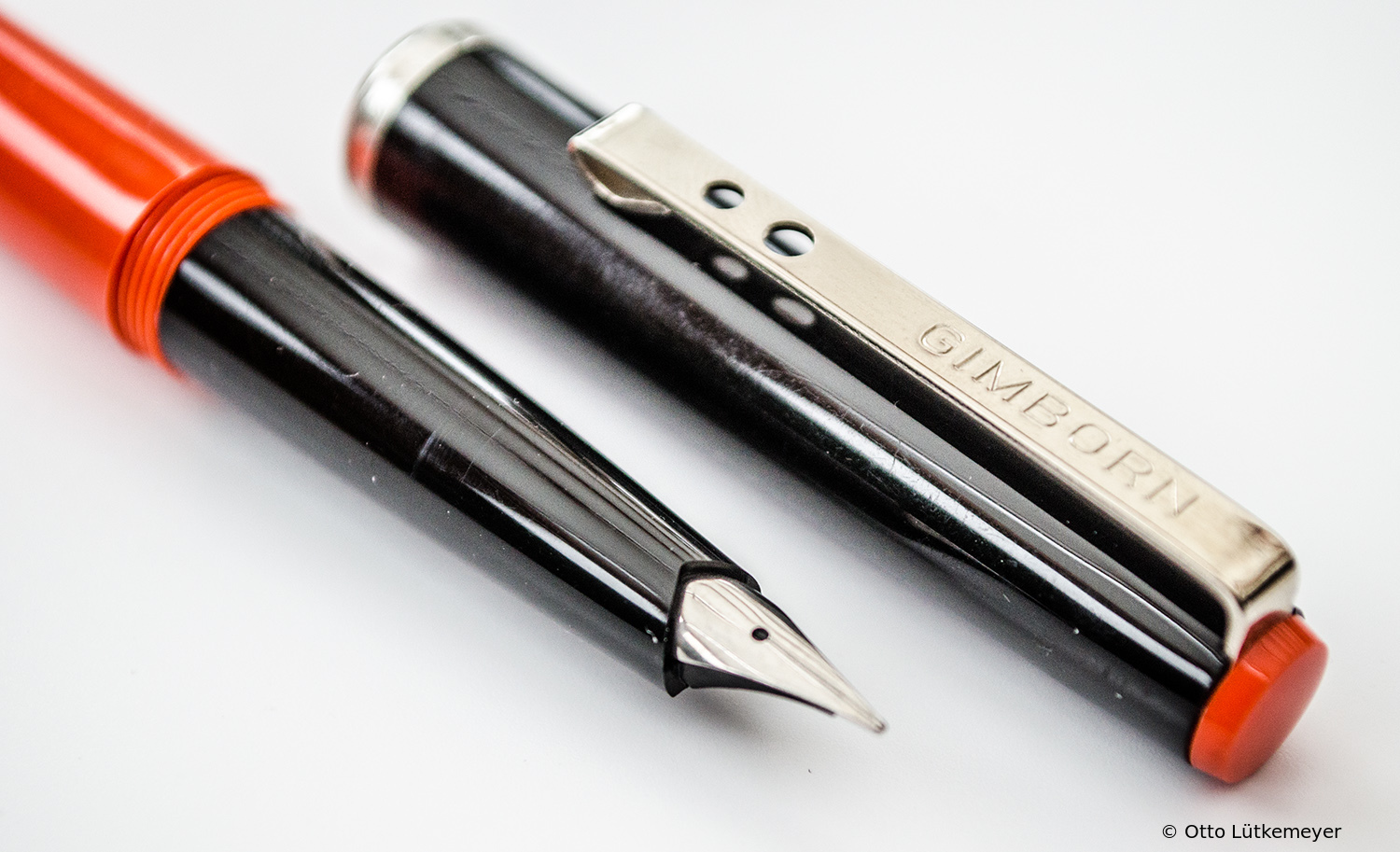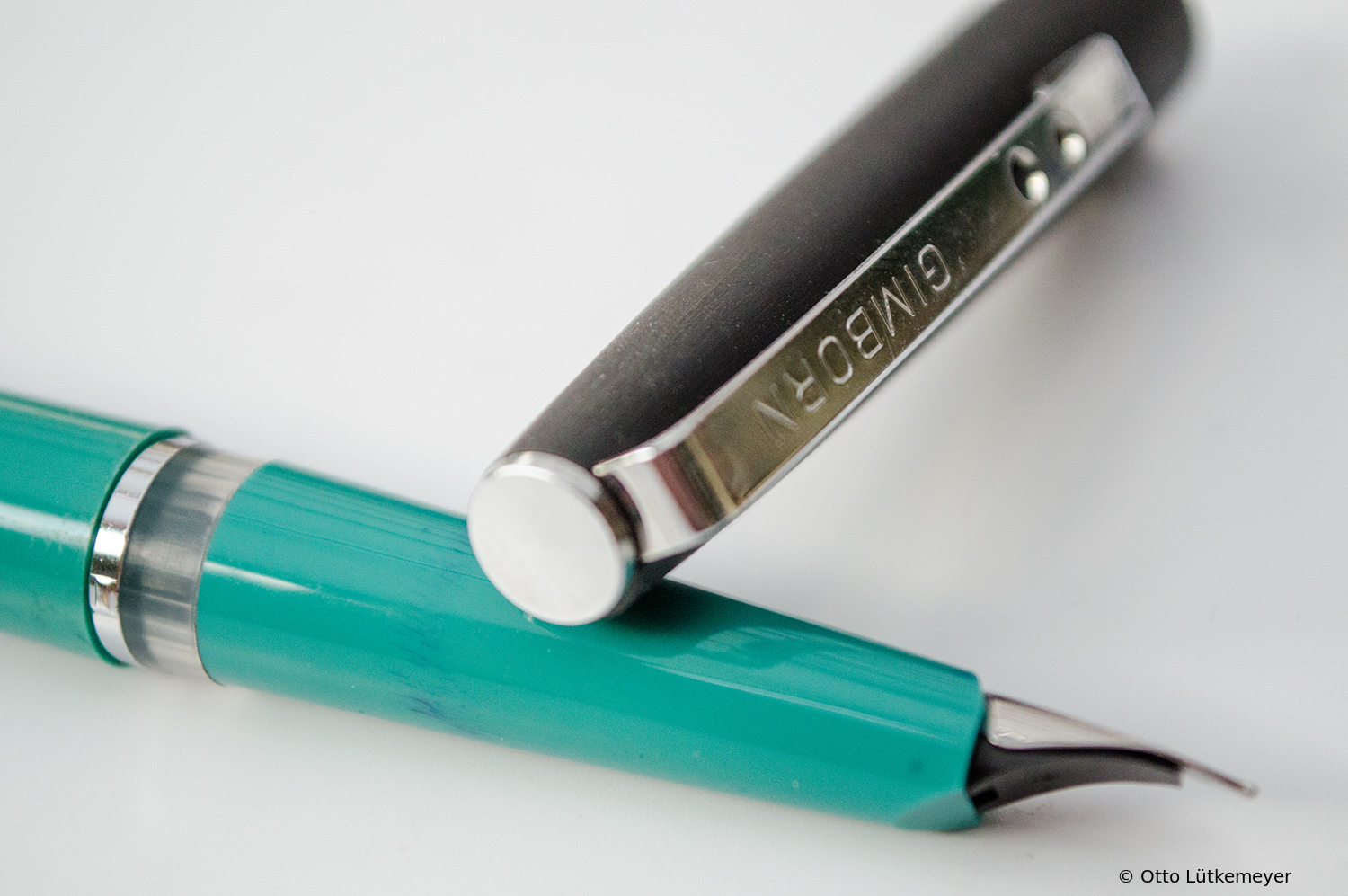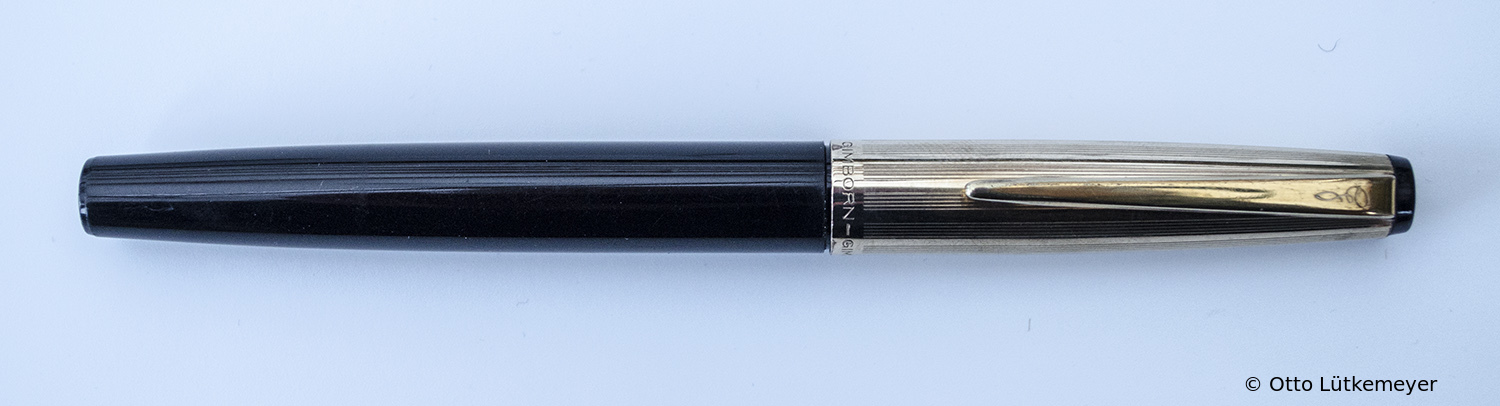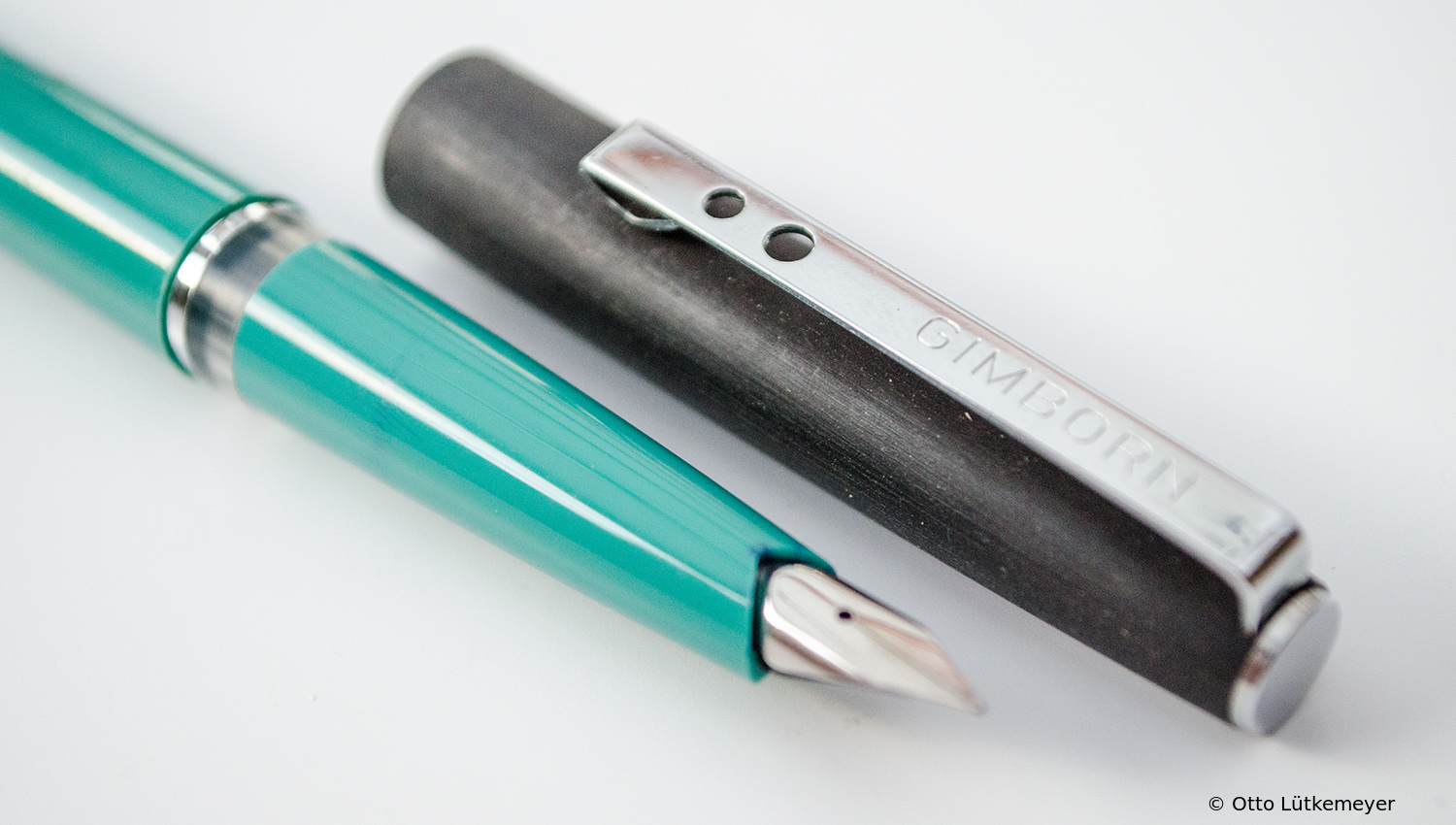 The Gimborn 150 fountain pen was almost identical to the model Pelikan 300. Only the clip and the missing cap logo were different from the Pelikan version. The name Gimborn is found on the nib. A mechanical pencil was offered, too; this was the Gimborn 175 (design of the Pelikan 350). About 5 years later the black model was extended by three additional color varieties and other models.