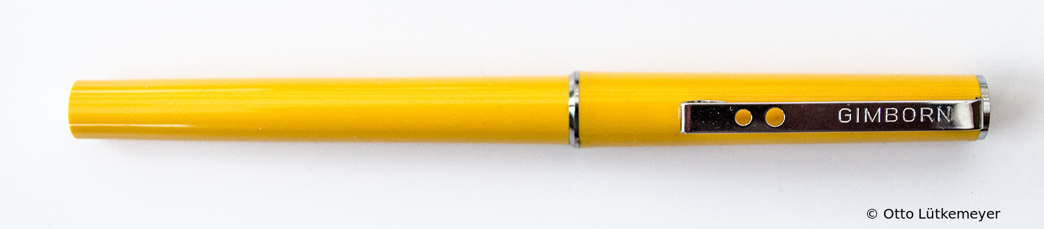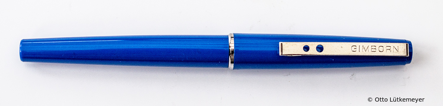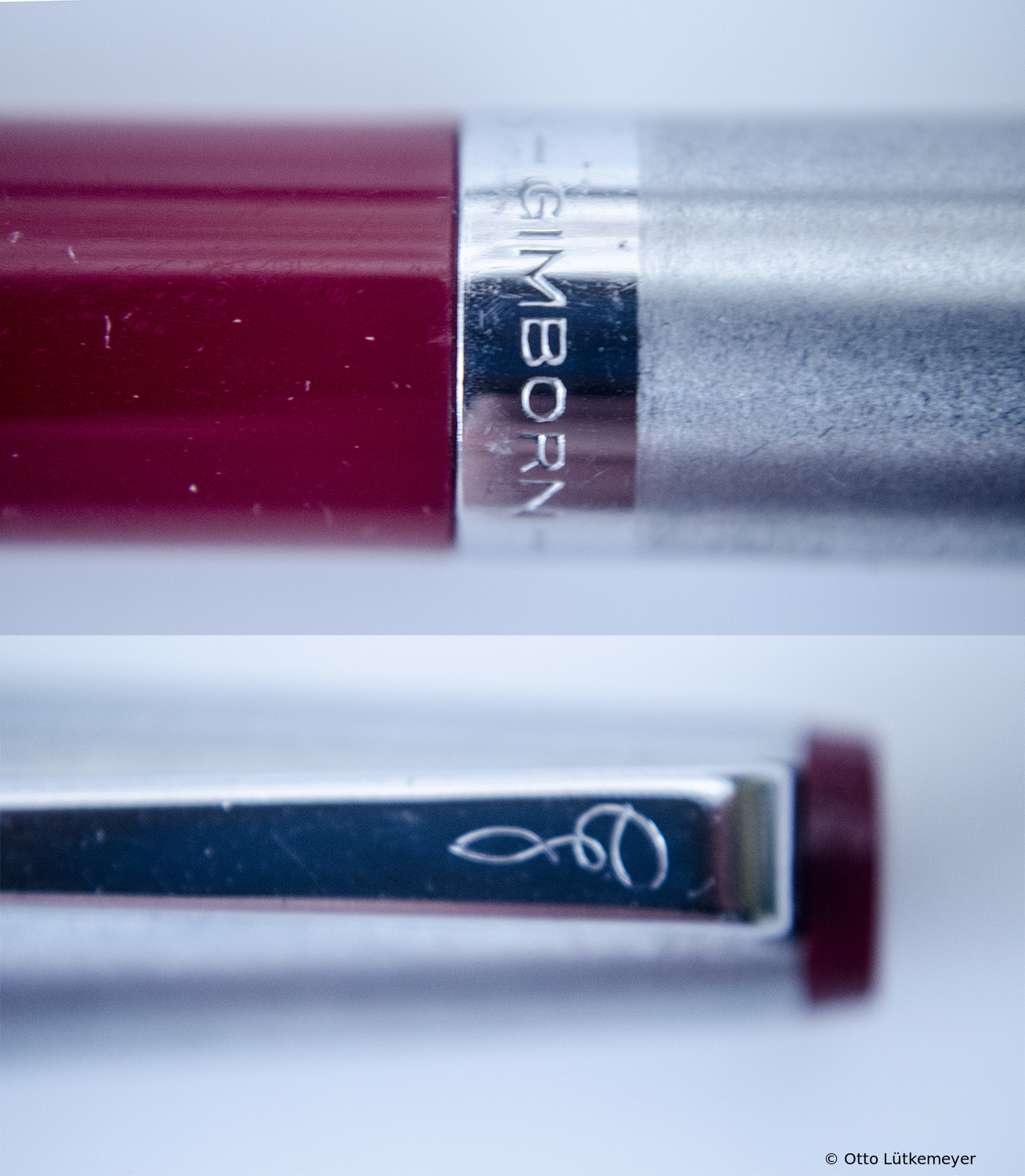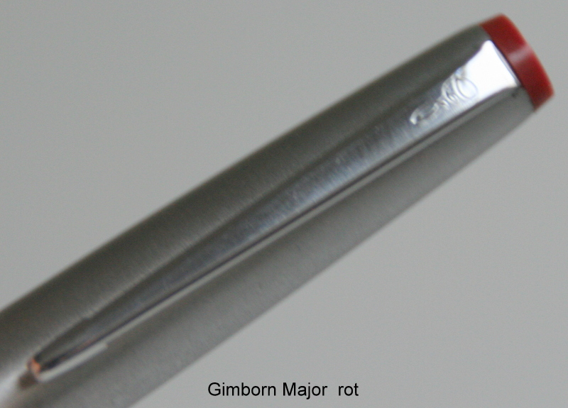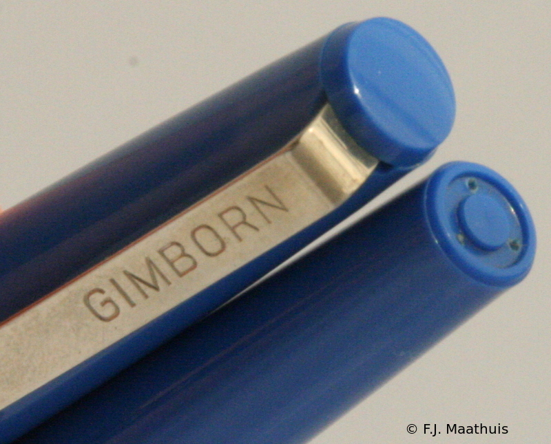 It was therefore decided (around 1974) to modify the following further models of this series Major. The previous clip with a curved edge and 4 mm width is replaced by a smooth clip of 4.5 mm width. On the new clip, the imprint 'Gimborn' now shows the name of the company, while the stylized G at the end of the cap disappears.