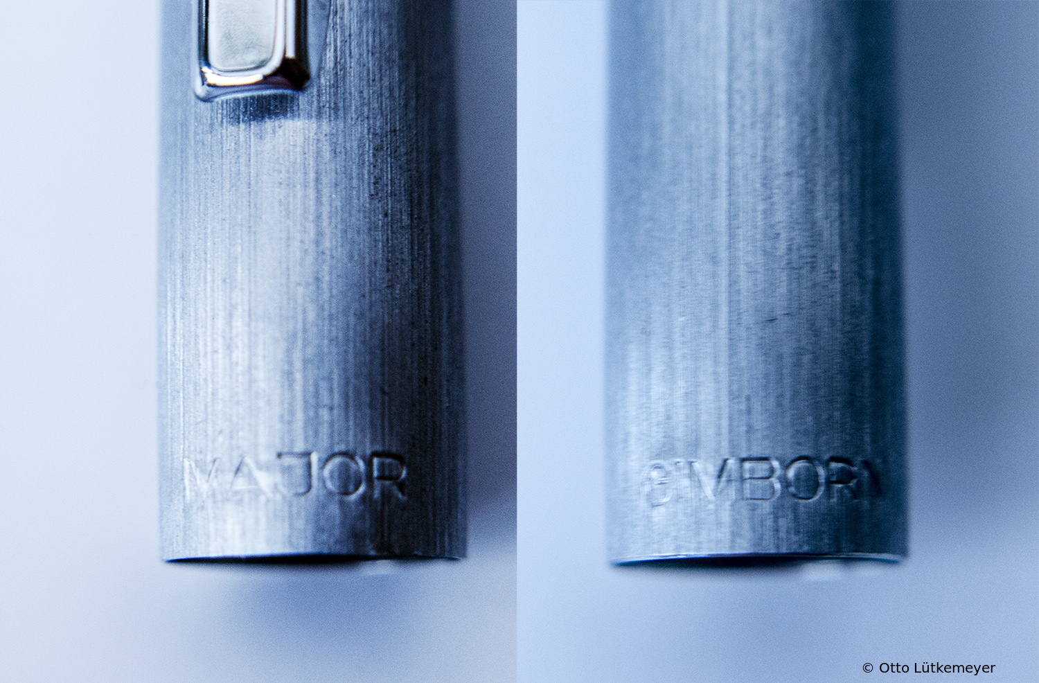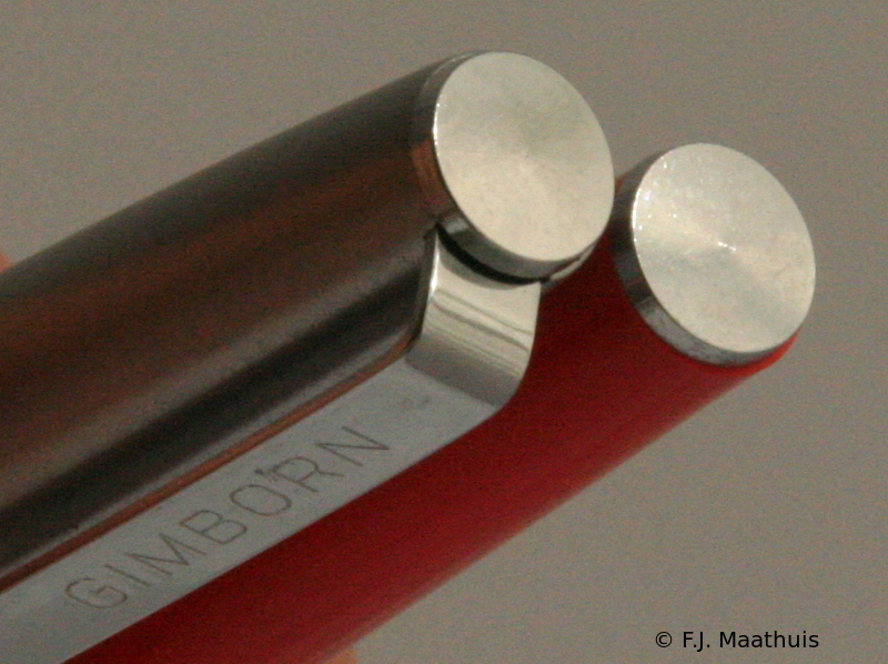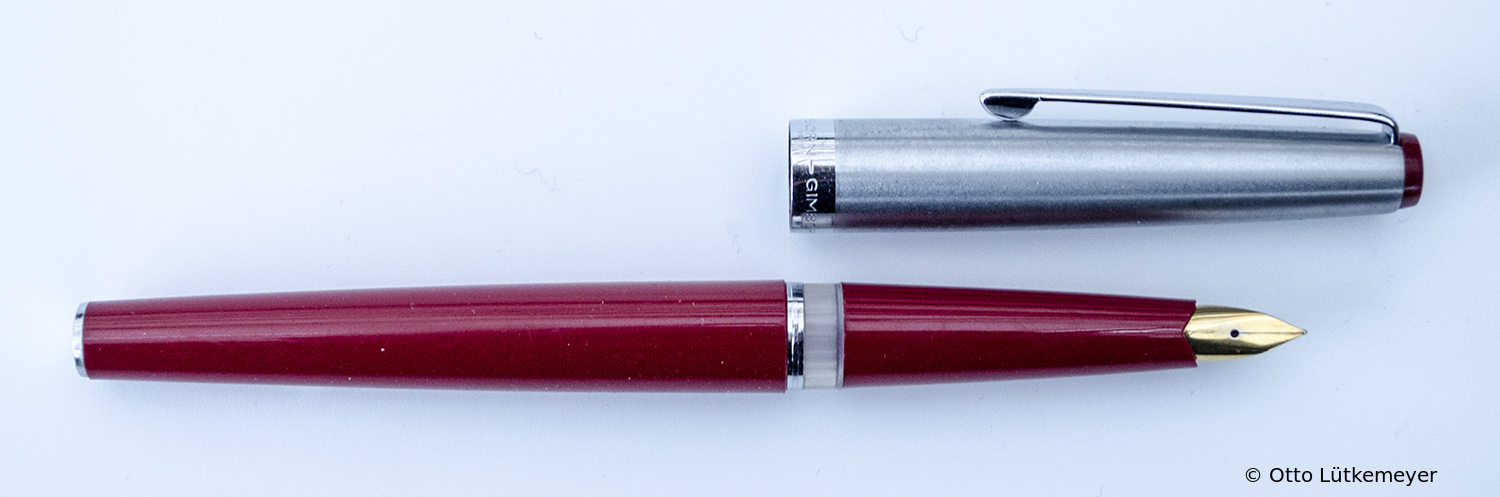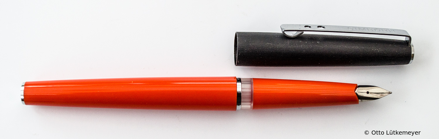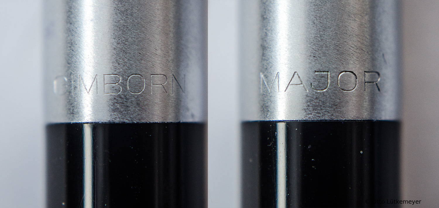 It was therefore decided (around 1974) to modify the following further models of this series Major. The previous clip with a curved edge and 4 mm width is replaced by a smooth clip of 4.5 mm width. On the new clip, the imprint 'Gimborn' now shows the name of the company, while the stylized G at the end of the cap disappears.