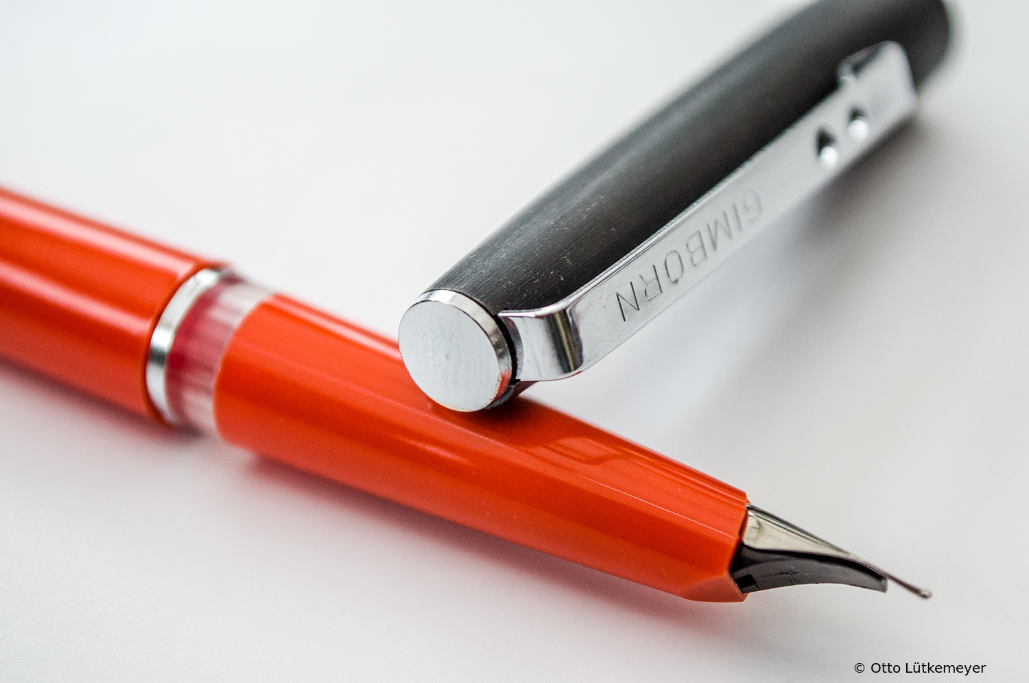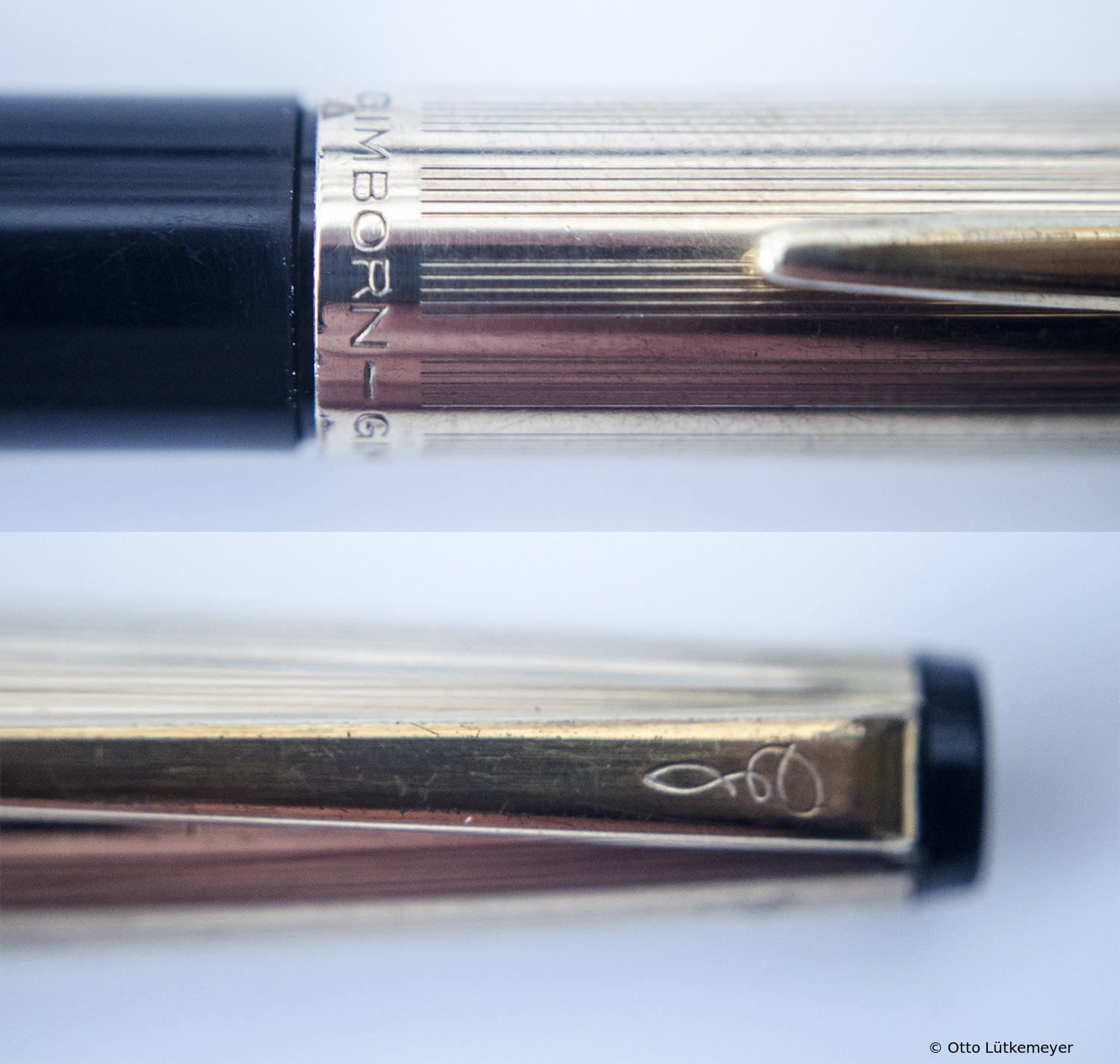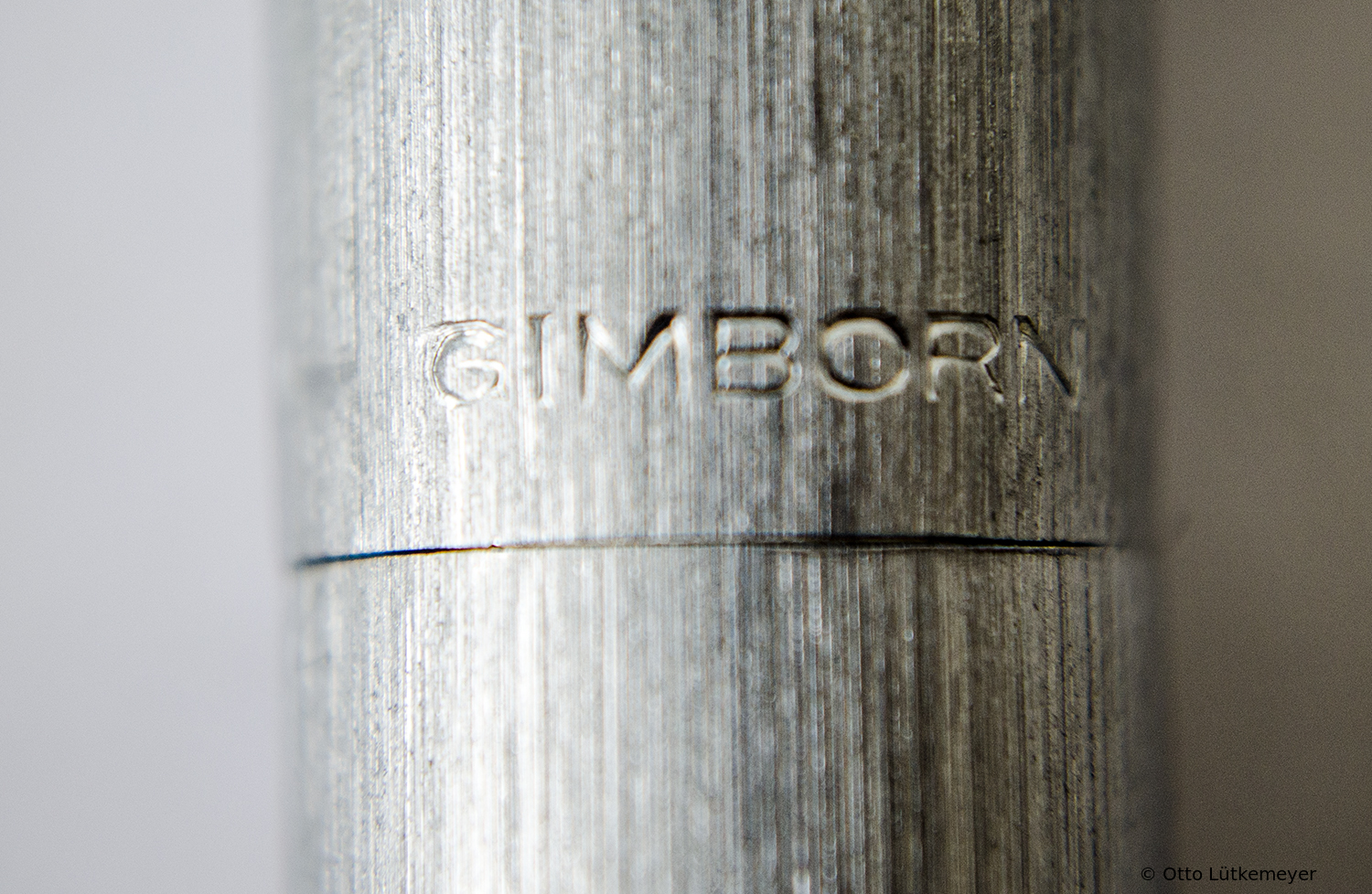 As a corporate identity, the company name was reproduced in a curved spelling on Gimborn products. This is reflected on the nibs of the first fountain pens. From about 1960 onwards, a curved G written as a logo is embossed on the clips of the writing instruments.