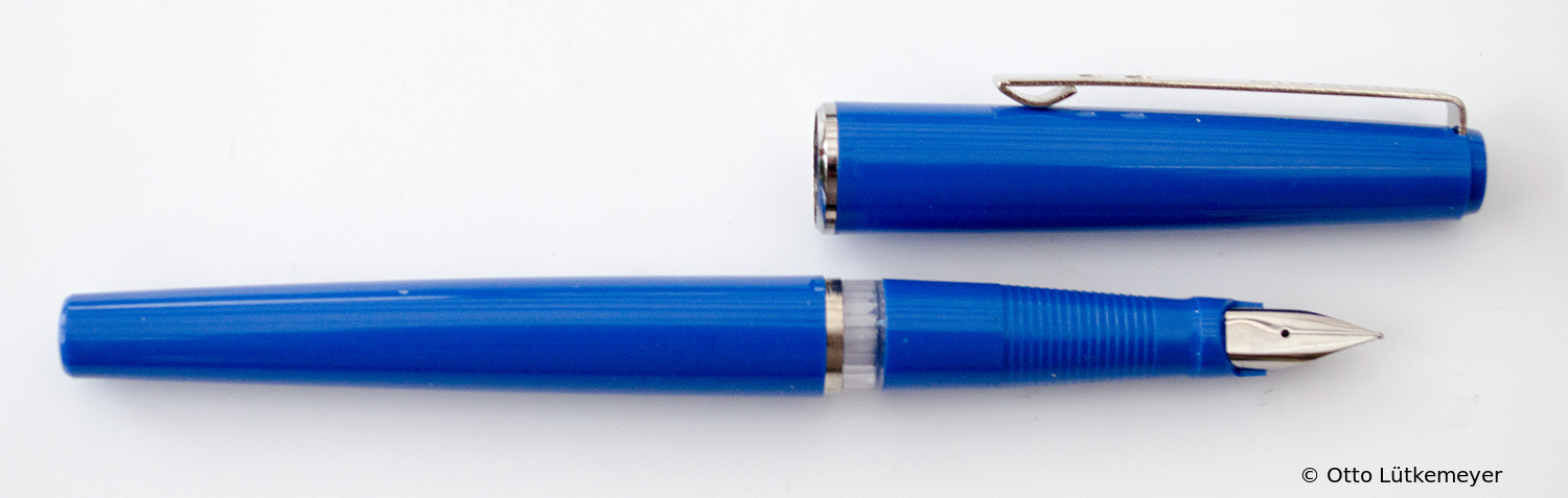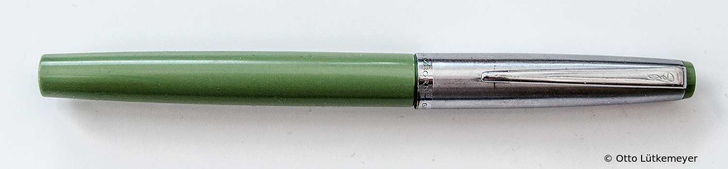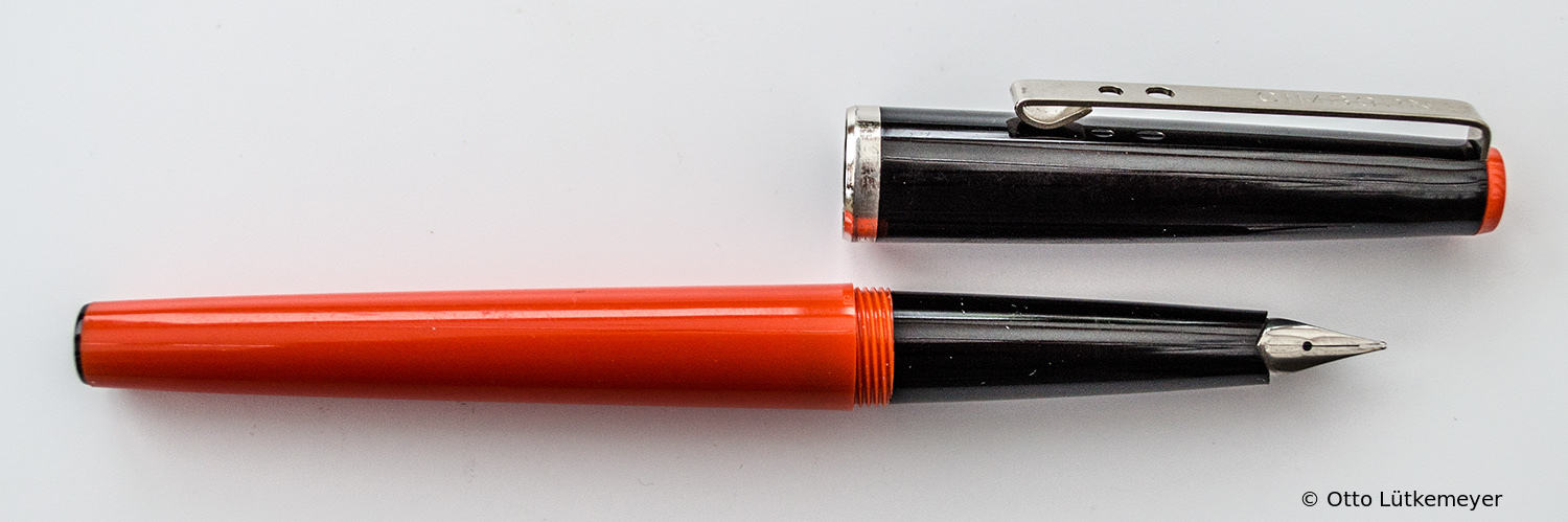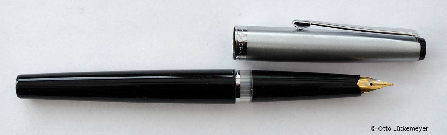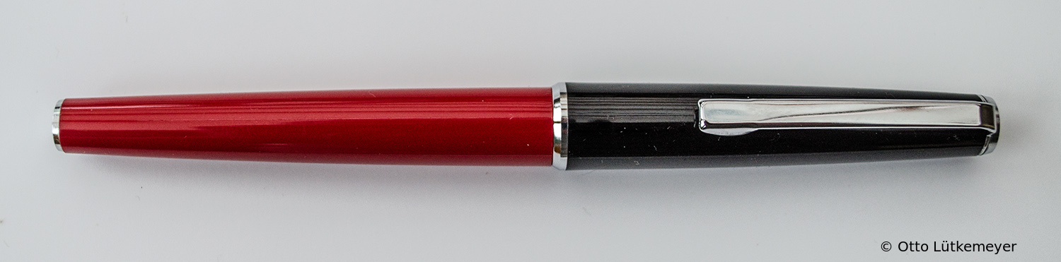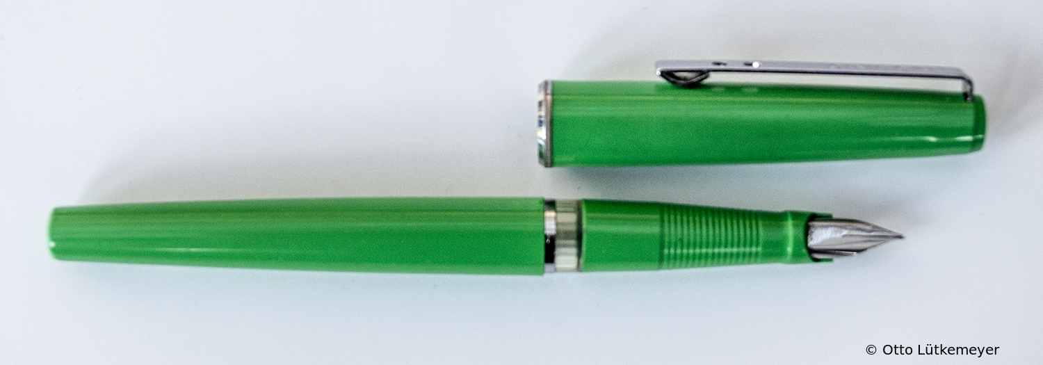 The MAJOR grip introduced a new model of the Major series, which was aimed at students as the target group. The barrel, grip section and cap are made of plastic in the same color. The grip section now has a profile, which is designed to give an inexperienced fountain pen user more security and a better hold for writing. A bead prevents the fingers from sliding on to the nib. The new ink feed lets the nib stand out, giving it more flexibility. The nib has often no air hole, though models are known which the nib has an air hole.