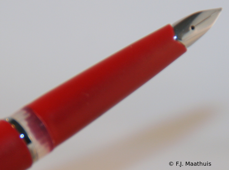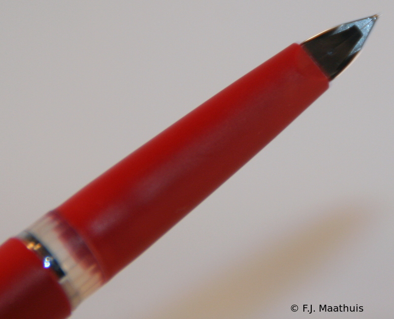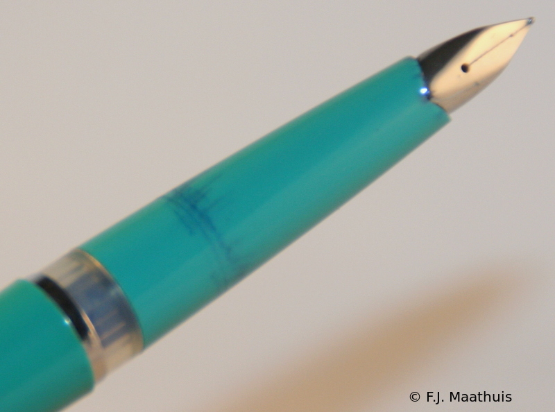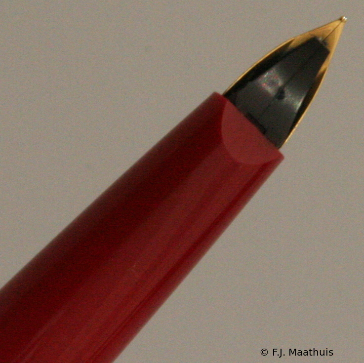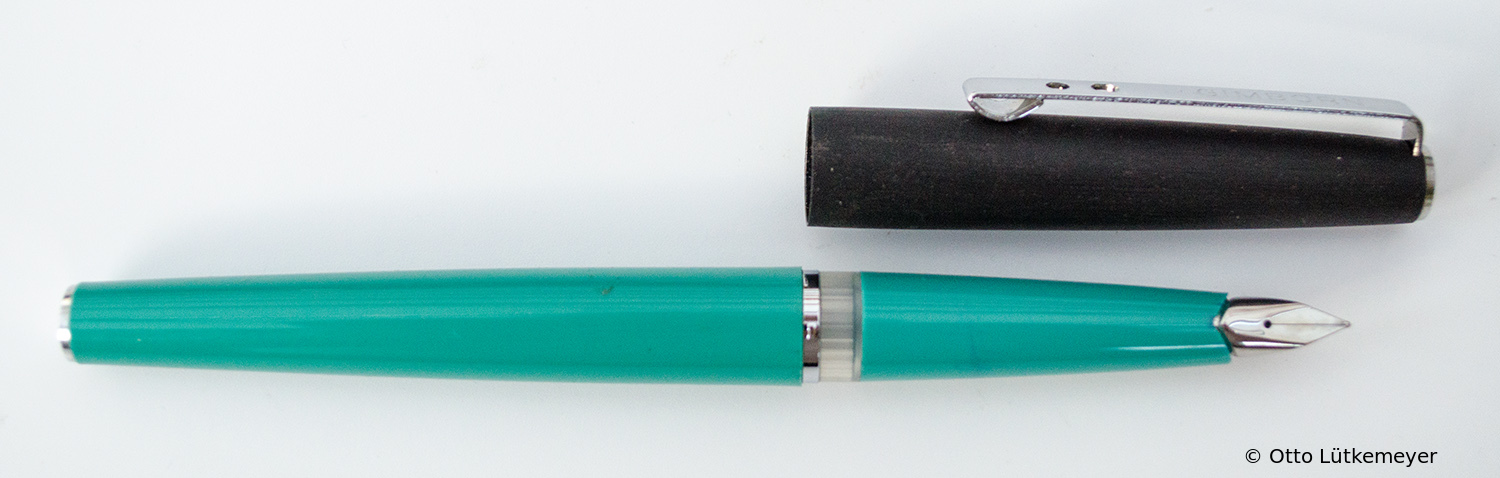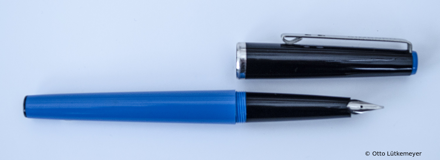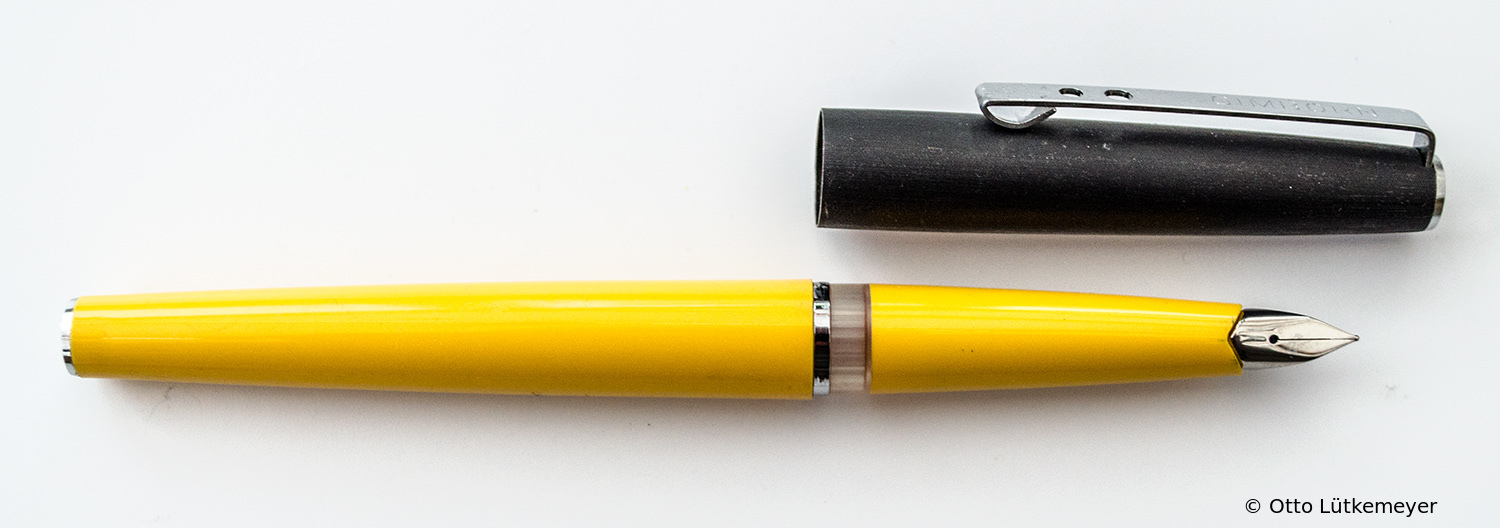 The MAJOR grip introduced a new model of the Major series, which was aimed at students as the target group. The barrel, grip section and cap are made of plastic in the same color. The grip section now has a profile, which is designed to give an inexperienced fountain pen user more security and a better hold for writing. A bead prevents the fingers from sliding on to the nib. The new ink feed lets the nib stand out, giving it more flexibility. The nib has often no air hole, though models are known which the nib has an air hole.