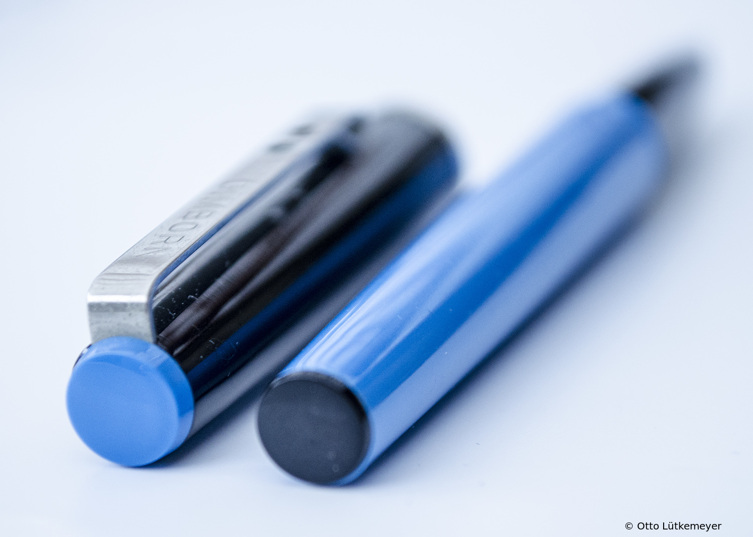 The MAJOR primo model has a black screw cap and a black plastic grip section. The barrel comes in various different colors. The end of the cap is closed with a plastic disc in the same color as the barrel, while the barrel end is always closed with a black, screwed-in plastic disc. The nib and the ink feed are longer and slimmer than the model Grip so that the nib has more flexibility when writing.