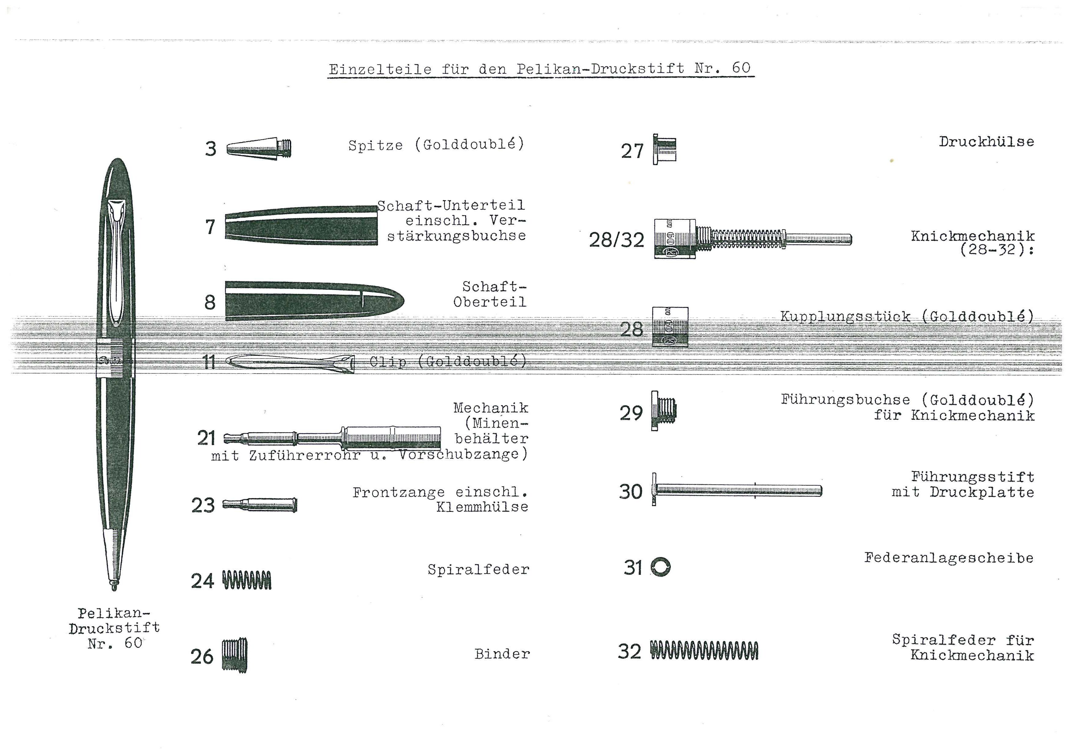 The Pelikan 60 pencil is also commonly referred to as a "Knickebein" (translated: bend leg), because of the extraordinary technique for forwarding the lead, that requires pressing the center of the pencil.