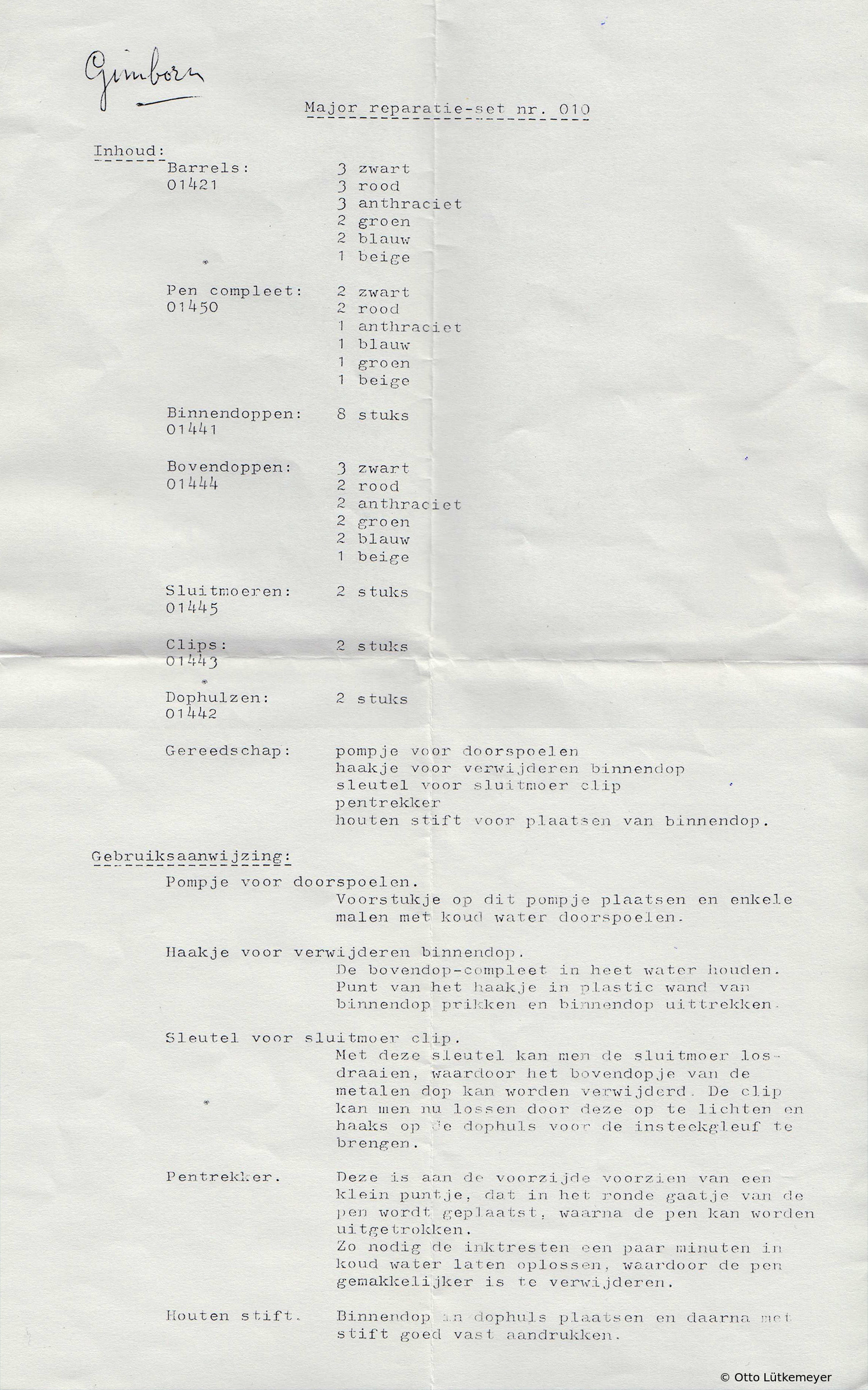 It wasn't only Pelikan which delivered repair kits and tools to stationery traders; its sister company Gimborn had corresponding offers.